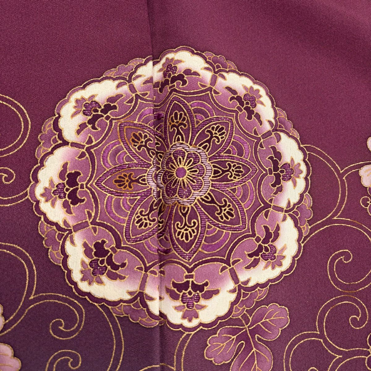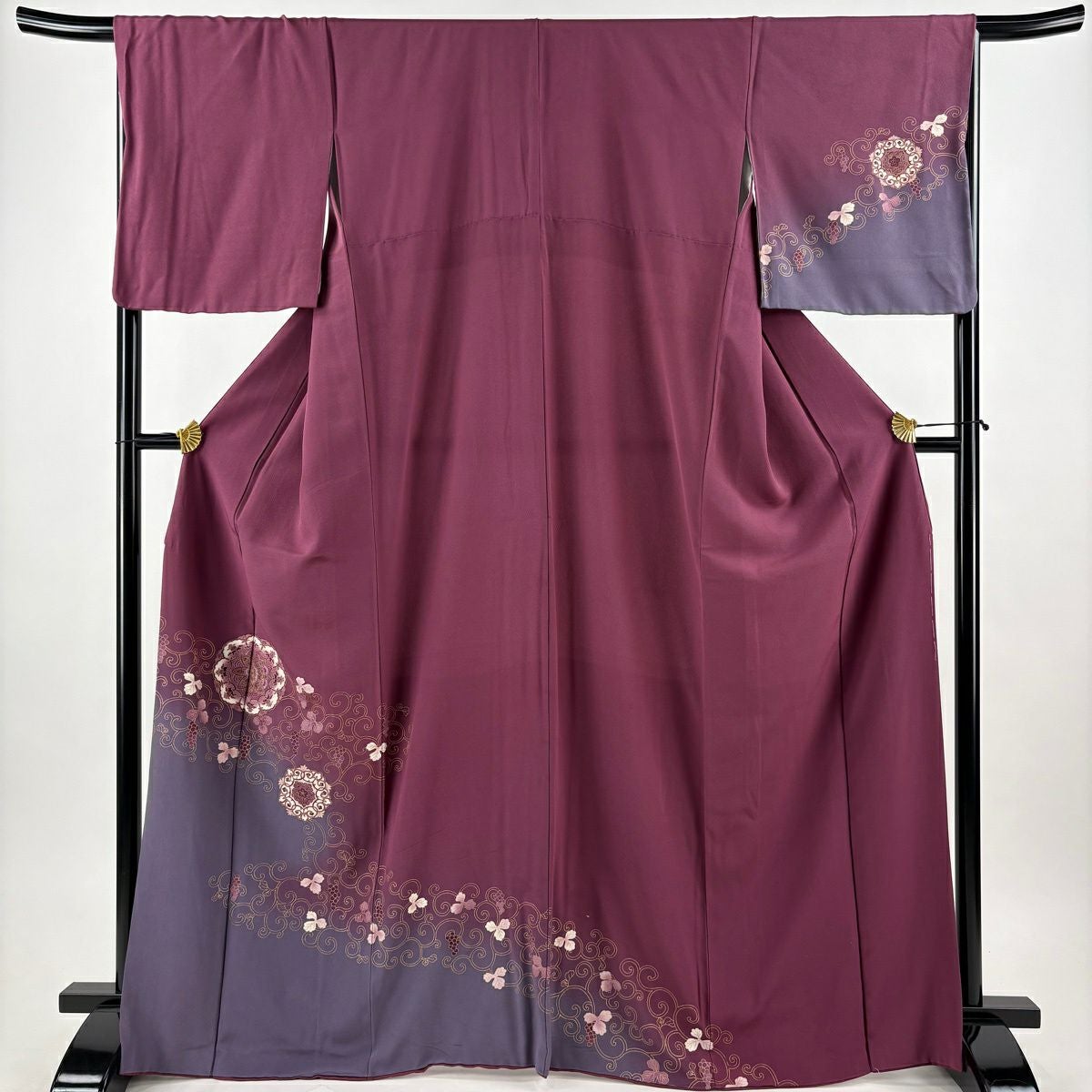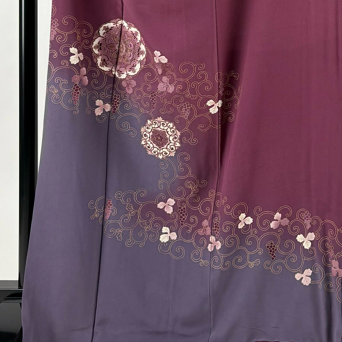30%OFF 付下げ 身丈167.5cm 裄丈67cm M 袷 華文 葡萄唐草 金彩 ぼかし 赤紫 正絹 秀品 K30