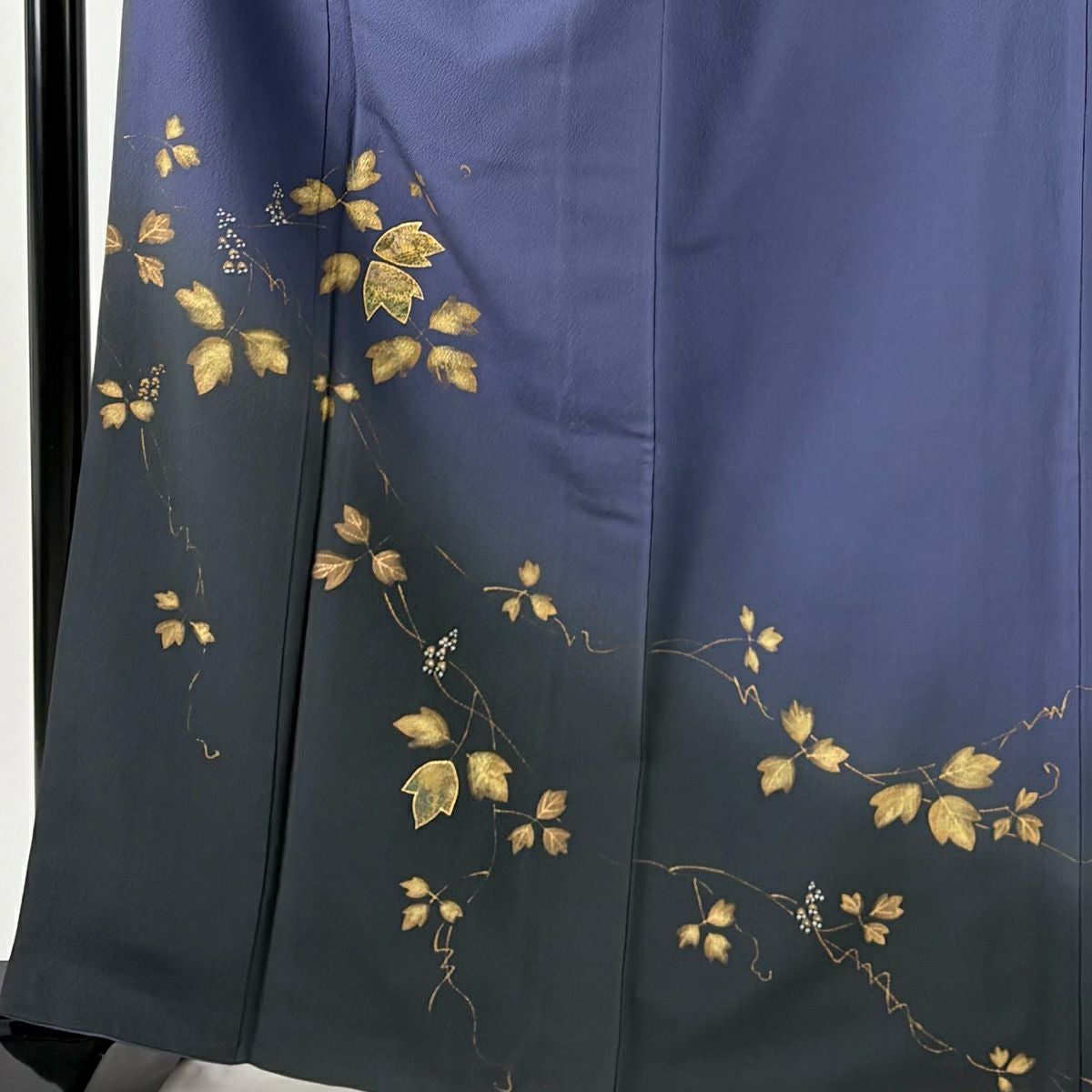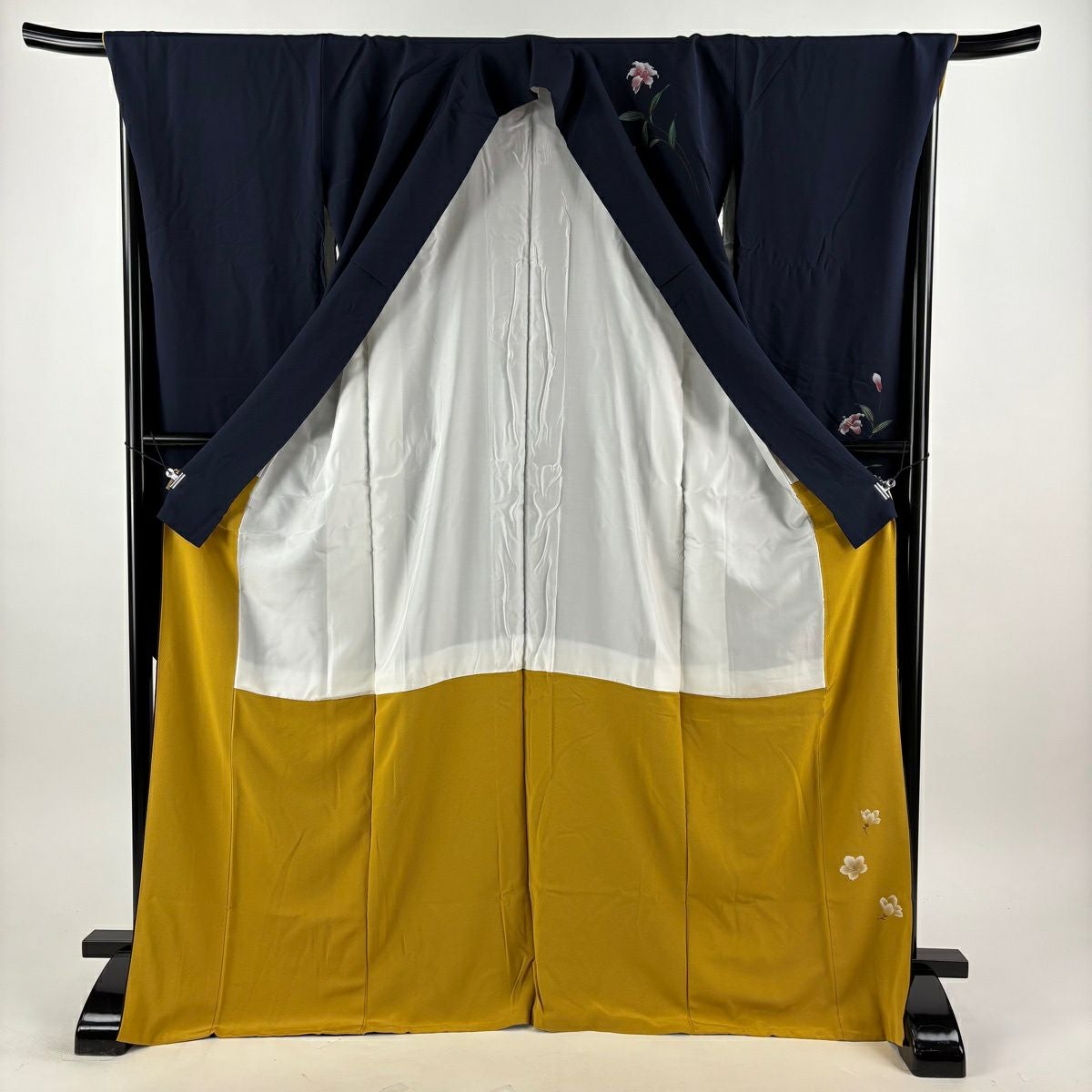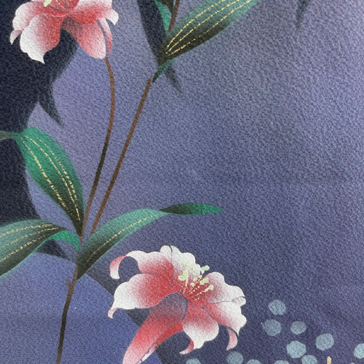 30%OFF 振袖 身丈171.5cm 裄丈69cm L 袷 袋帯フルセット 百合 花 金彩 濃紺 正絹 秀品 K30