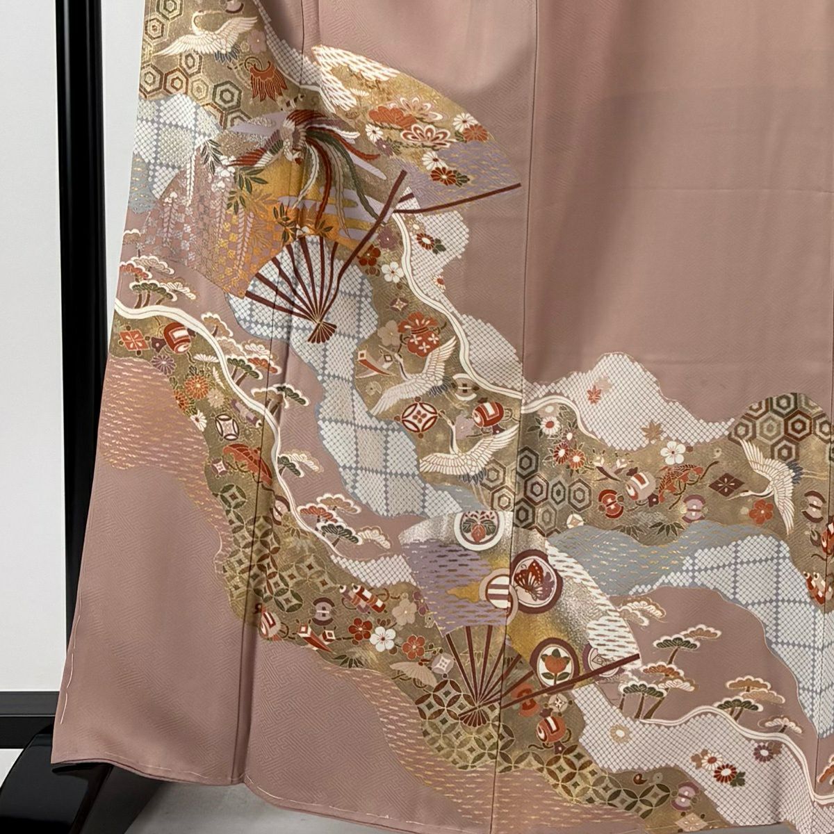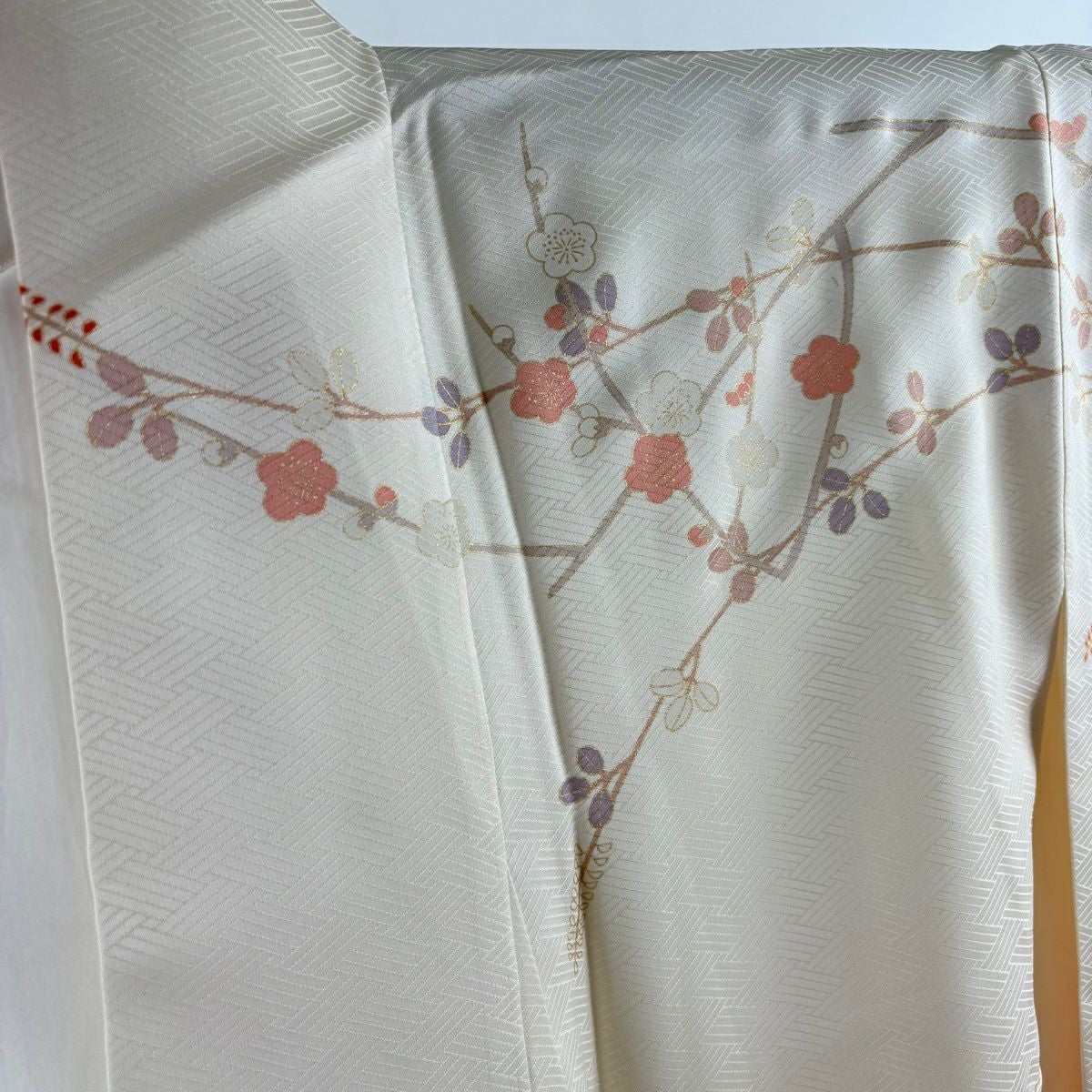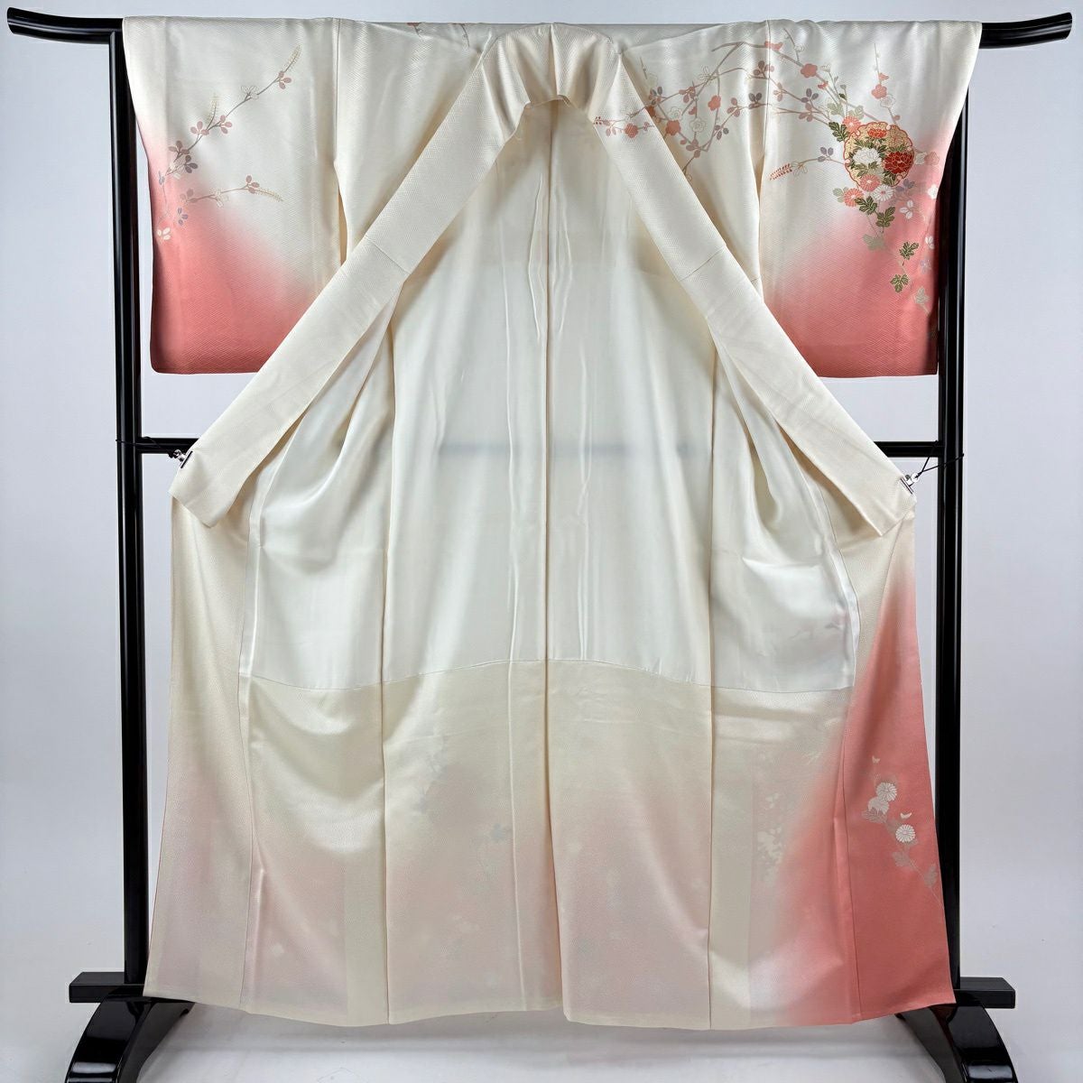 30%OFF 振袖 身丈160.5cm 裄丈64cm M 袷 鶴 枝梅 金糸 金彩 サーモンピンク 正絹 秀品 K30