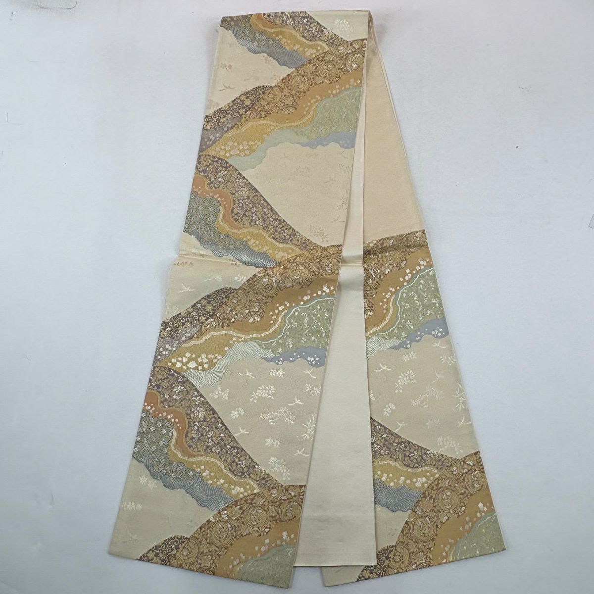 30%OFF 【美品】 袋帯 秀品 日本三景の内天の橋立 関西仕立て 松 舟 金糸 箔 クリーム 六通 正絹 K30