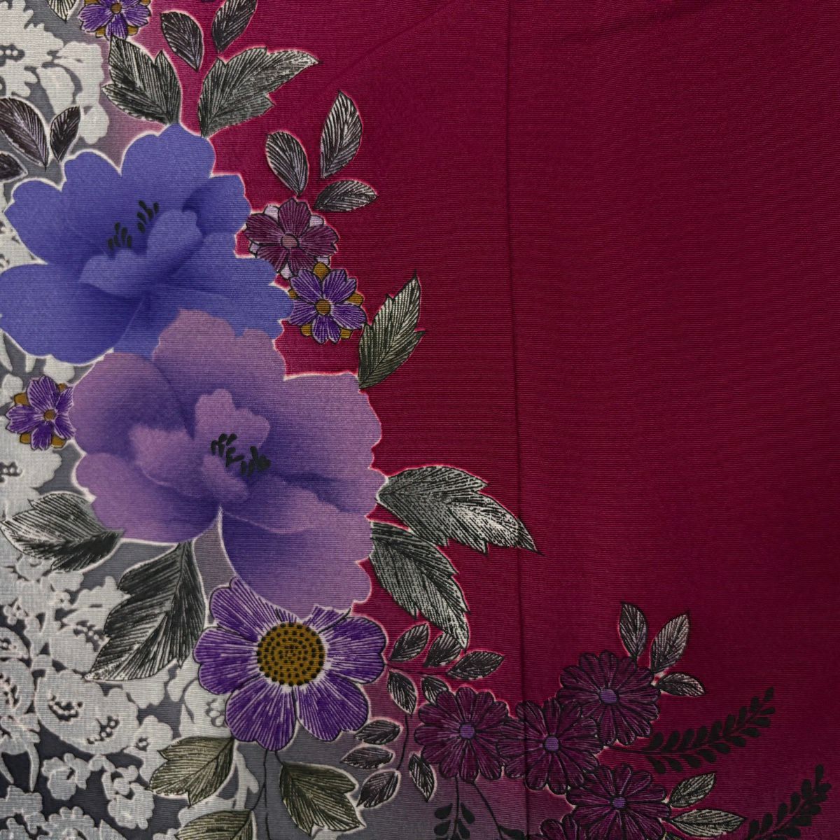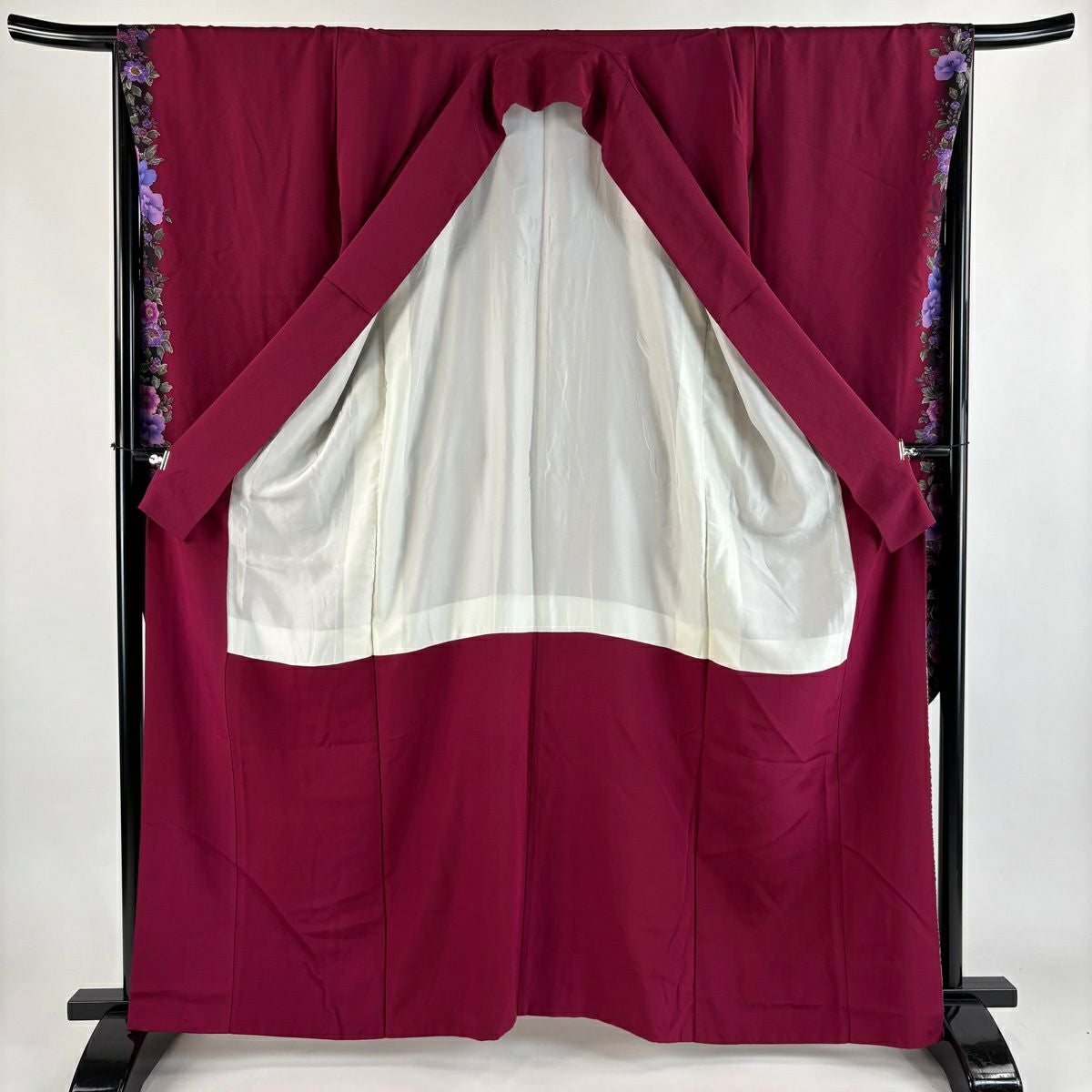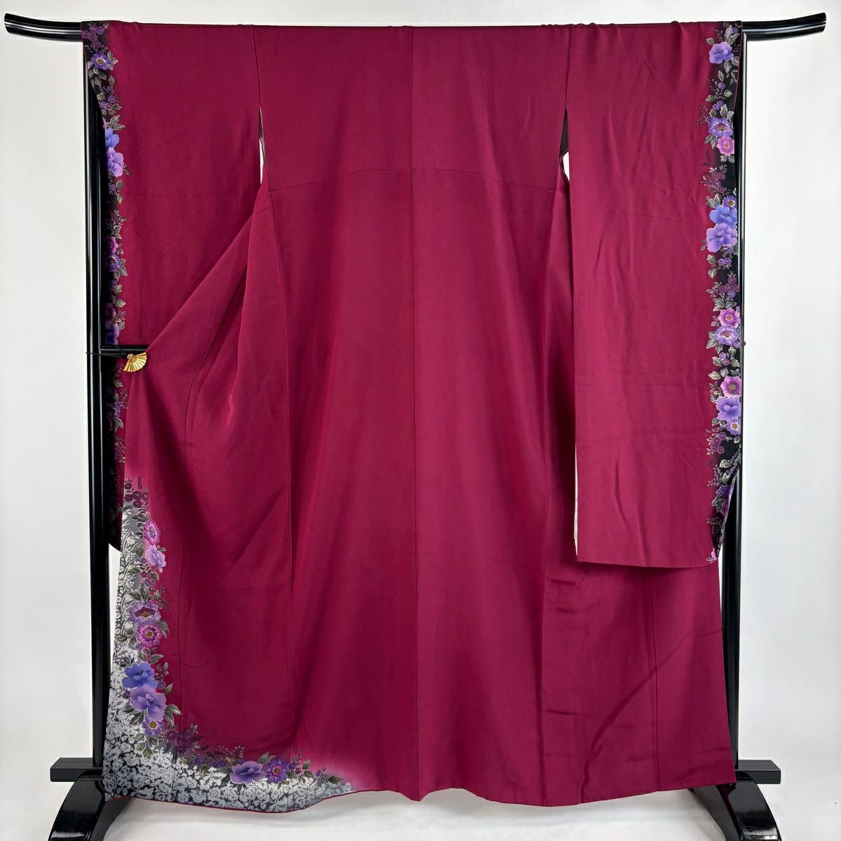 30%OFF 振袖 身丈162.5cm 裄丈66.5cm M 袷 鈴乃屋 草花 染め分け ぼかし 赤紫 正絹 秀品 K30