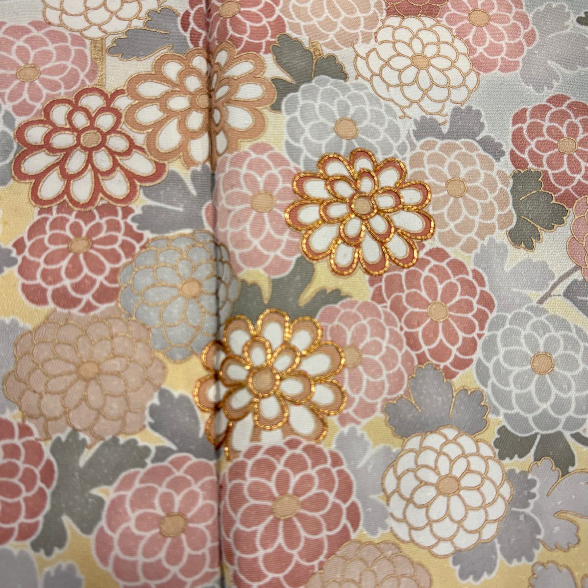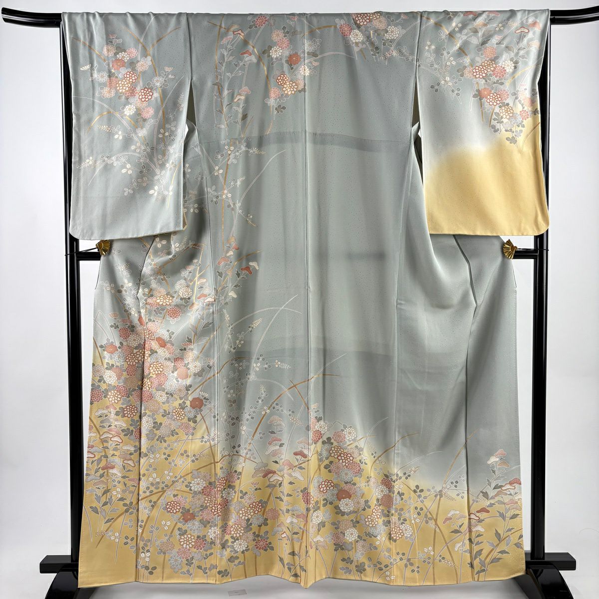 30%OFF 【美品】 訪問着 身丈164cm 裄丈67.5cm L 袷 秋草 菊 金糸 金彩 灰色 正絹 秀品 K30
