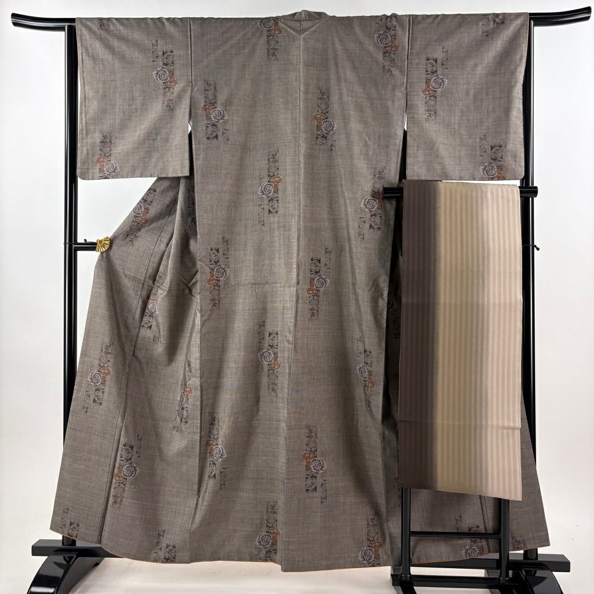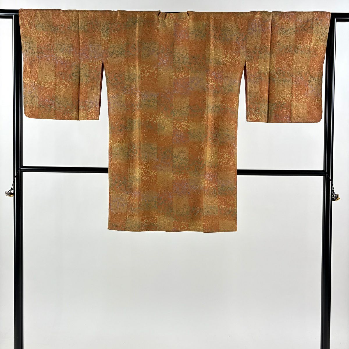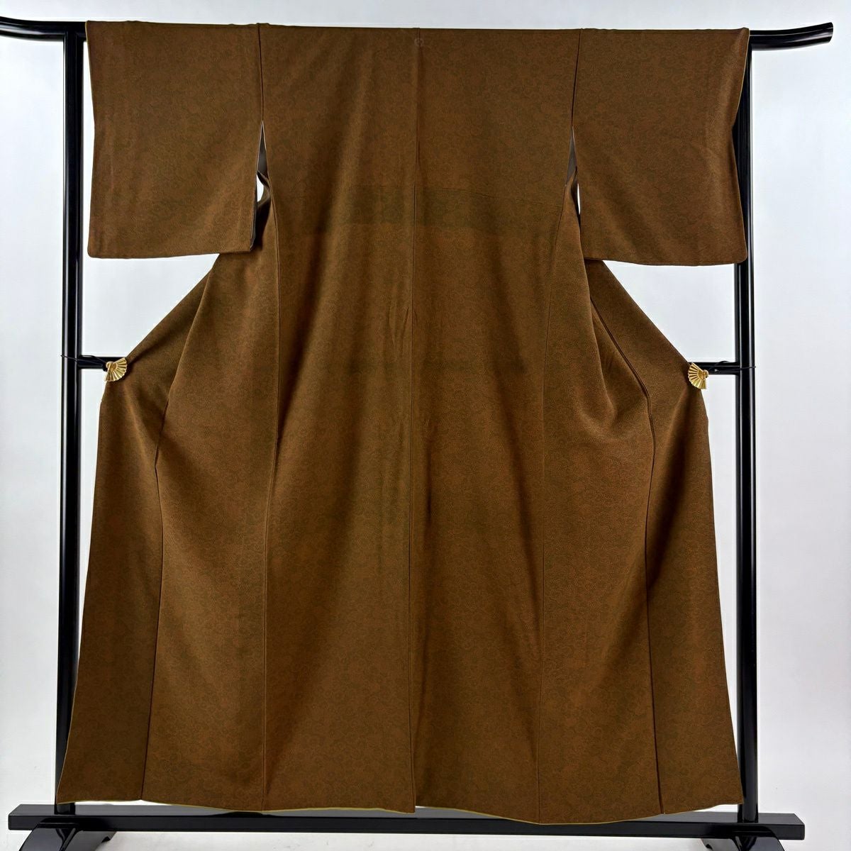 50%OFF 【美品】 江戸小紋 身丈156cm 裄丈64cm M 袷 落款あり 花 茶色 正絹 秀品 一つ紋 K50