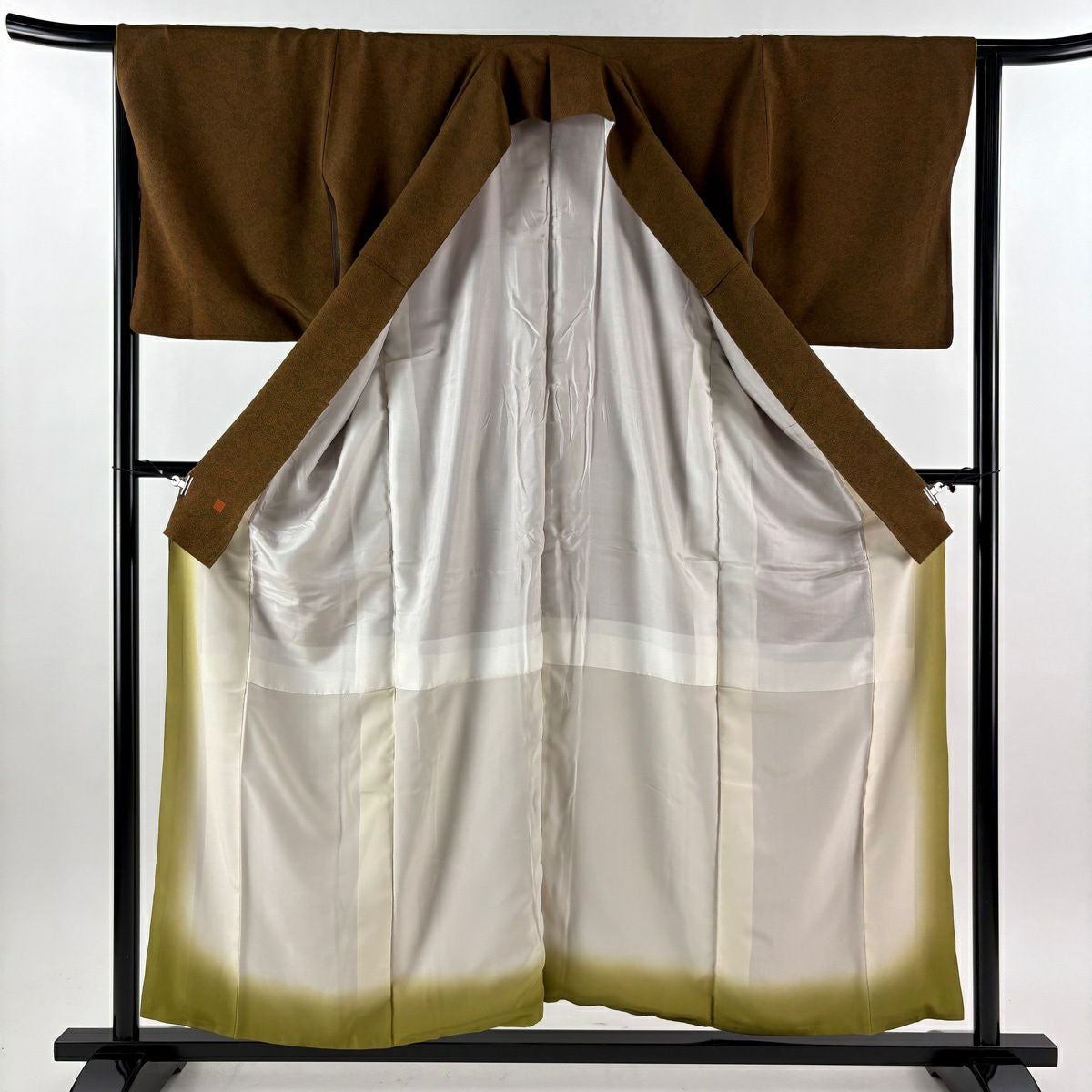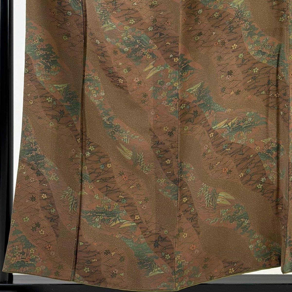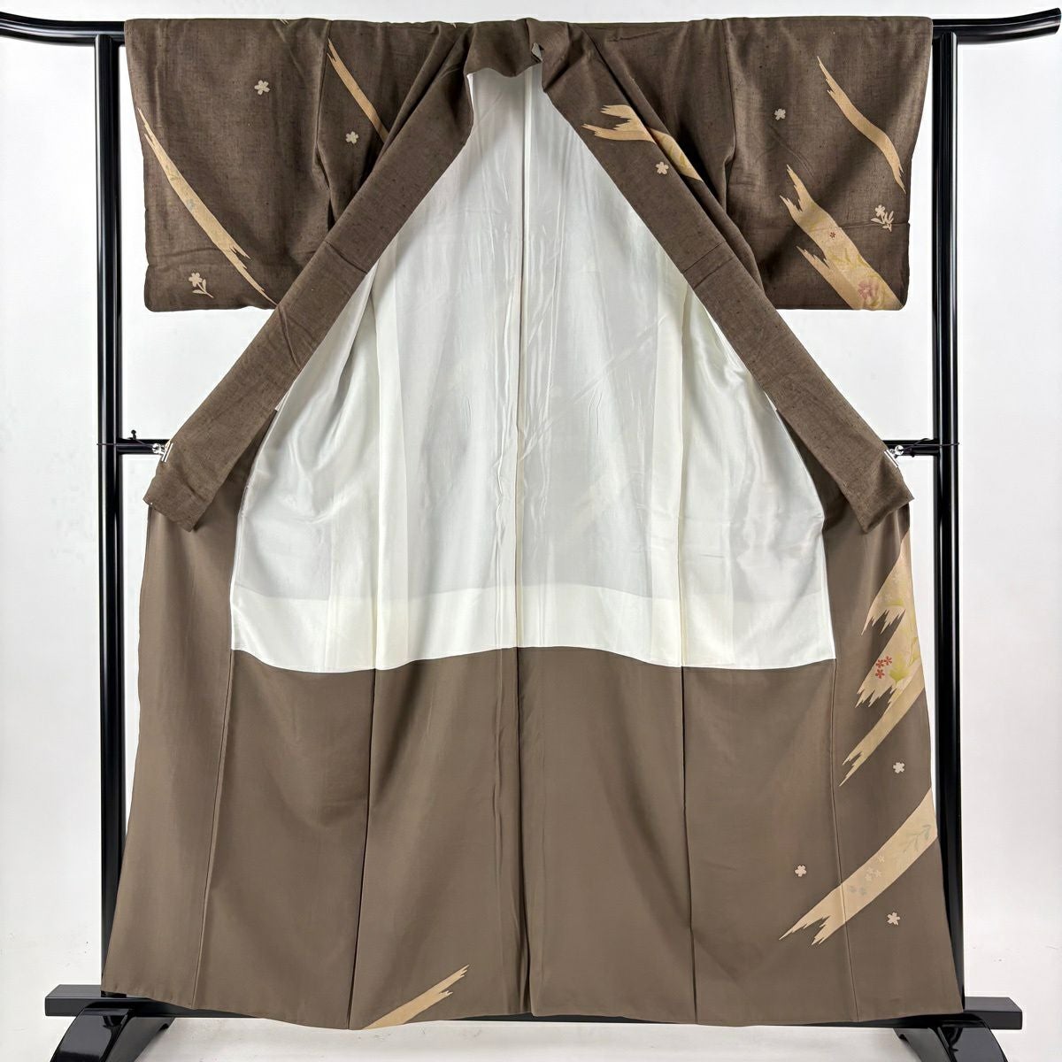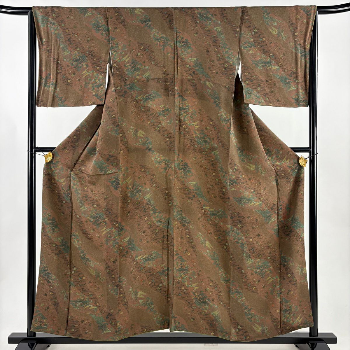 50%OFF 【美品】 小紋 身丈159.5cm 裄丈66cm M 袷 紬地 辻が花柄 霞 焦茶色 正絹 秀品 K50