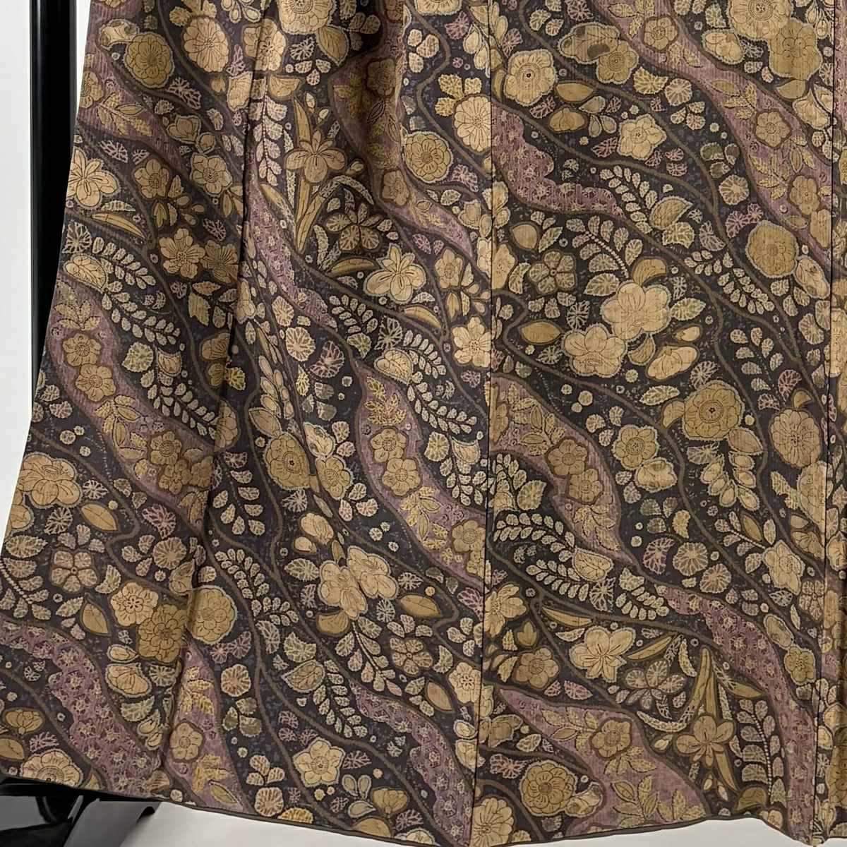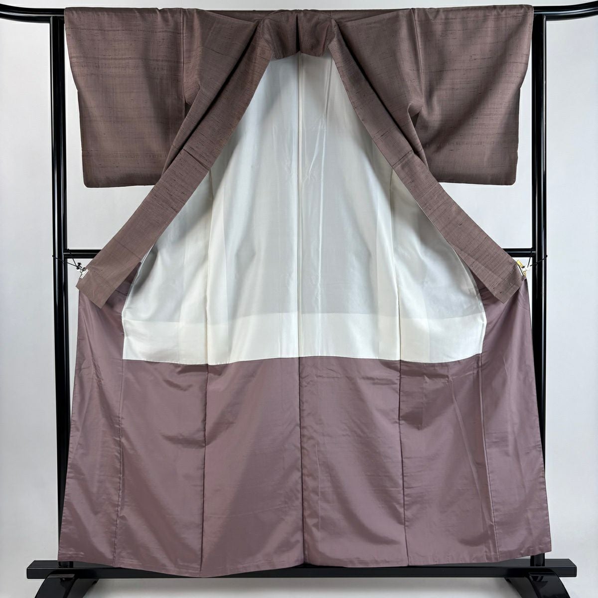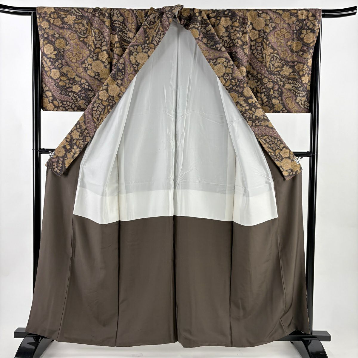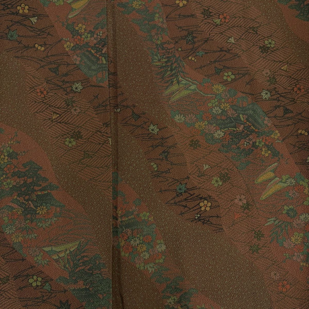 50%OFF 【美品】 小紋 身丈159.5cm 裄丈66cm M 袷 紬地 辻が花柄 霞 焦茶色 正絹 秀品 K50