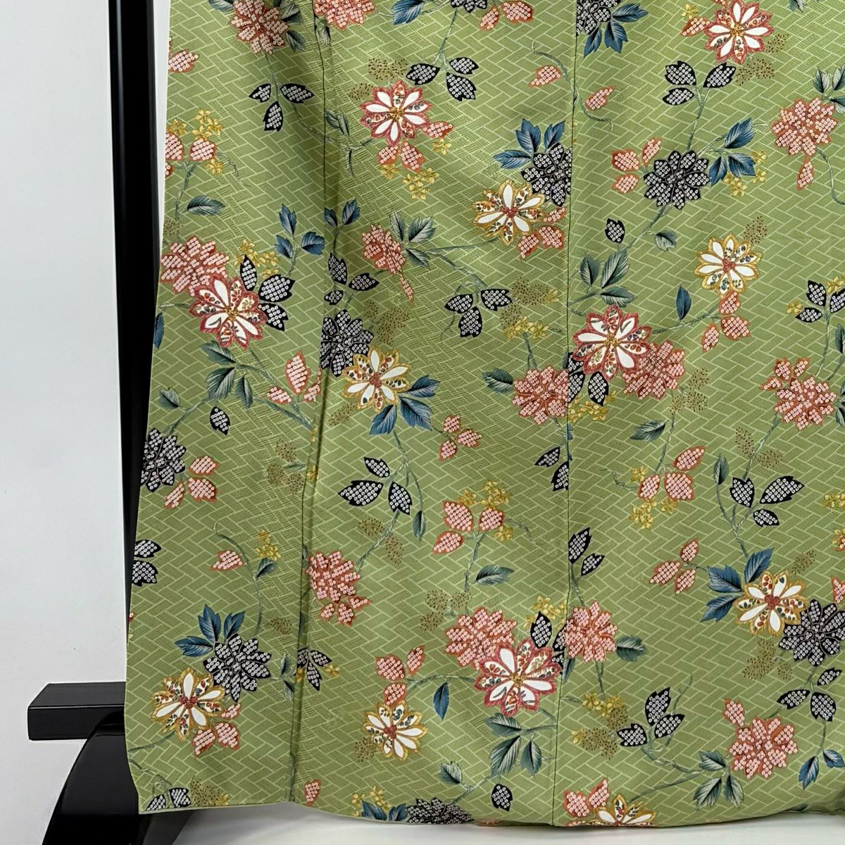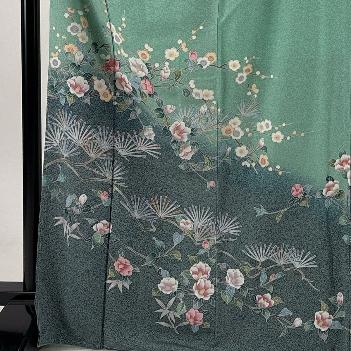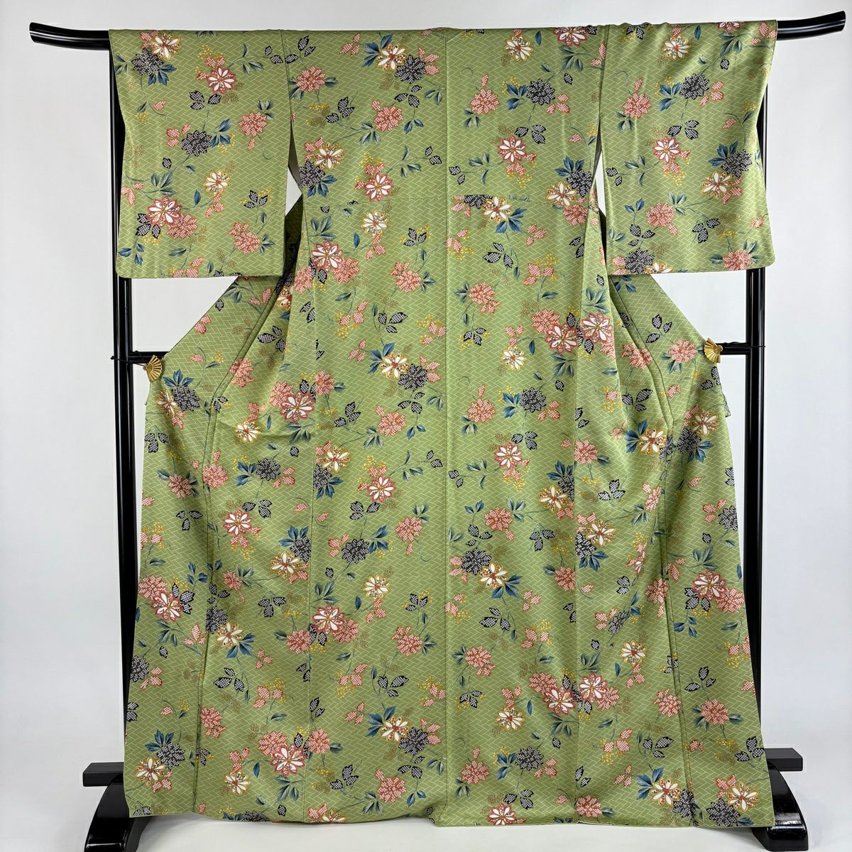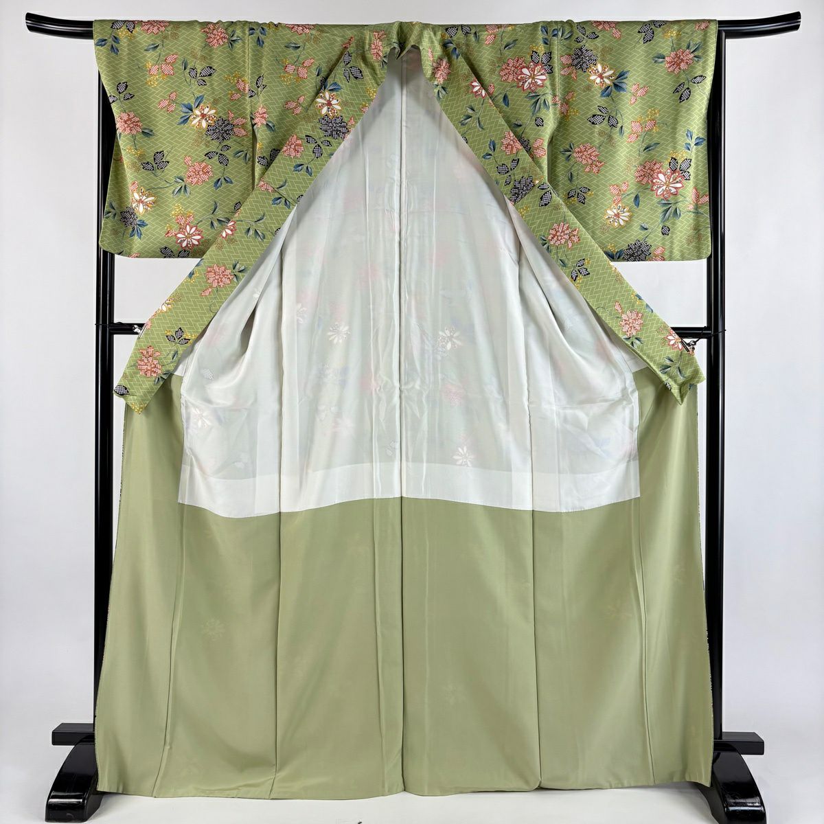 50%OFF 訪問着 身丈157.5cm 裄丈63.5cm S 袷 落款あり 草花 枝花 ぼかし 薄緑 正絹 秀品 K50
