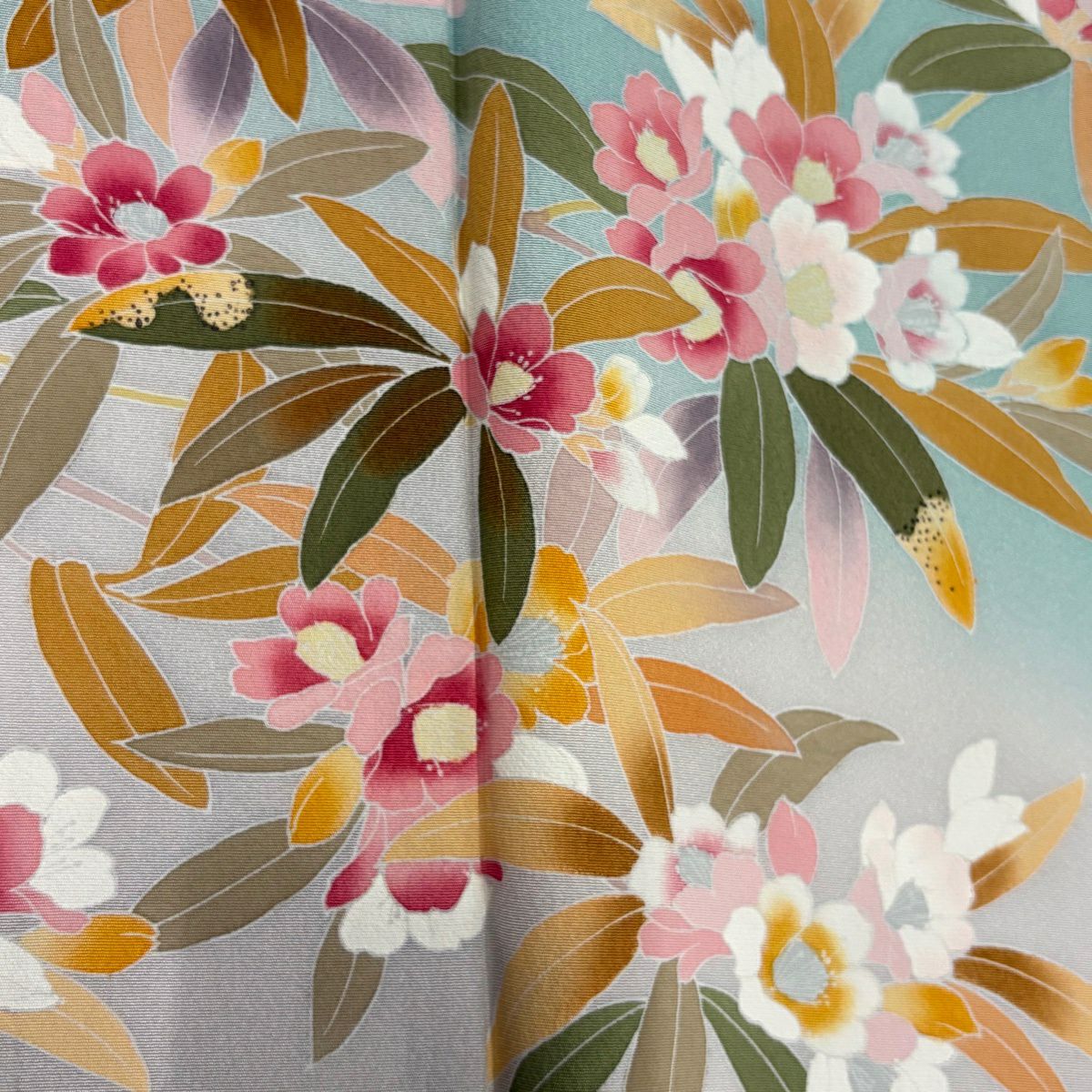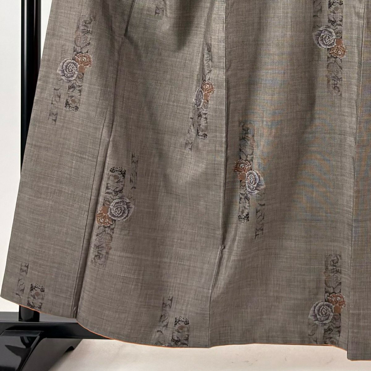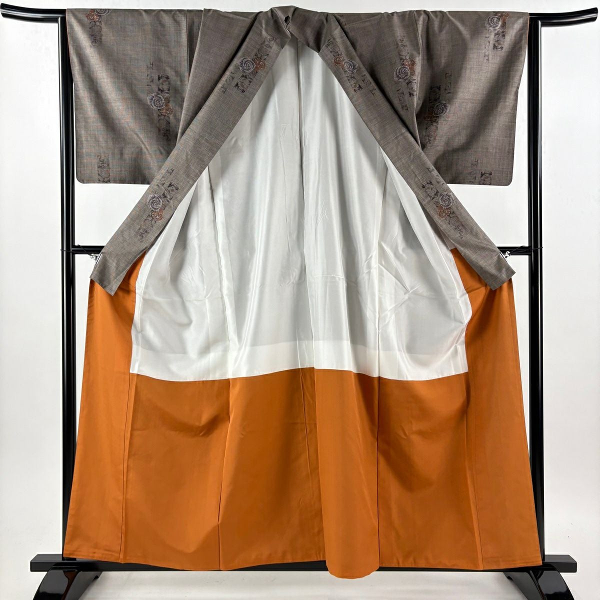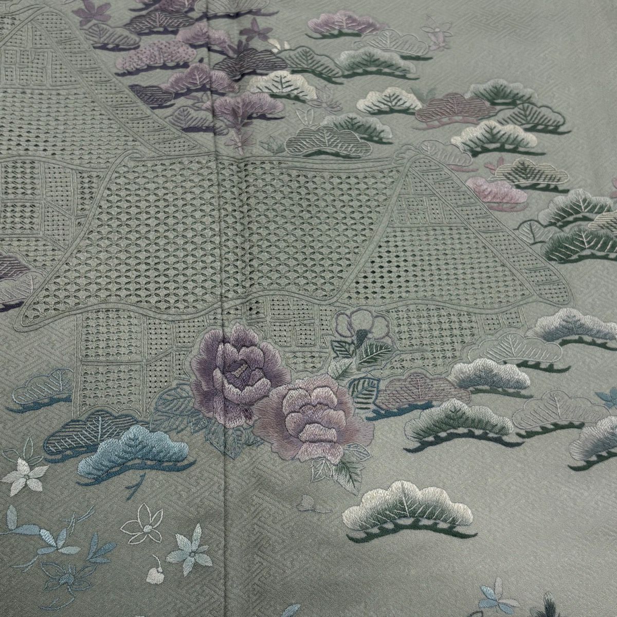 50%OFF 【美品】 付下げ 身丈152cm 裄丈64cm M 袷 草花 ヱ霞 刺繍 絞り 灰緑 正絹 秀品 K50