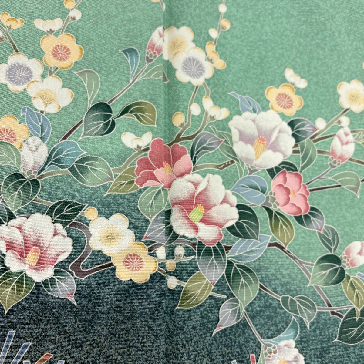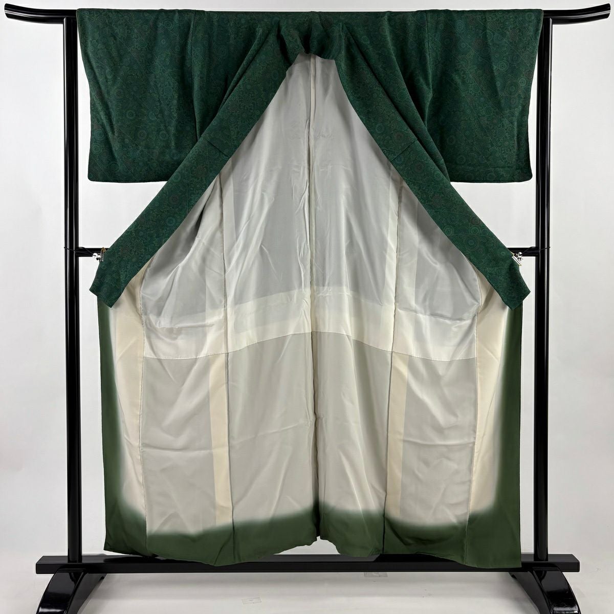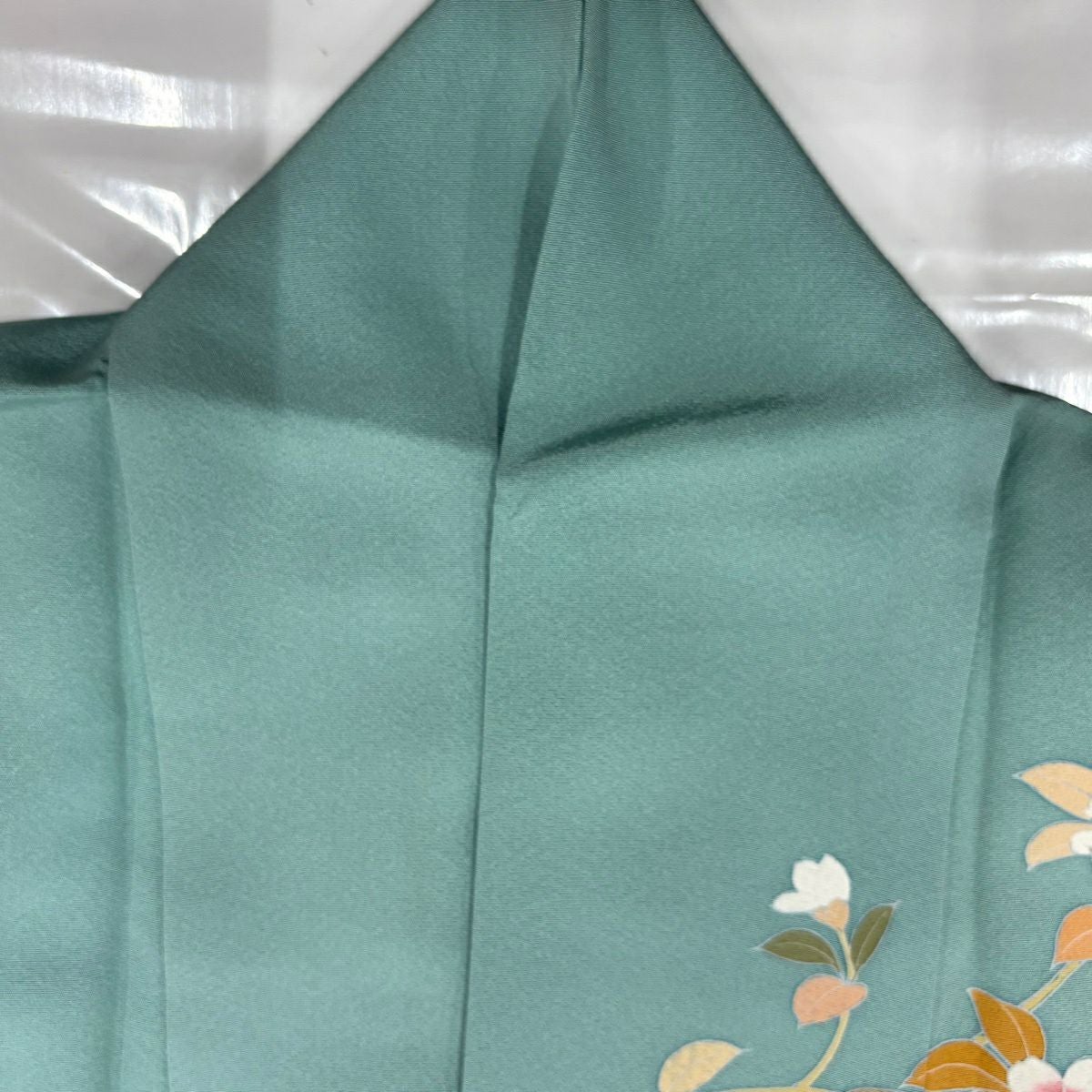 50%OFF 付下げ 身丈161.5cm 裄丈66cm M 袷 落款あり 華文 草花 青緑 正絹 秀品 一つ紋 K50