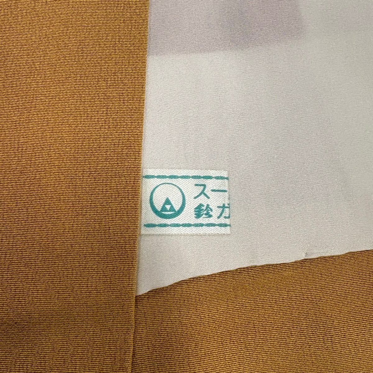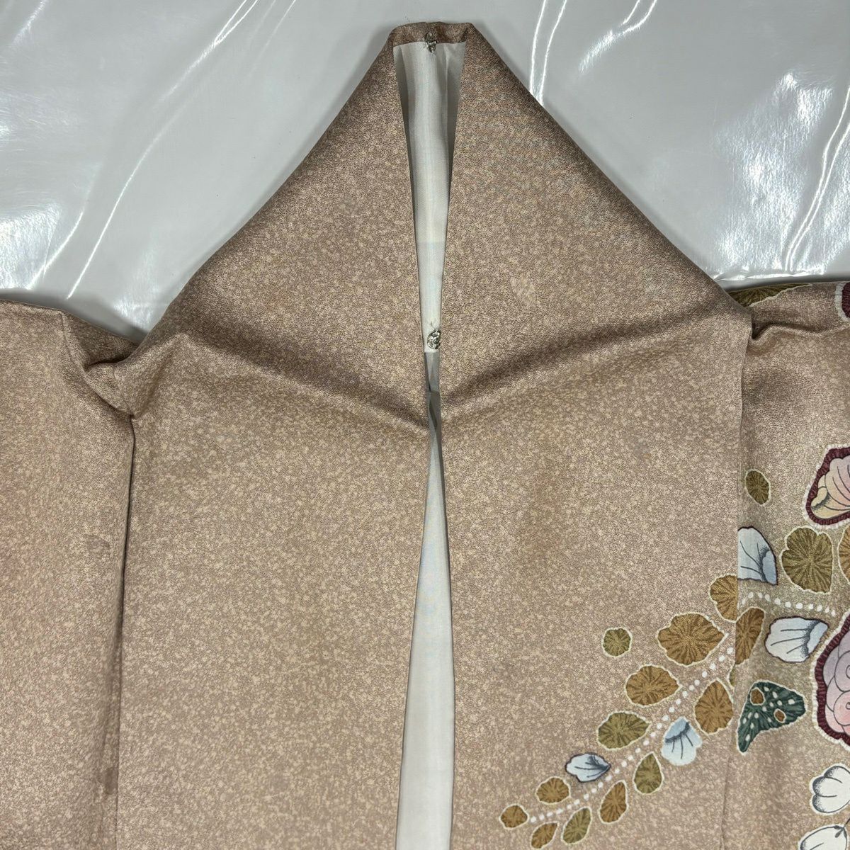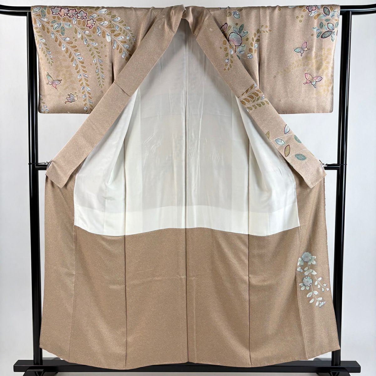 50%OFF 【美品】 訪問着 身丈159cm 裄丈66cm M 袷 扇面 椿 金糸 刺繍 薄茶色 正絹 秀品 K50