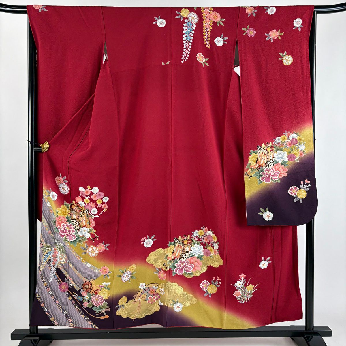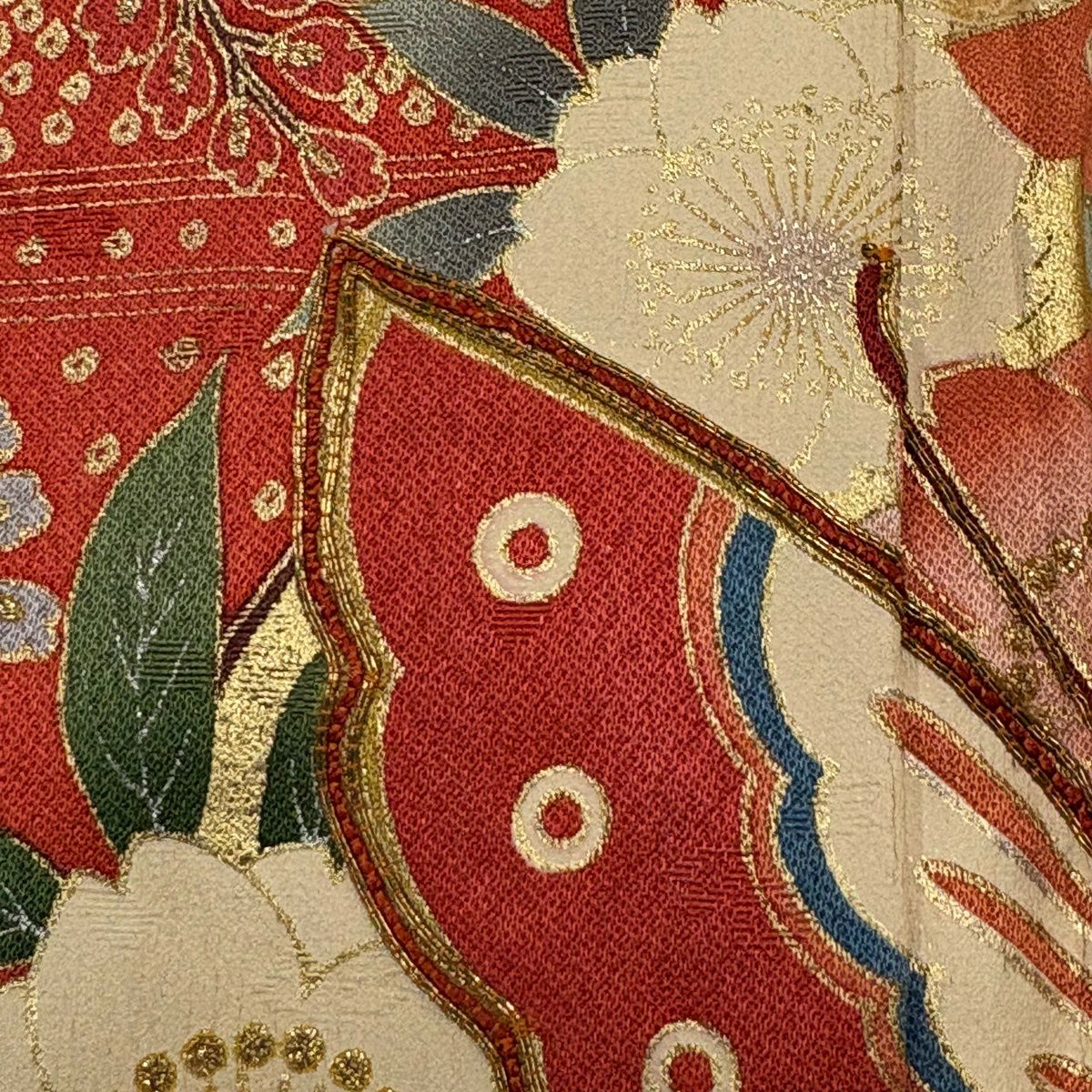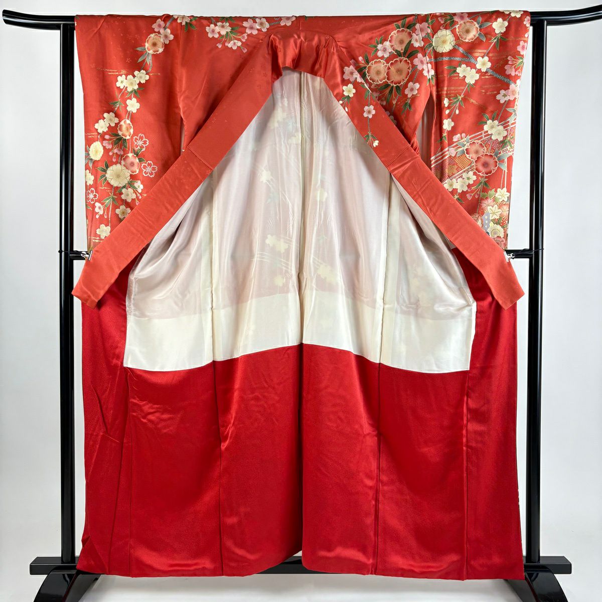 50%OFF 【美品】 振袖 身丈155cm 裄丈65.5cm M 袷 御所車 花丸文 金糸 金彩 赤 正絹 秀品 K50