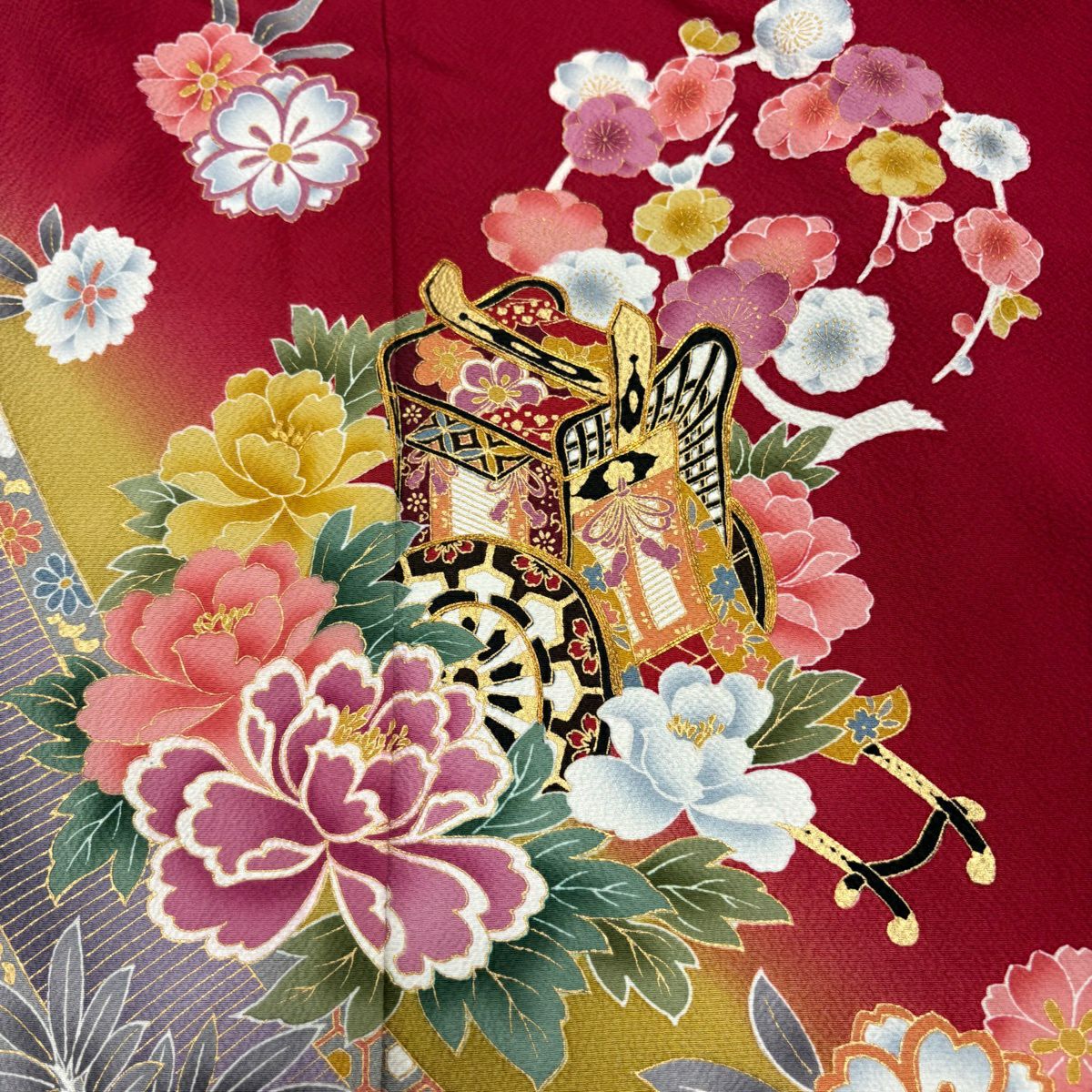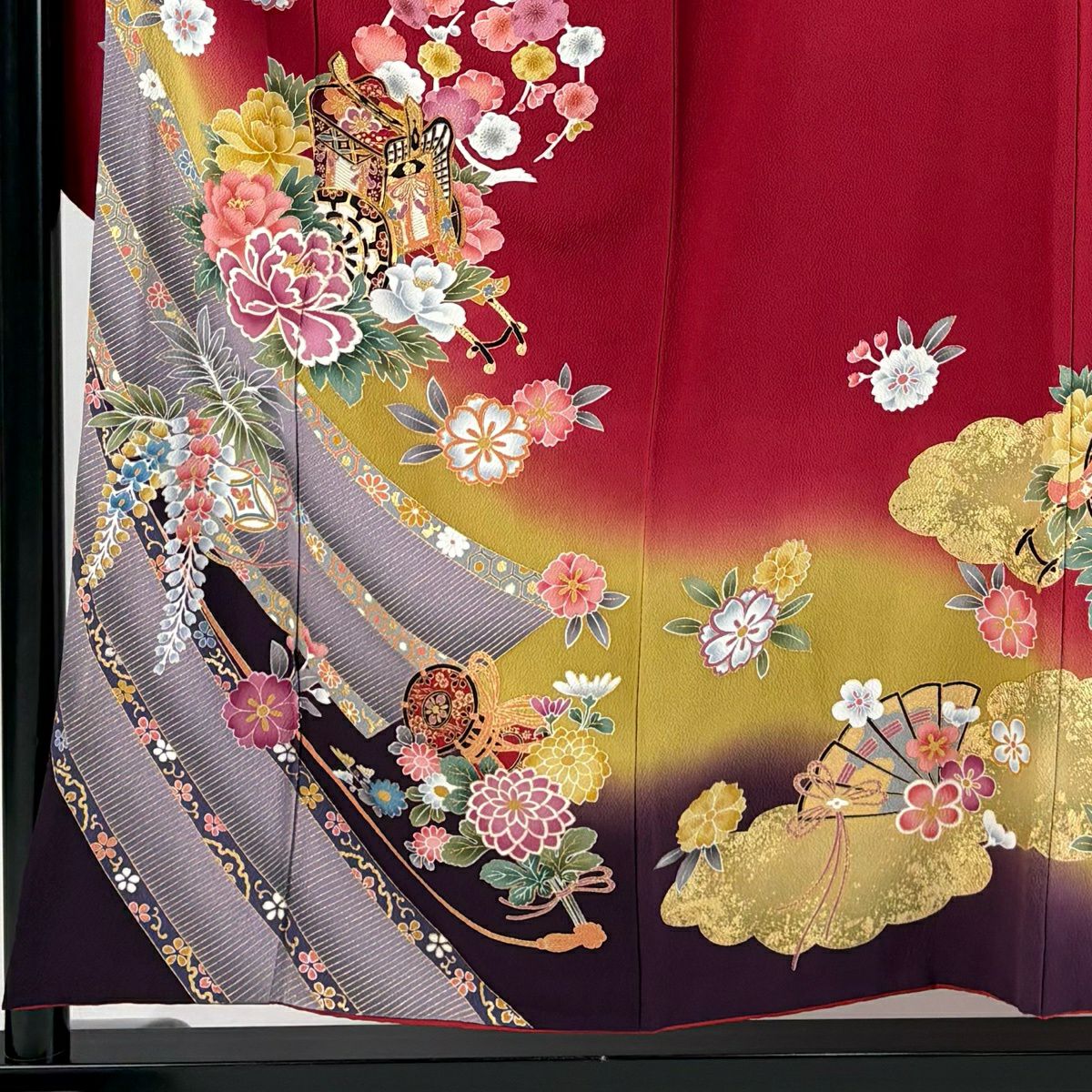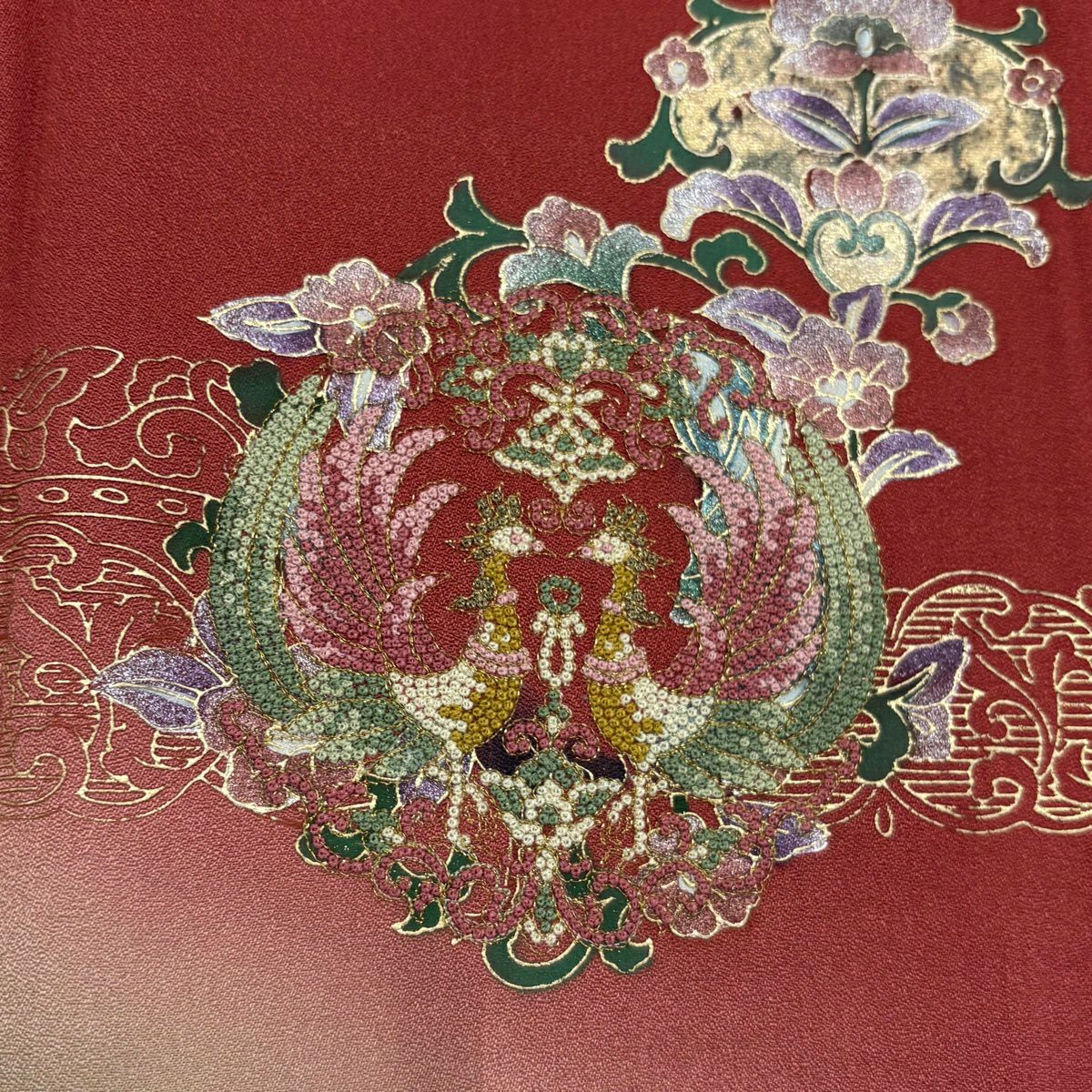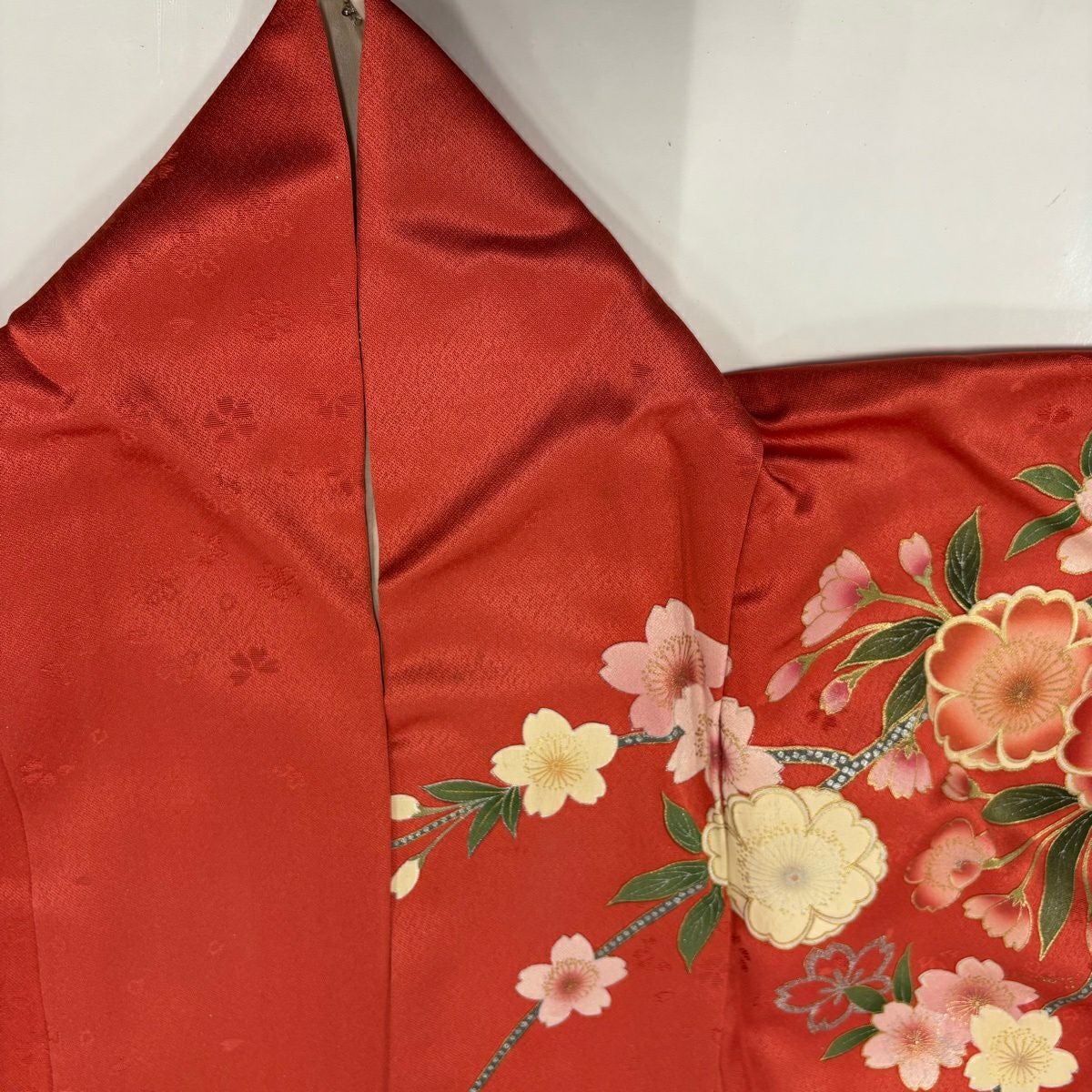 50%OFF 【美品】 振袖 身丈155cm 裄丈65.5cm M 袷 御所車 花丸文 金糸 金彩 赤 正絹 秀品 K50