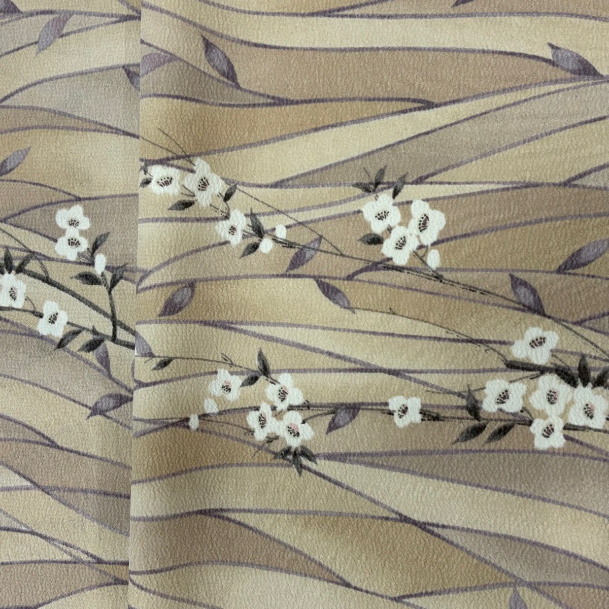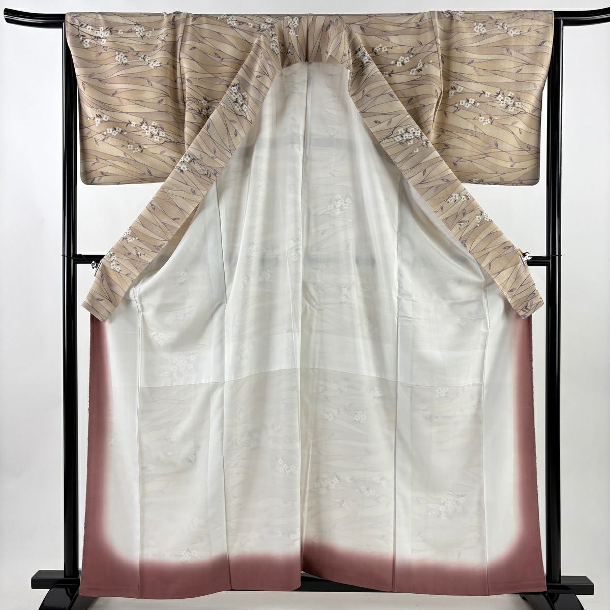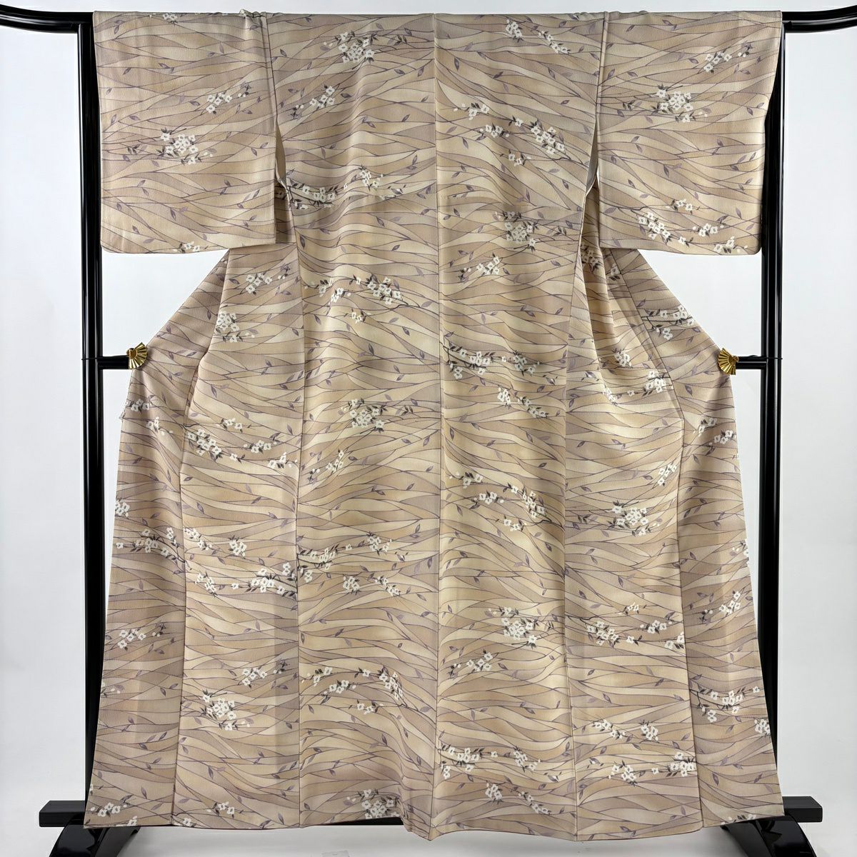 50%OFF 小紋 身丈160.5cm 裄丈66cm M 袷 桜 幾何学模様 ぼかし ベージュ 正絹 秀品 K50