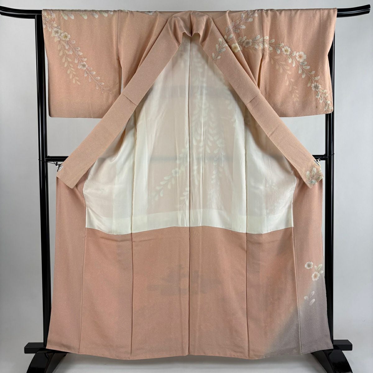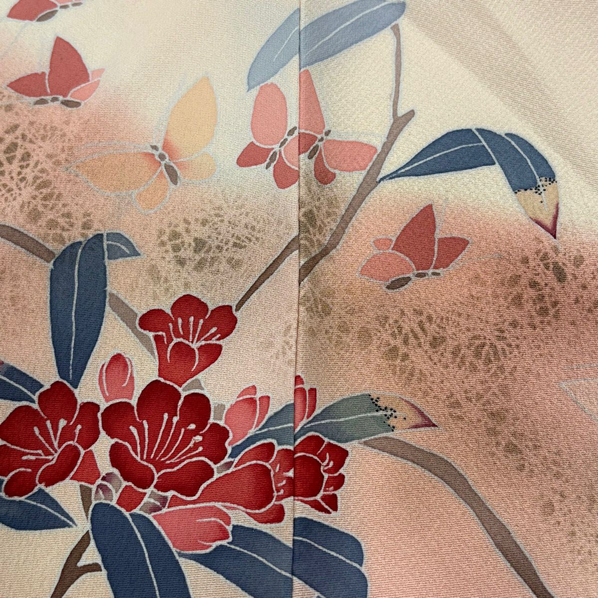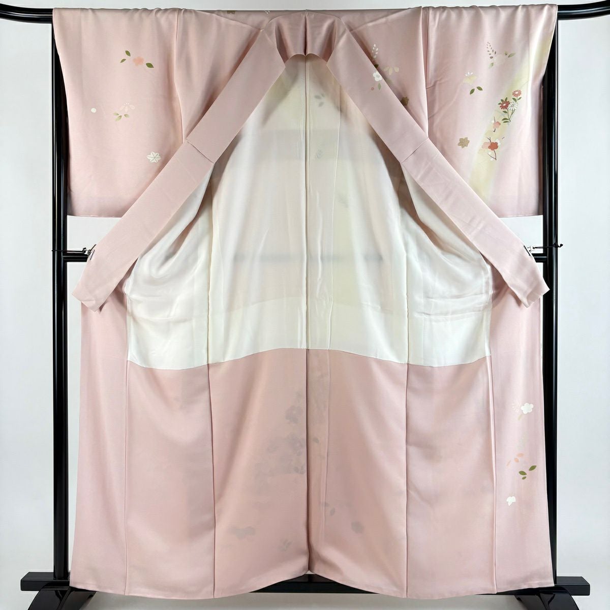 50%OFF 訪問着 身丈164cm 裄丈66.5cm M 袷 枝花 蝶 金彩 ぼかし 薄ピンク 正絹 秀品 K50