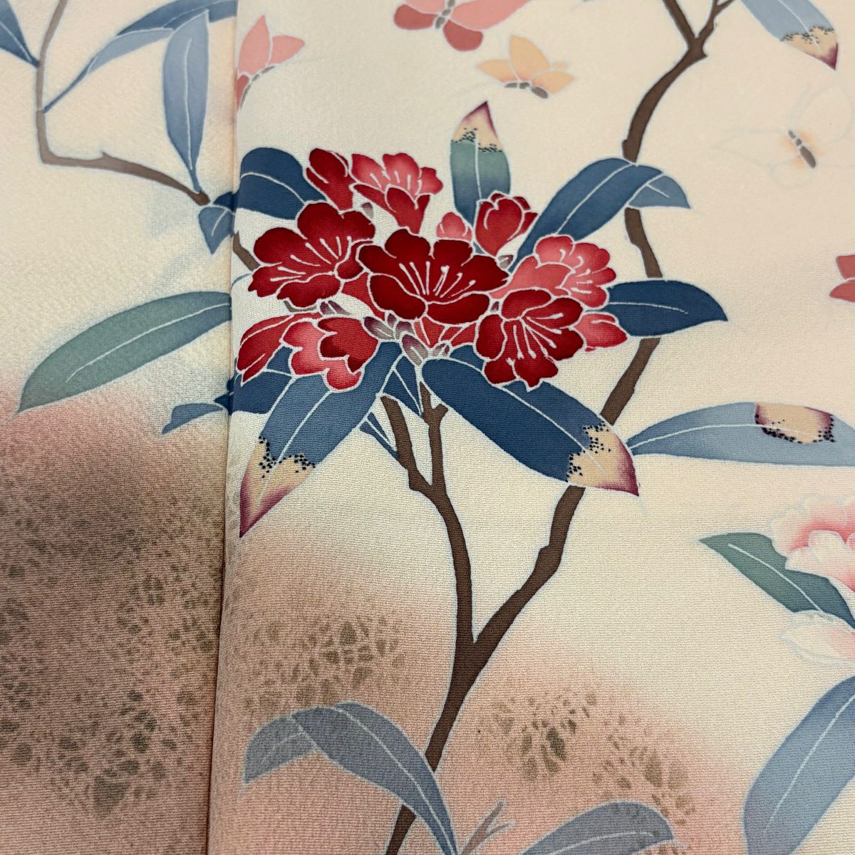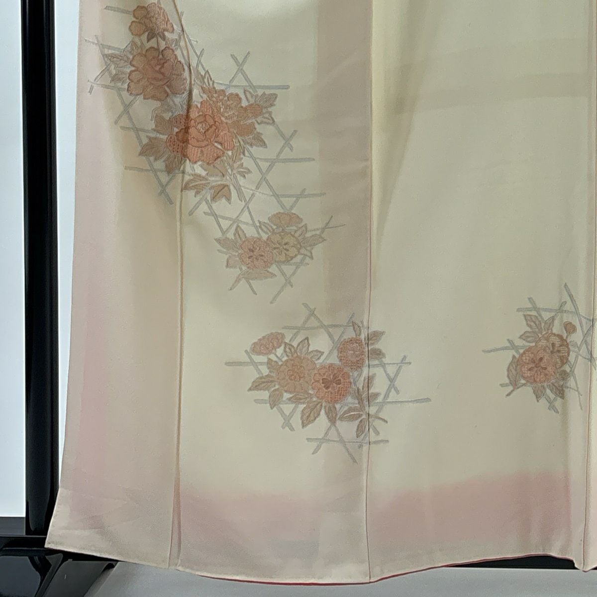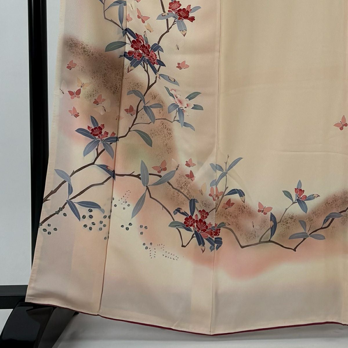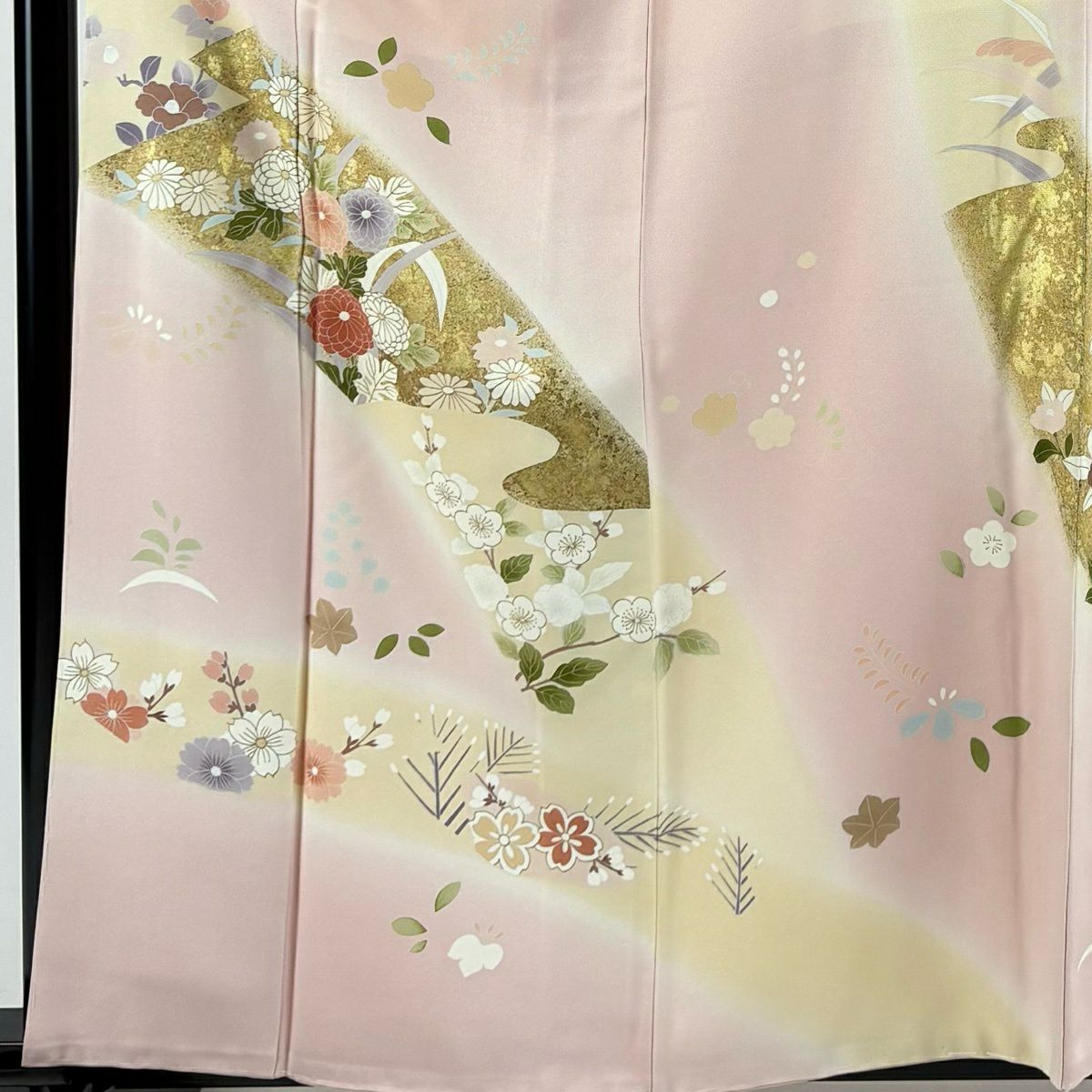 50%OFF 訪問着 身丈164cm 裄丈66.5cm M 袷 枝花 蝶 金彩 ぼかし 薄ピンク 正絹 秀品 K50
