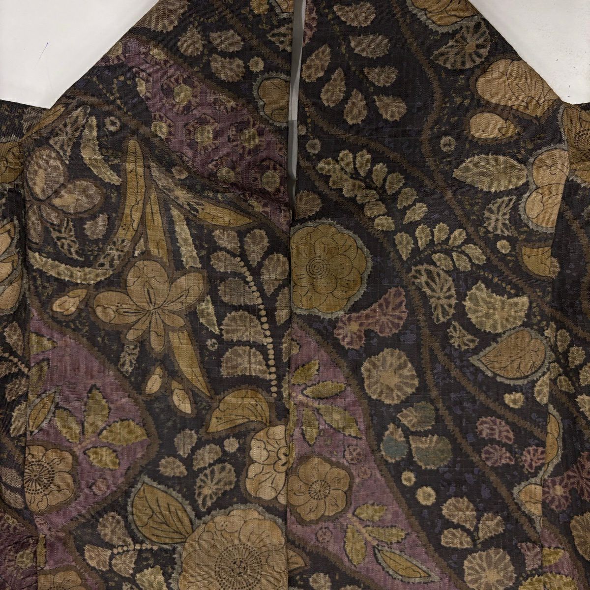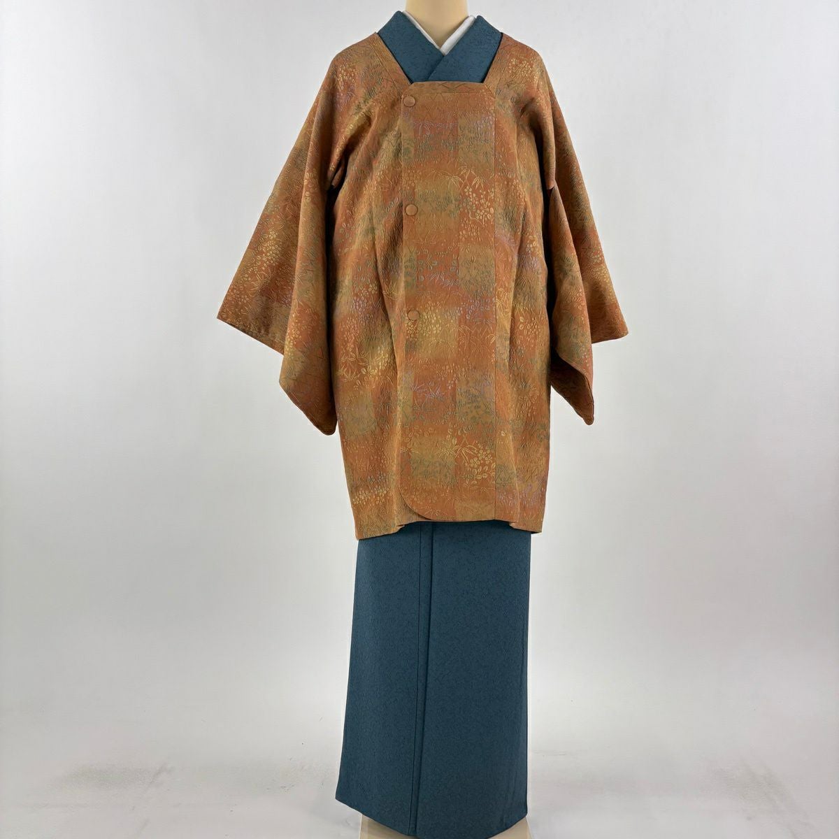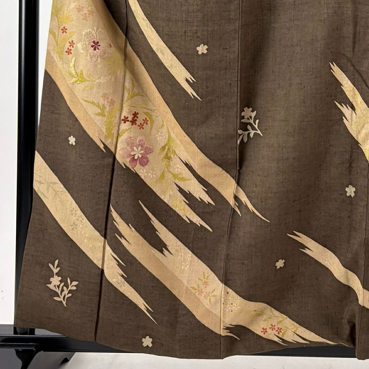 50%OFF 【美品】 道中着 身丈100cm 裄丈64.5cm M 和装コート 縞 地紋 焦茶色 正絹 秀品 K50