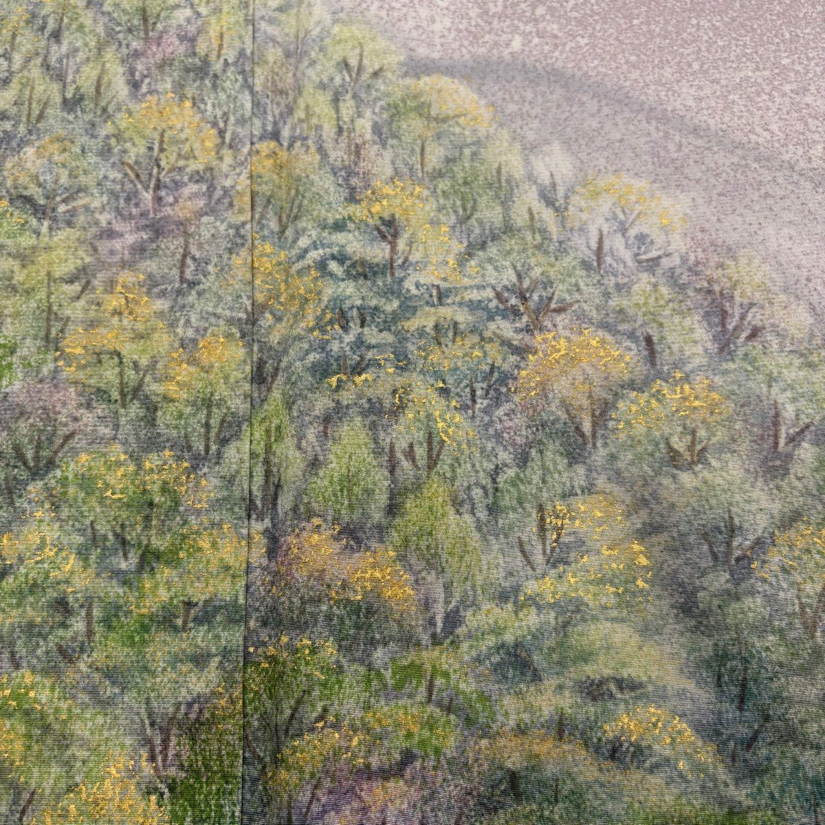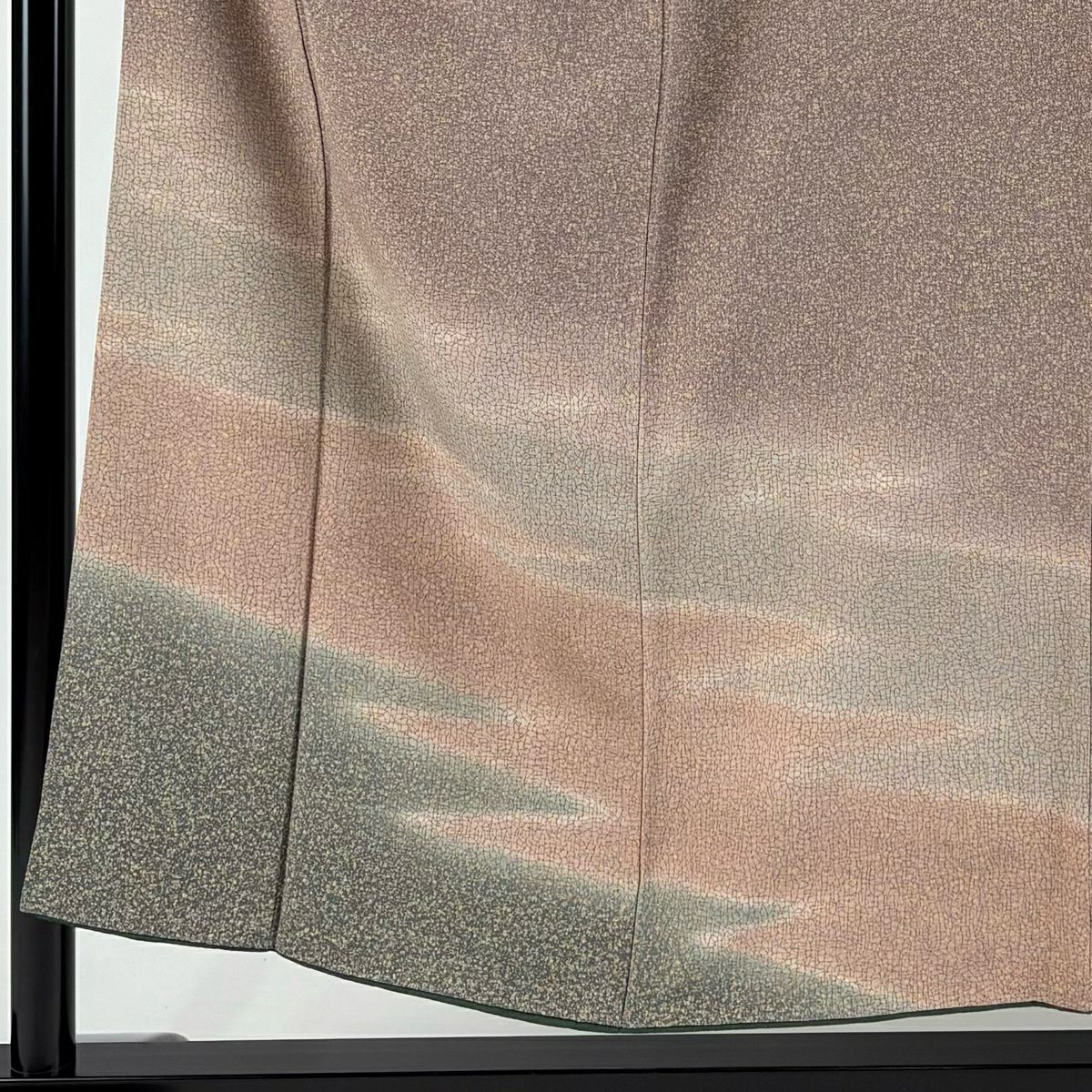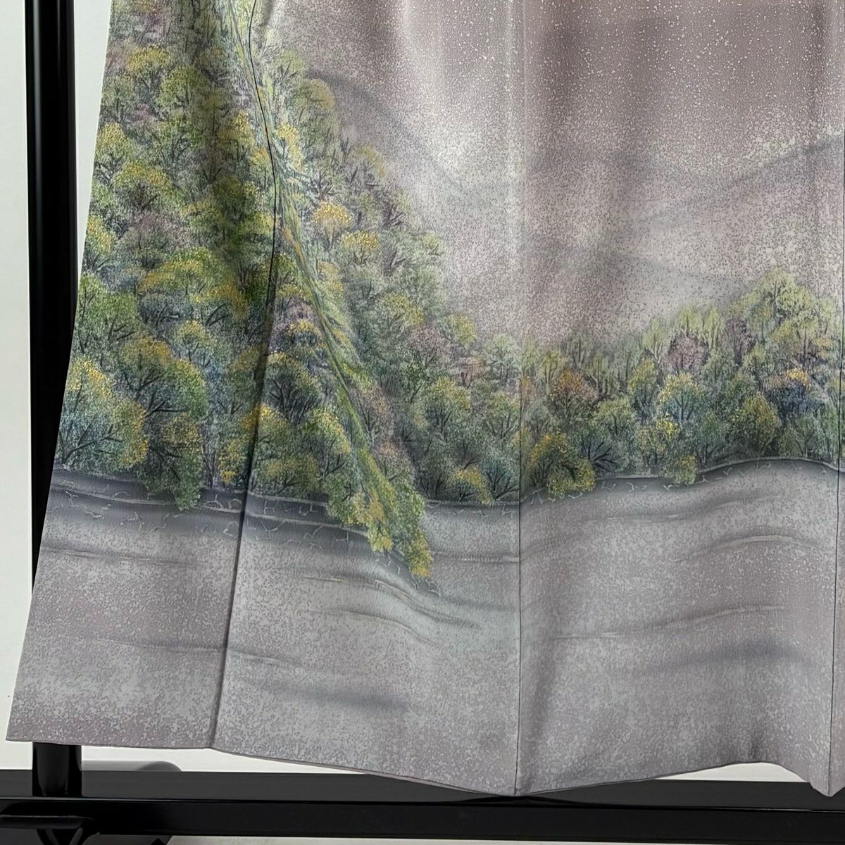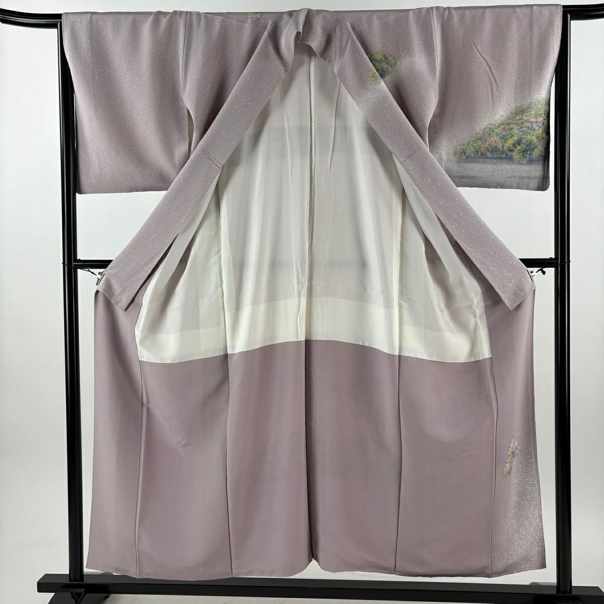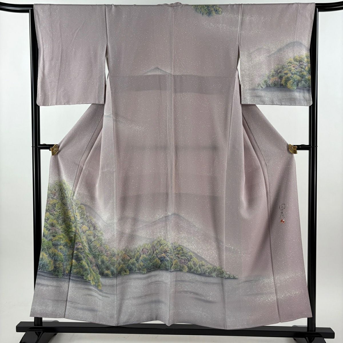 50%OFF 訪問着 身丈154cm 裄丈65.5cm M 袷 落款あり 樹木 山並み 金彩 薄紫 正絹 秀品 K50