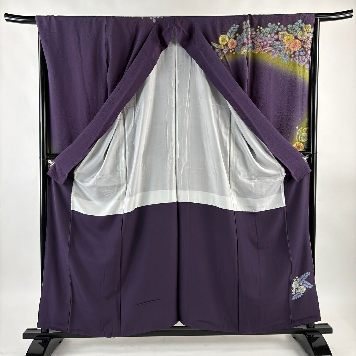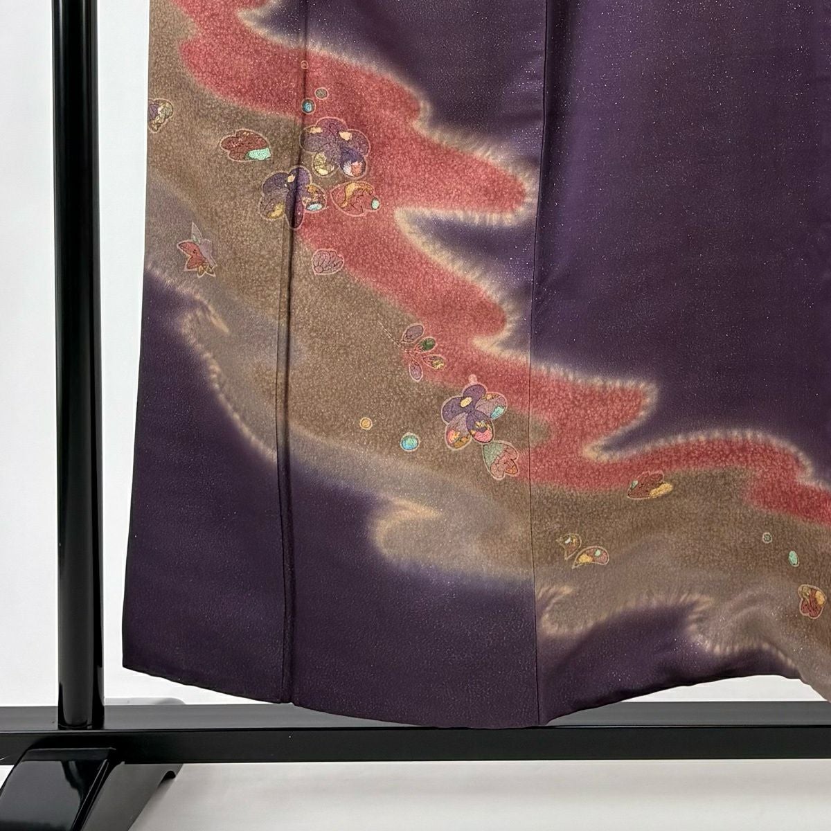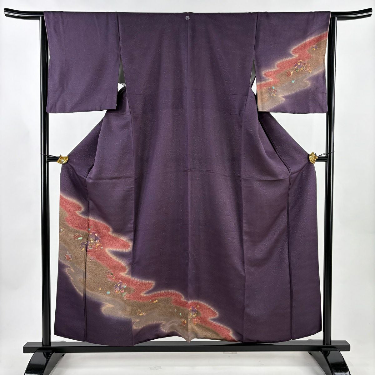 50%OFF 付下げ 身丈156.5cm 裄丈64cm M 袷 霞 椿 銀通し 金銀彩 紫 正絹 秀品 一つ紋 K50
