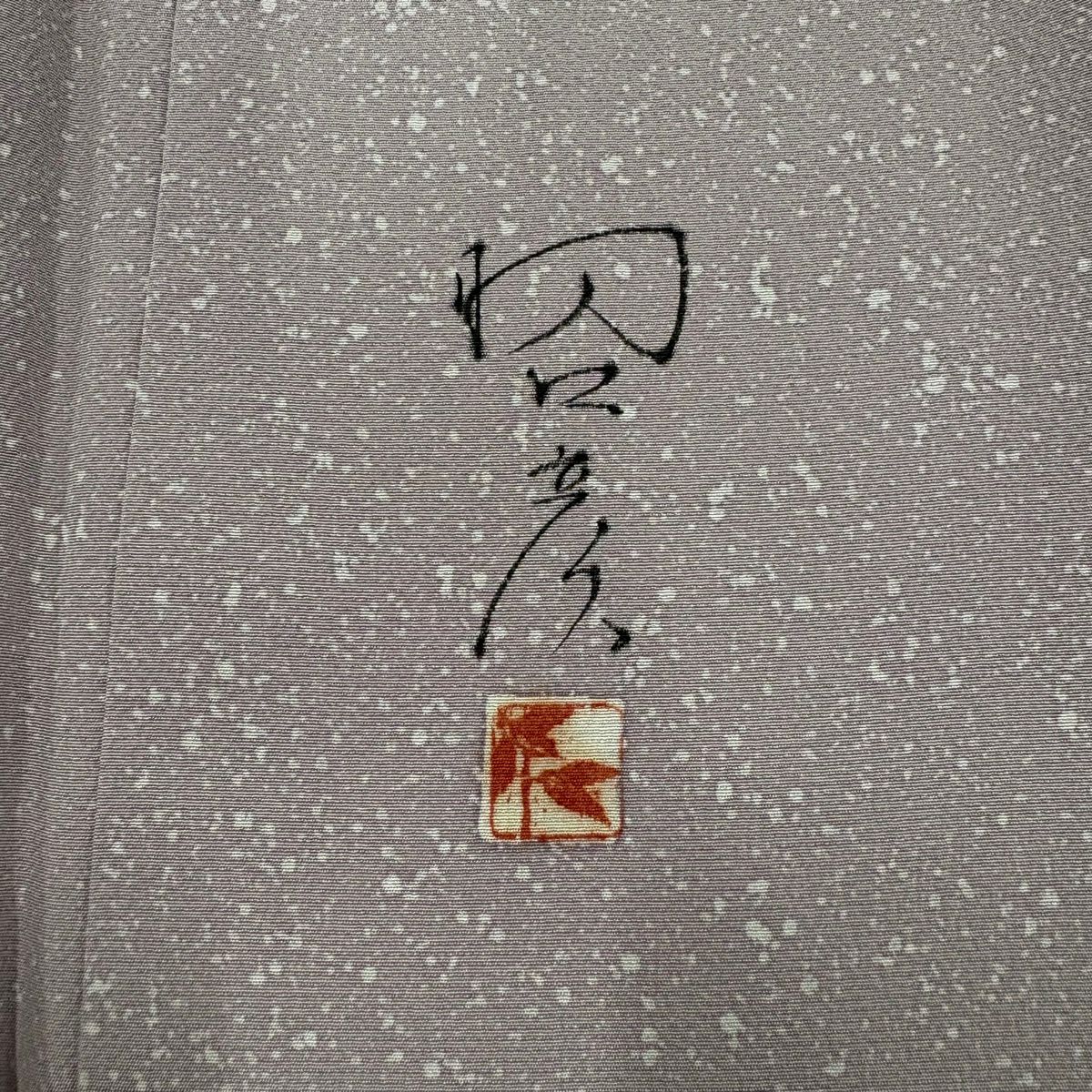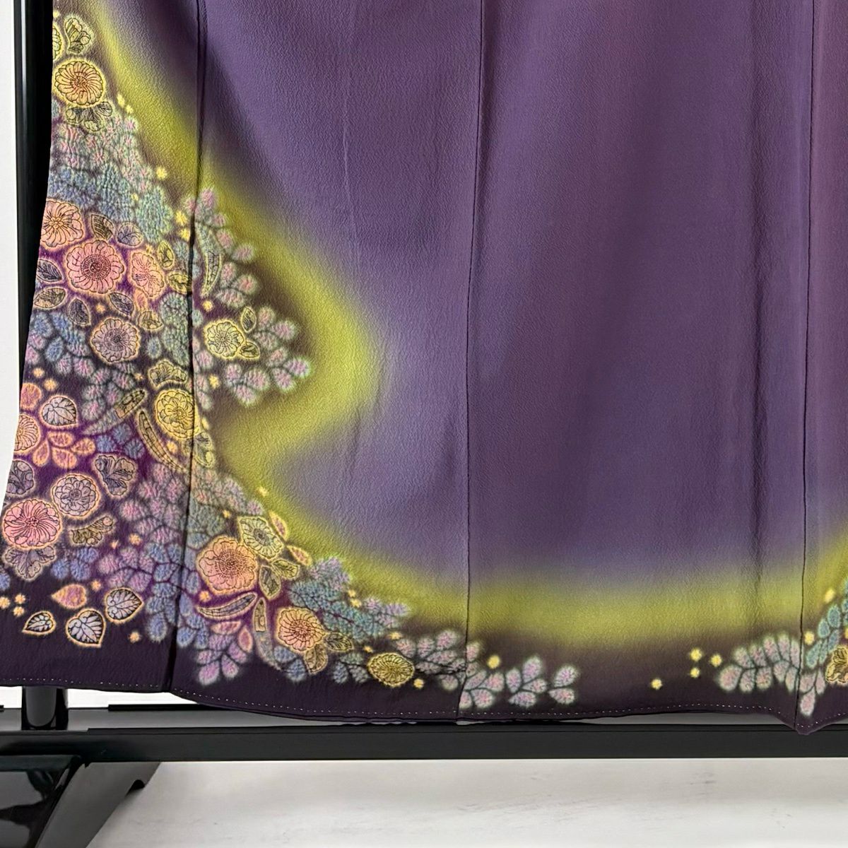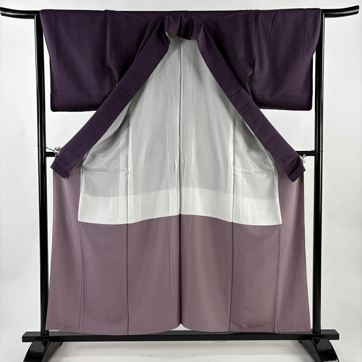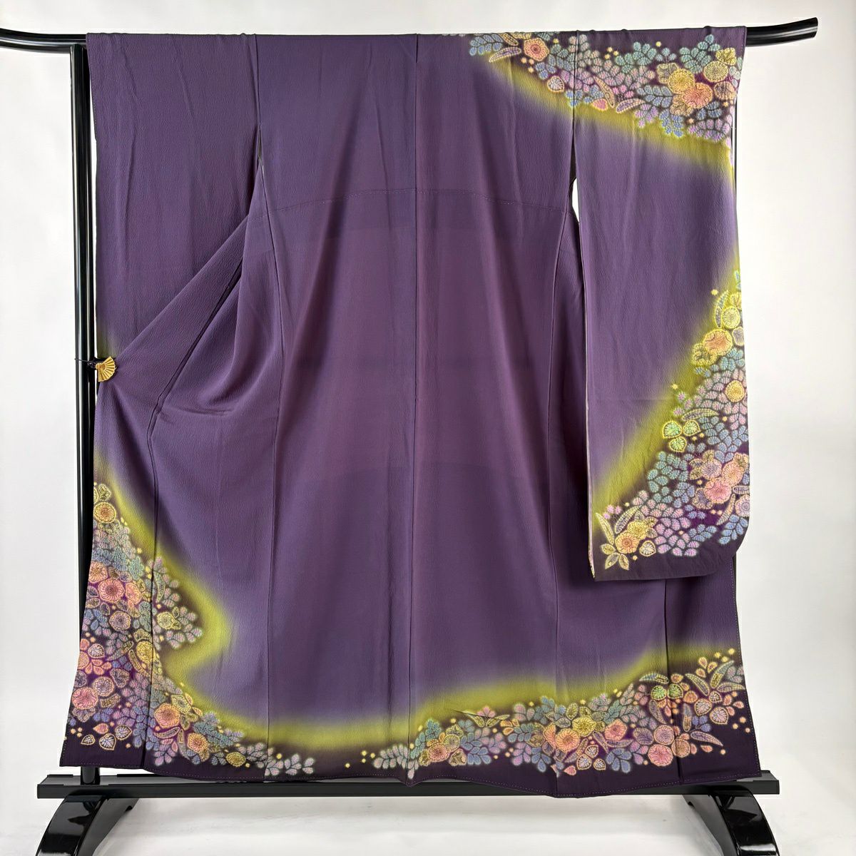 50%OFF 付下げ 身丈156.5cm 裄丈64cm M 袷 霞 椿 銀通し 金銀彩 紫 正絹 秀品 一つ紋 K50