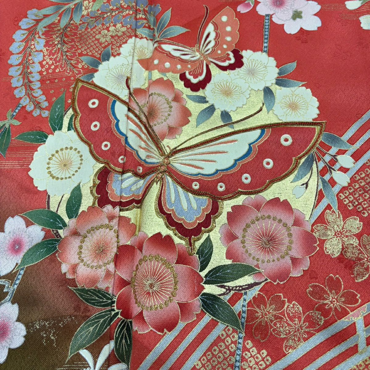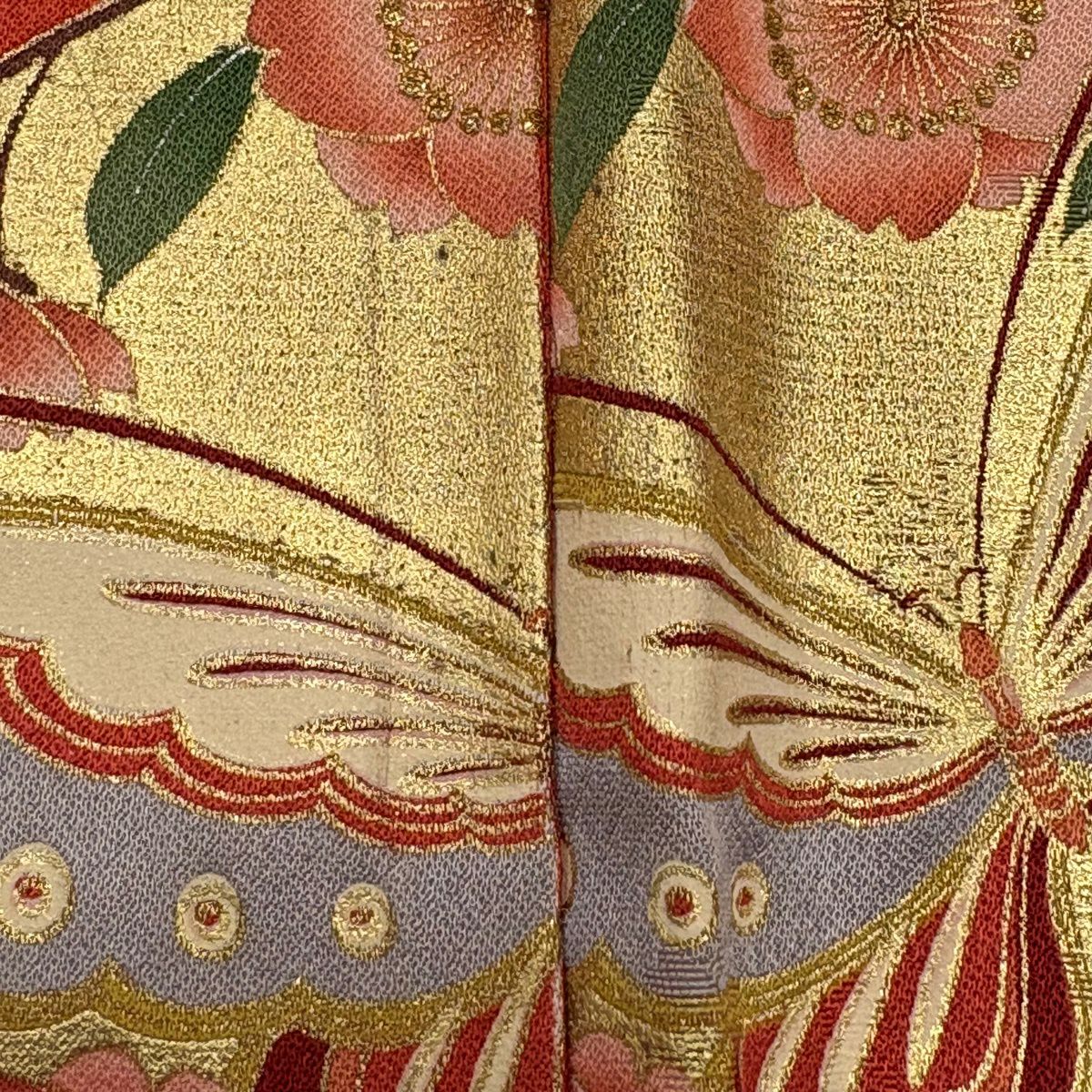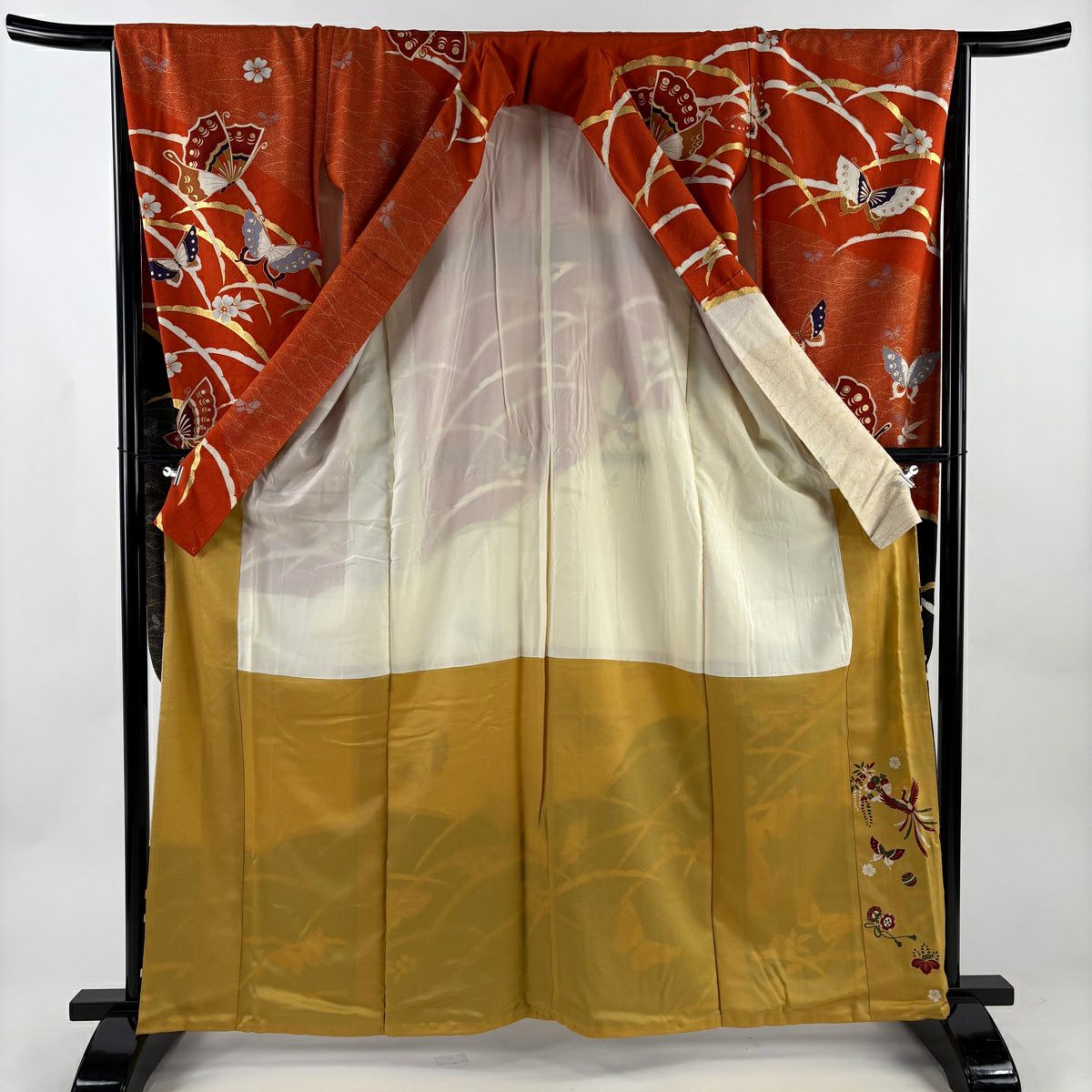 50%OFF 振袖 身丈160.5cm 裄丈62.5cm S 袷 蝶 桜 金糸 金銀彩 サーモンピンク 正絹 秀品 K50