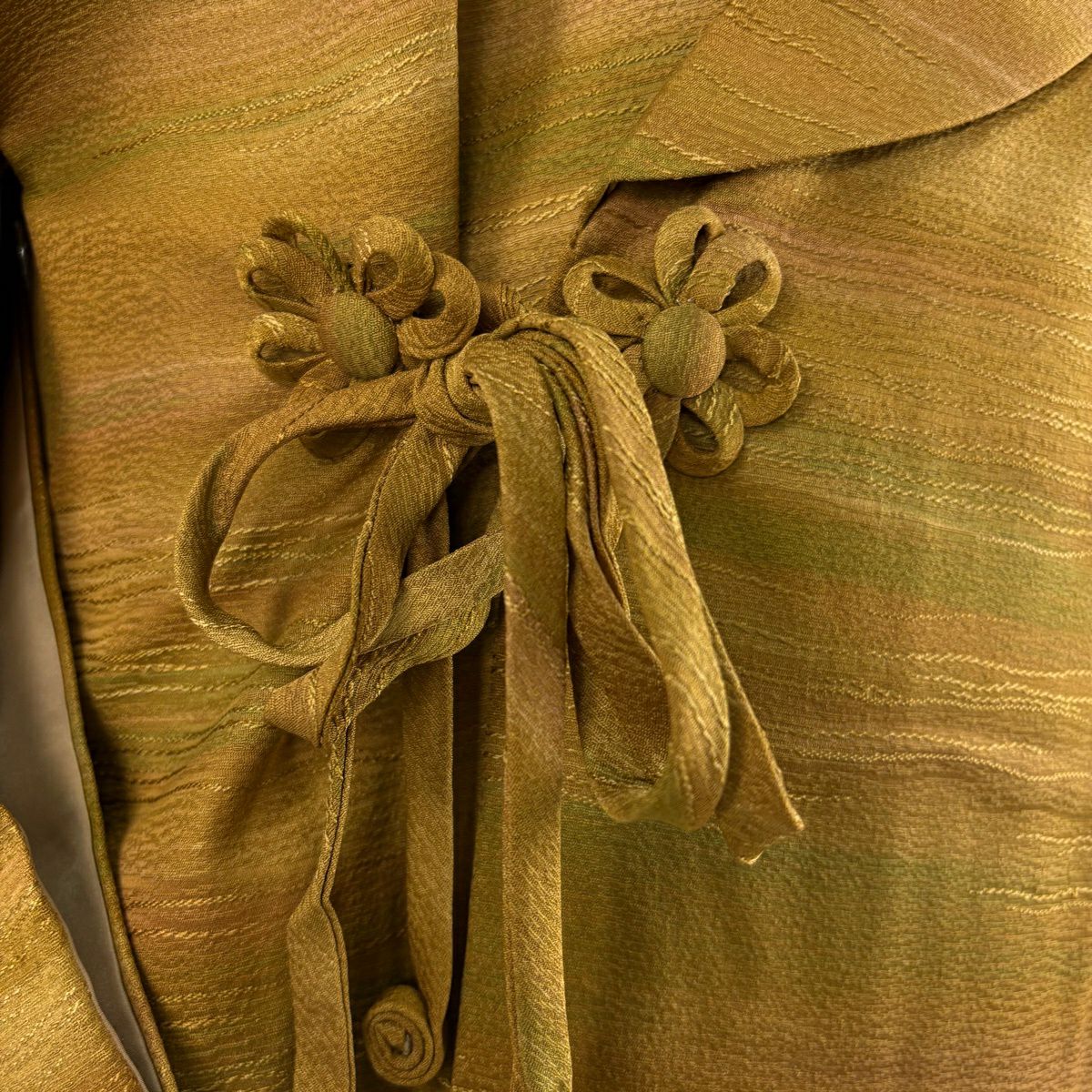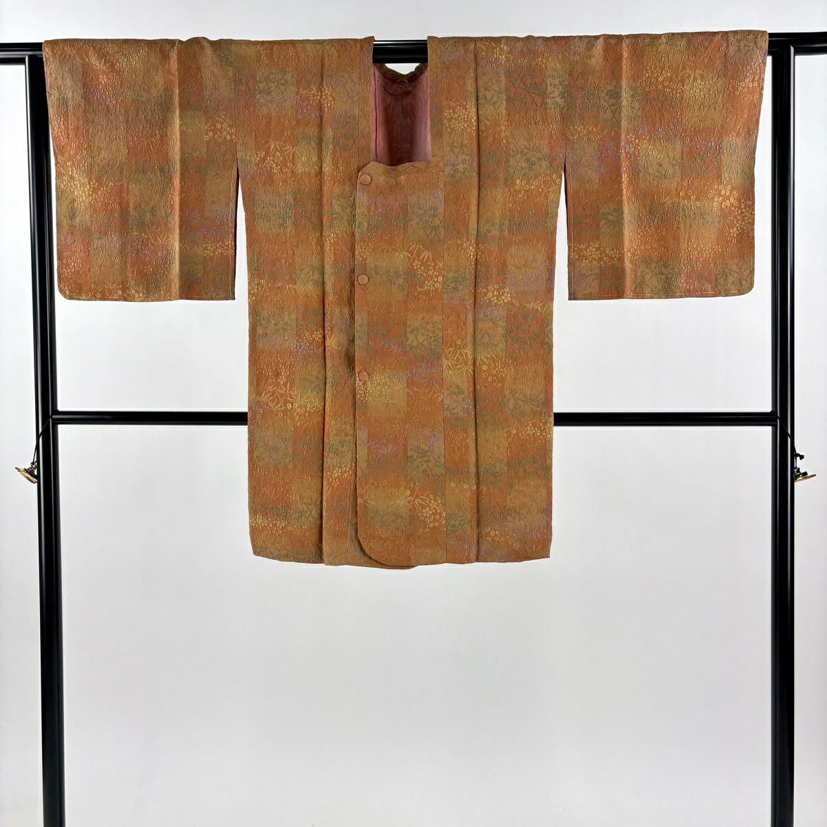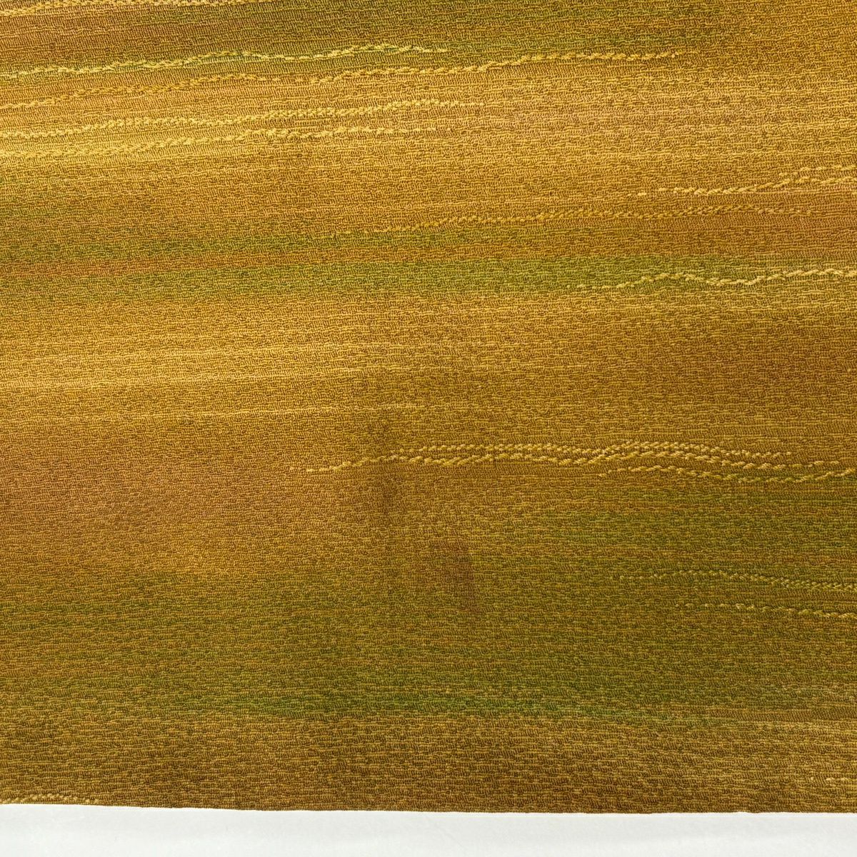 50%OFF 道中着 身丈100cm 裄丈64cm M 和装コート へちま衿 横縞 ぼかし 黄土色 正絹 秀品 K50