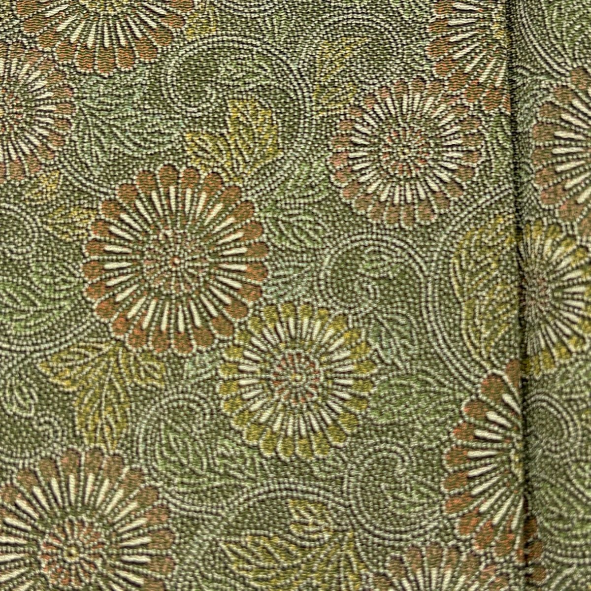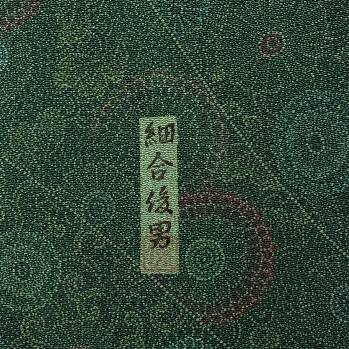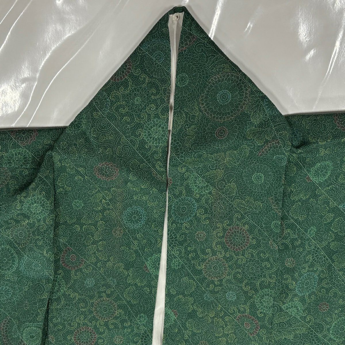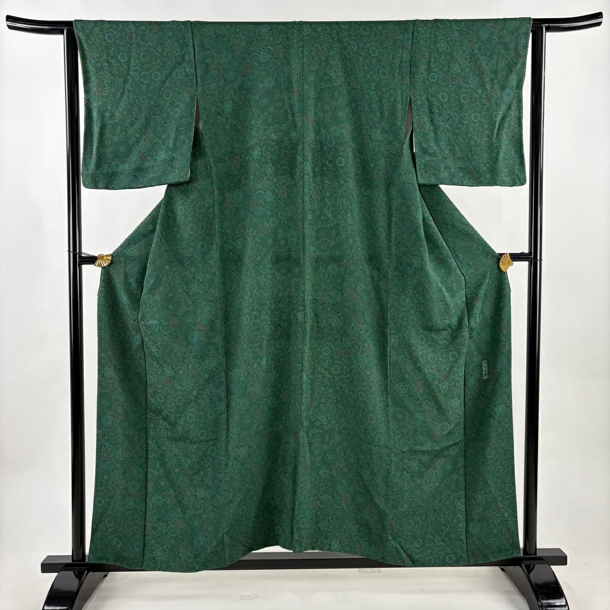 50%OFF 江戸小紋 身丈157cm 裄丈63cm S 袷 細合俊男 落款あり 菊唐草 縮緬 緑 正絹 秀品 K50