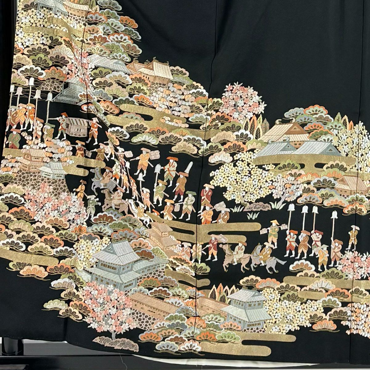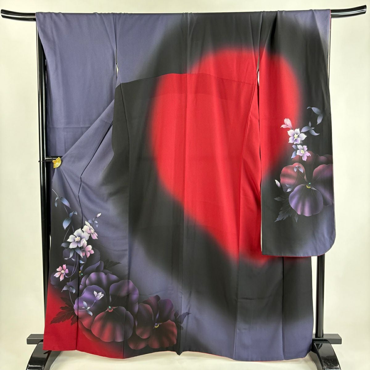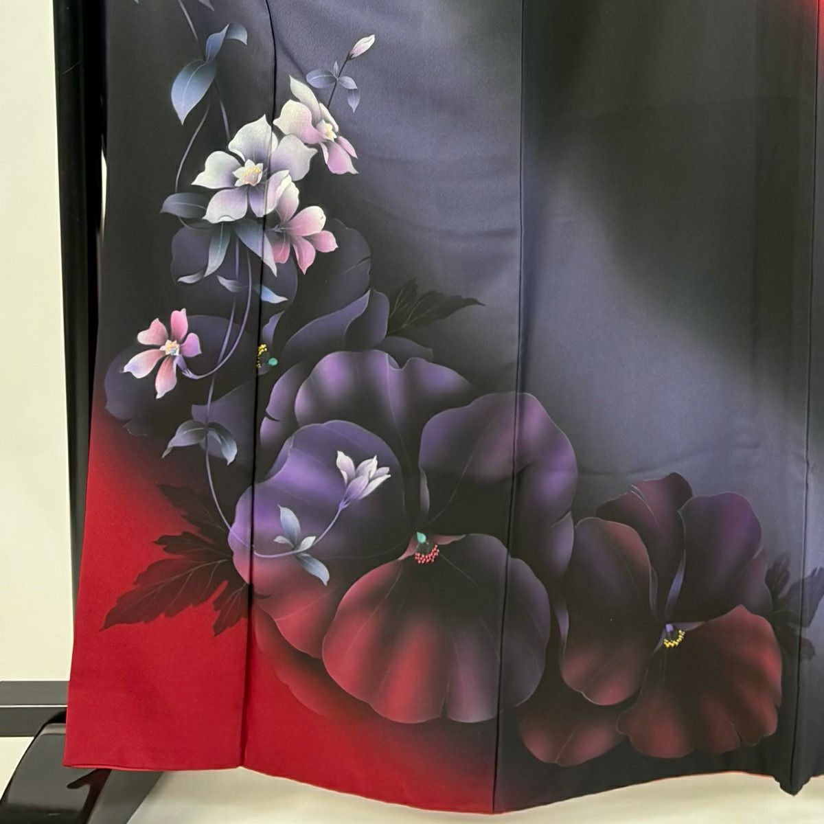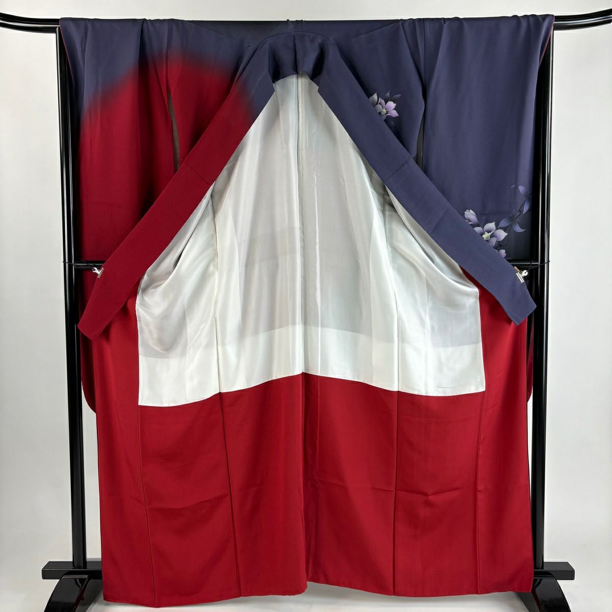 50%OFF 【美品】 振袖 身丈162.5cm 裄丈65cm M 袷 蝶 雪芝 金彩 染め分け 黒 正絹 秀品 K50