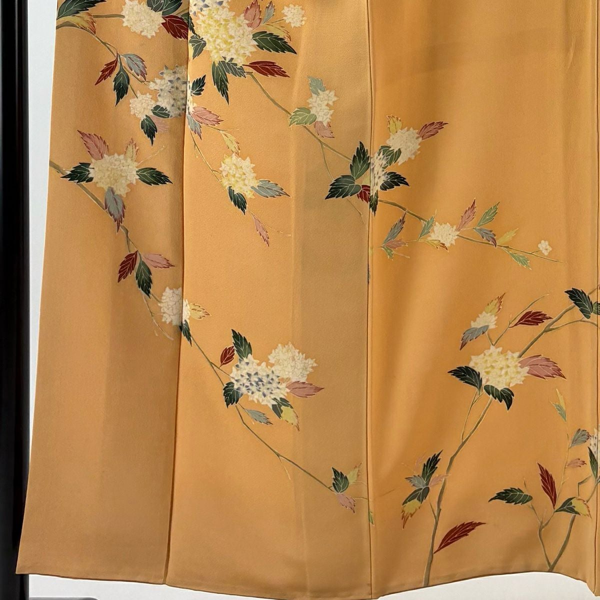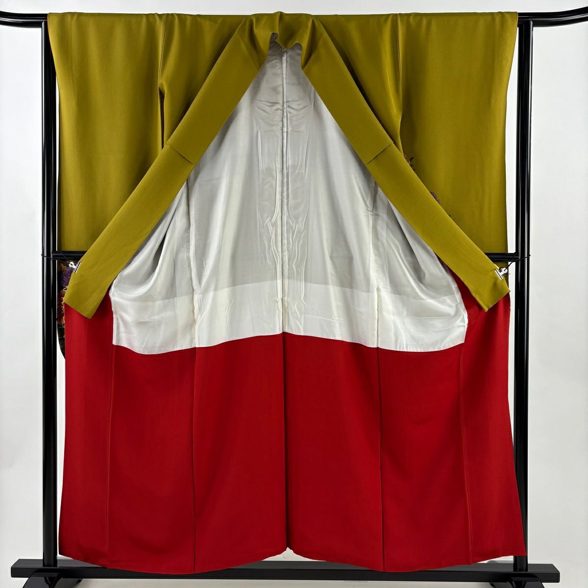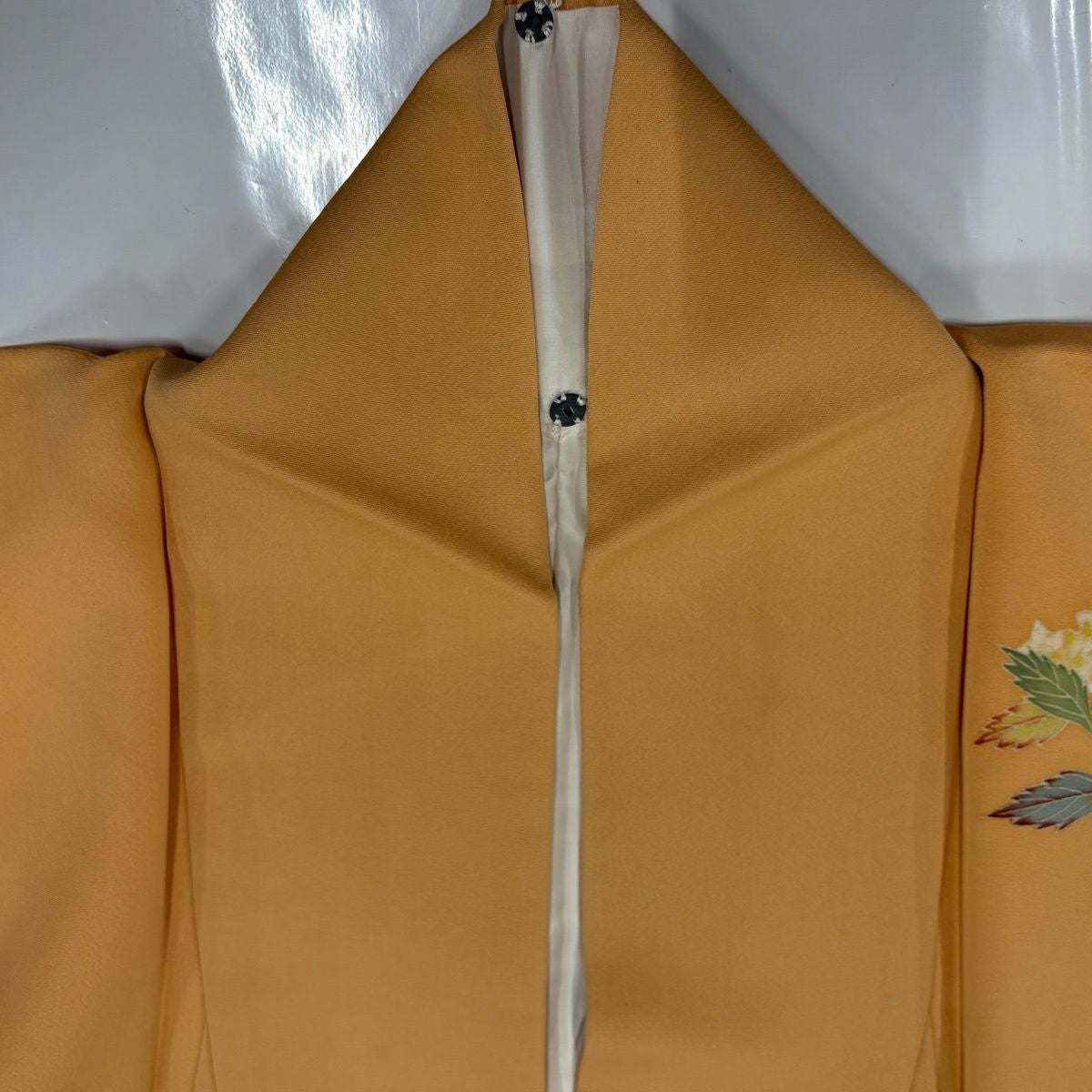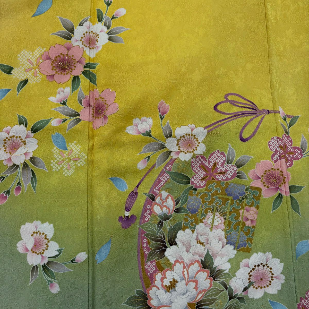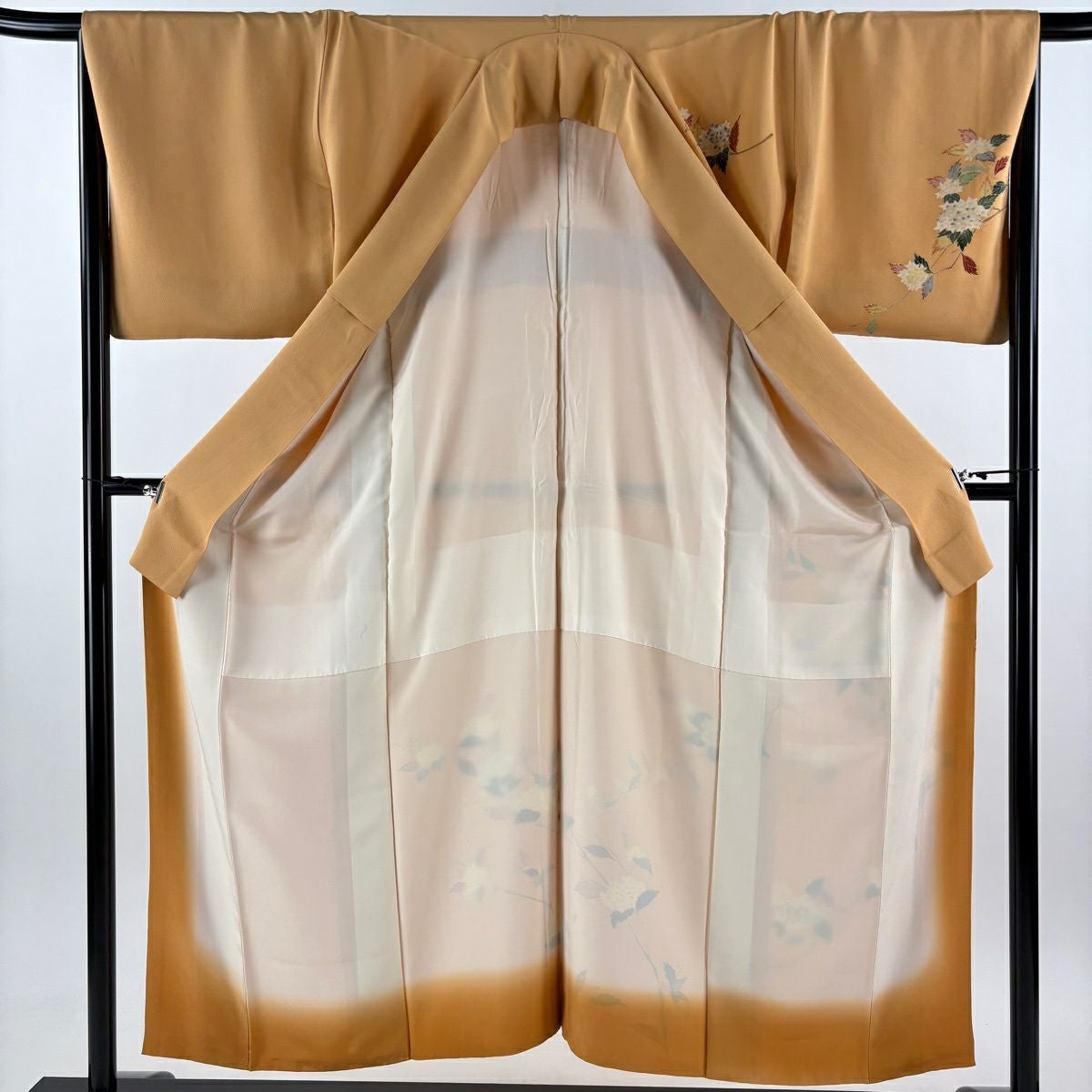 50%OFF 振袖 身丈166.5cm 裄丈64cm M 袷 束ね熨斗 牡丹 金彩 ぼかし 山吹色 正絹 秀品 K50
