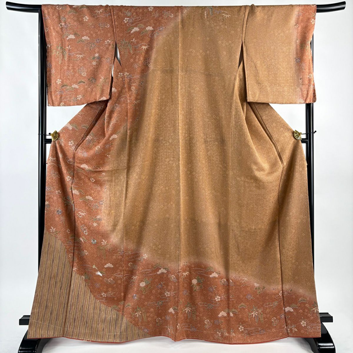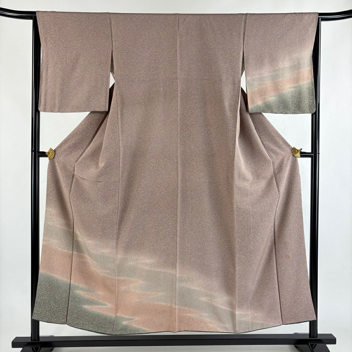 50%OFF 訪問着 身丈155cm 裄丈63.5cm S 袷 辻が花柄 ヱ霞 金彩 ぼかし 薄小豆 正絹 秀品 K50
