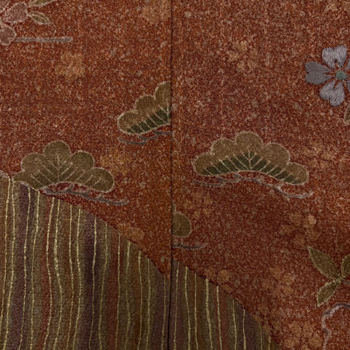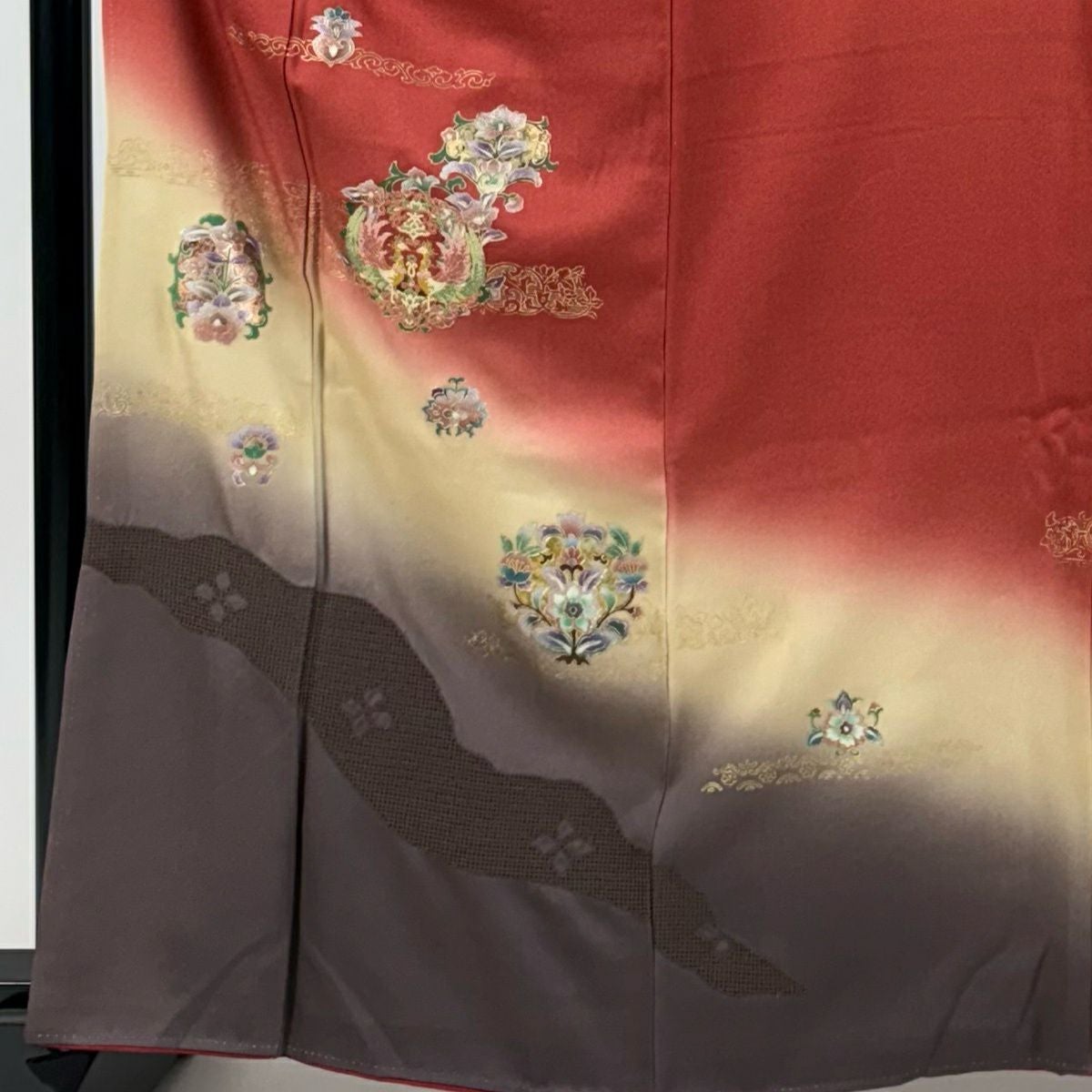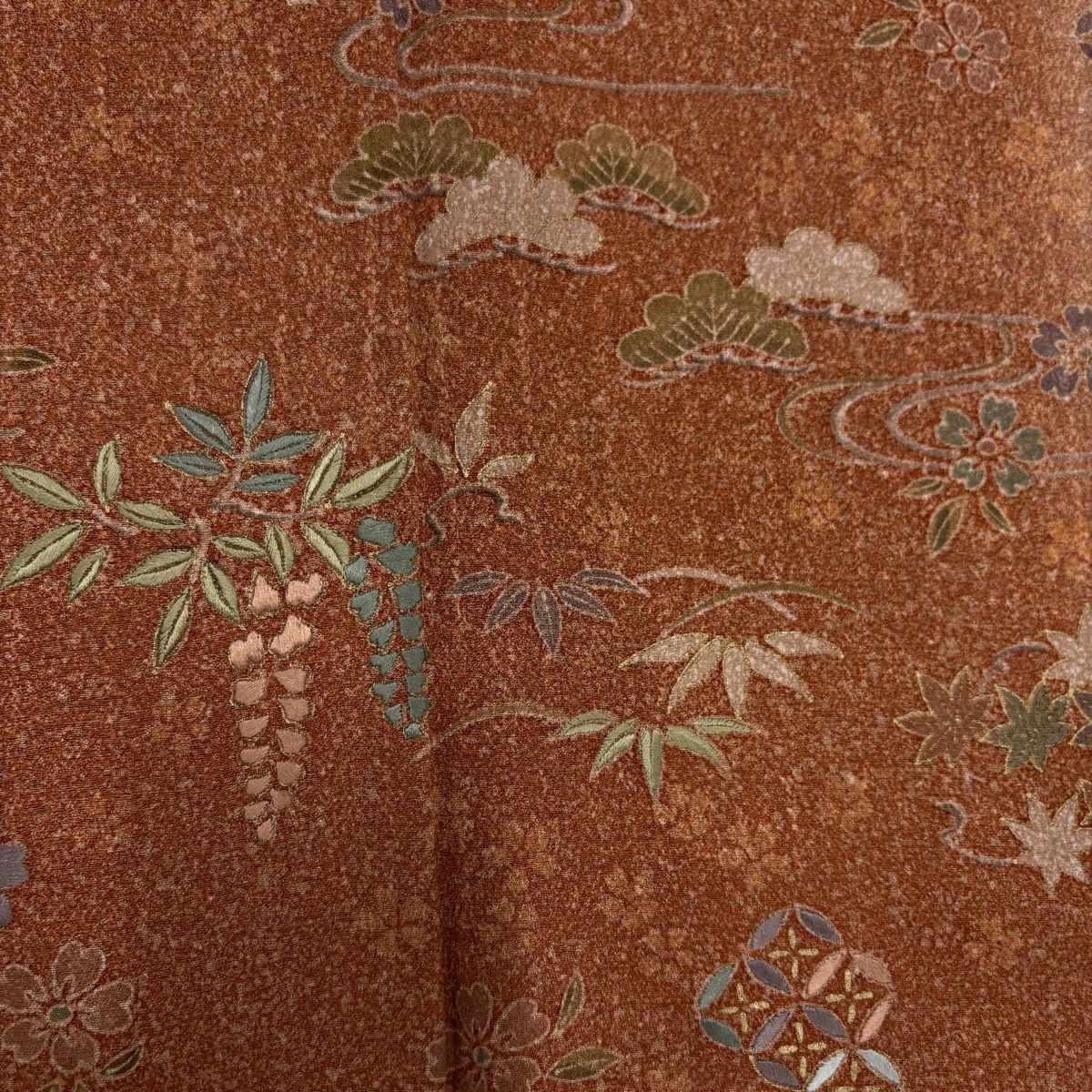 50%OFF 【美品】 訪問着 身丈168.5cm 裄丈68cm L 袷 藤 桜 刺繍 金糸 赤茶 正絹 秀品 K50