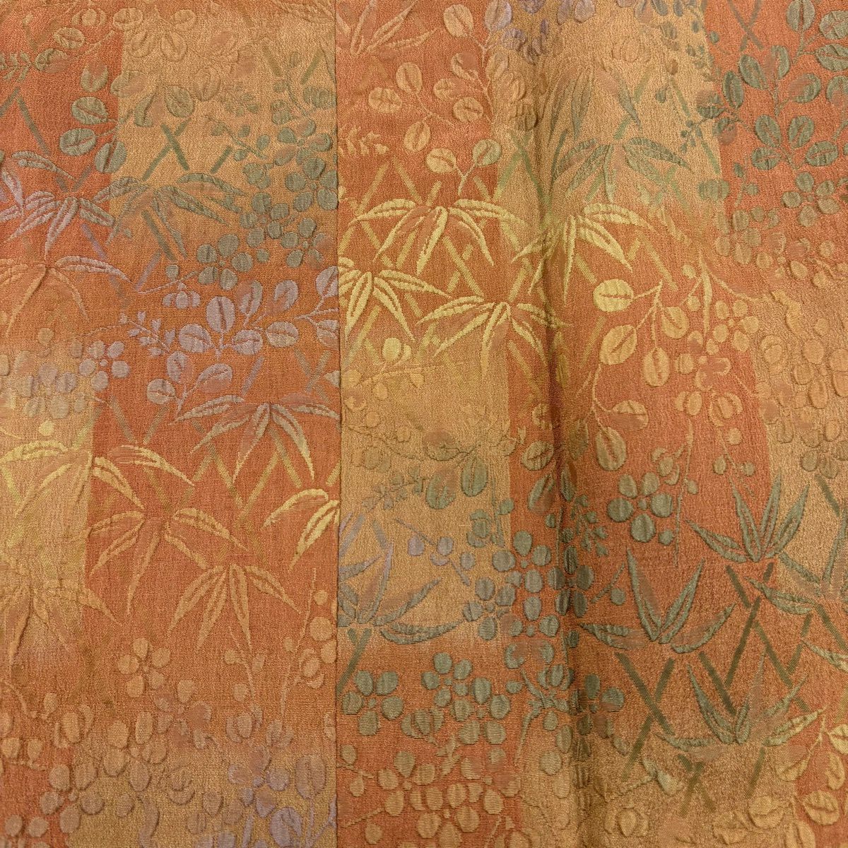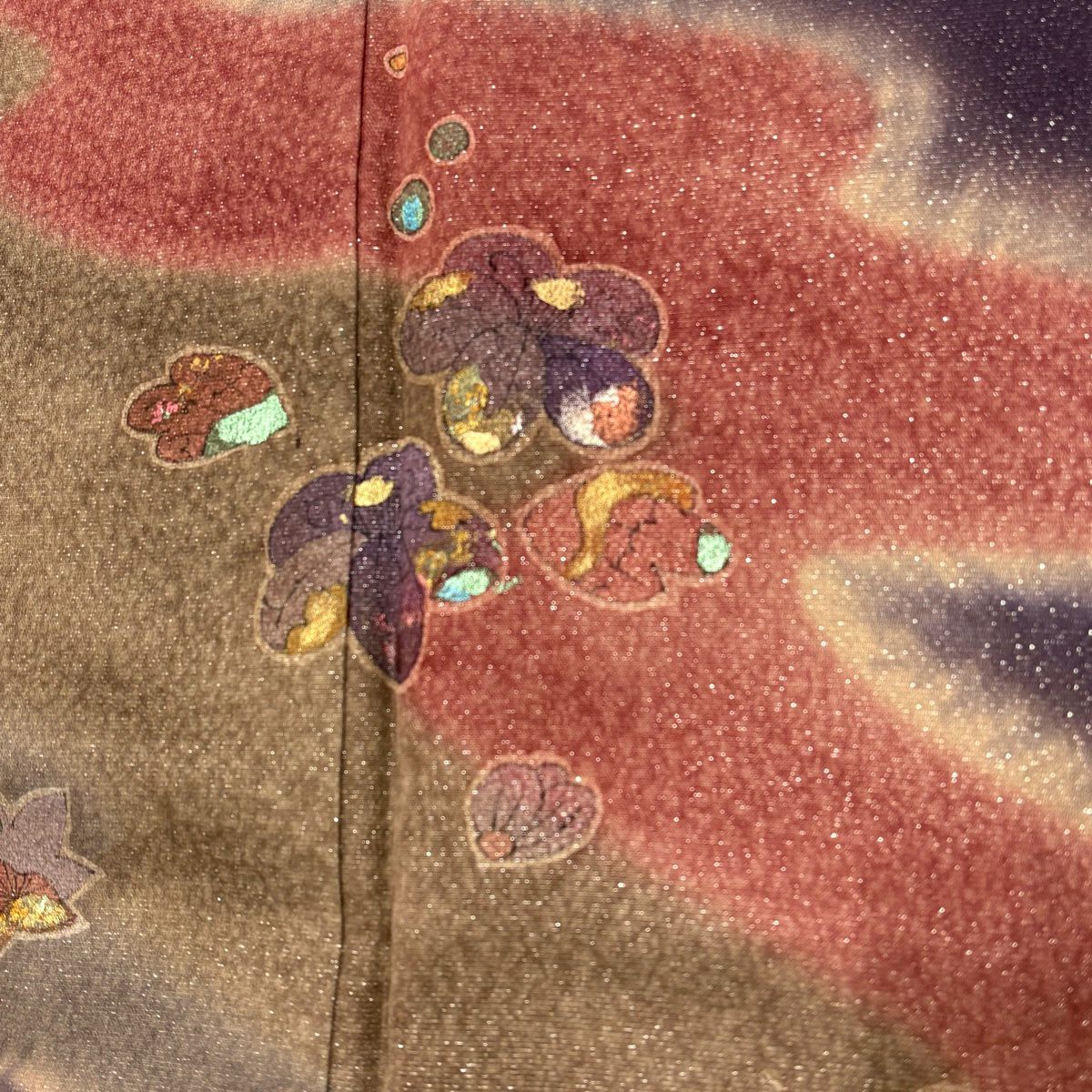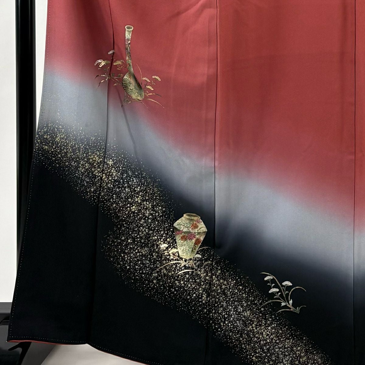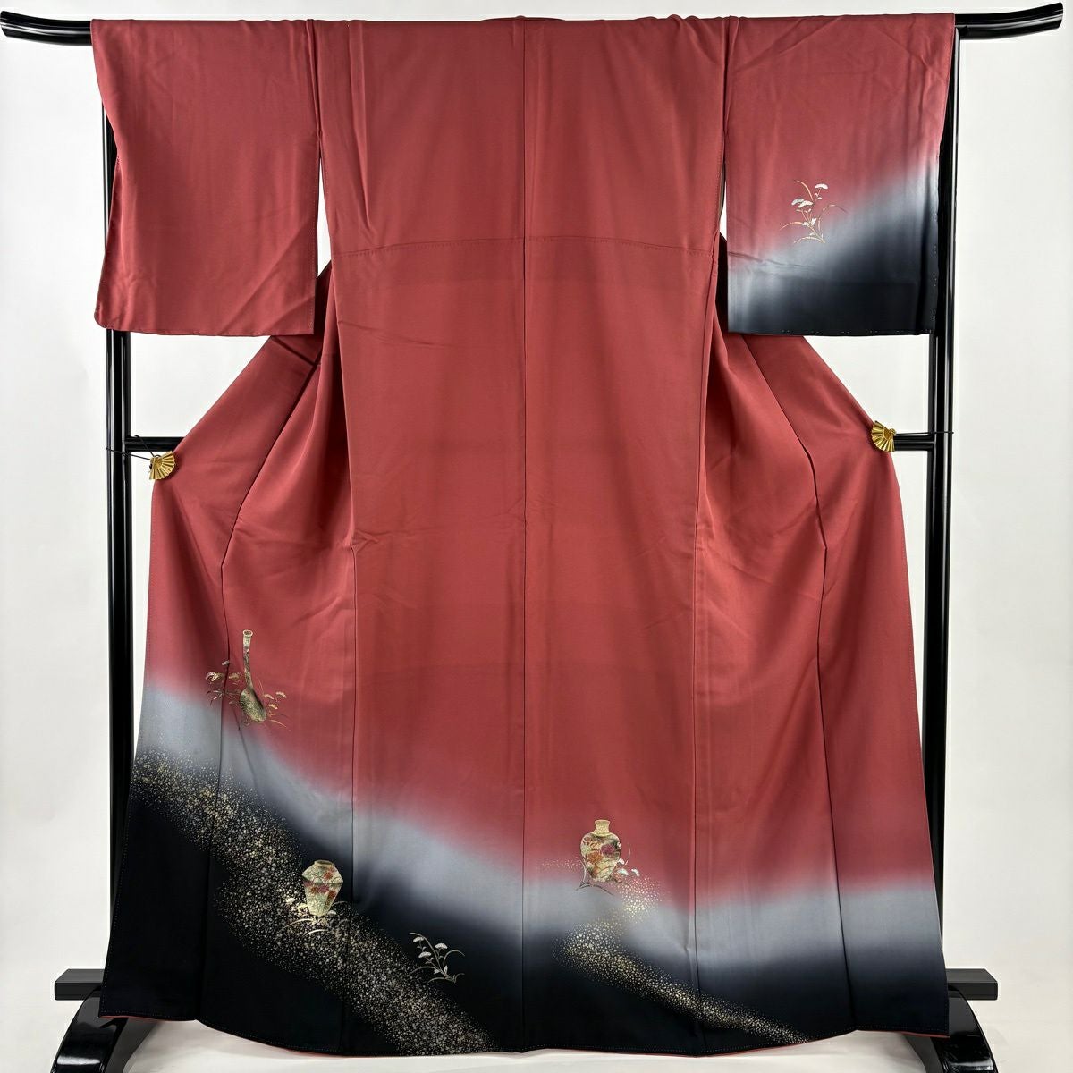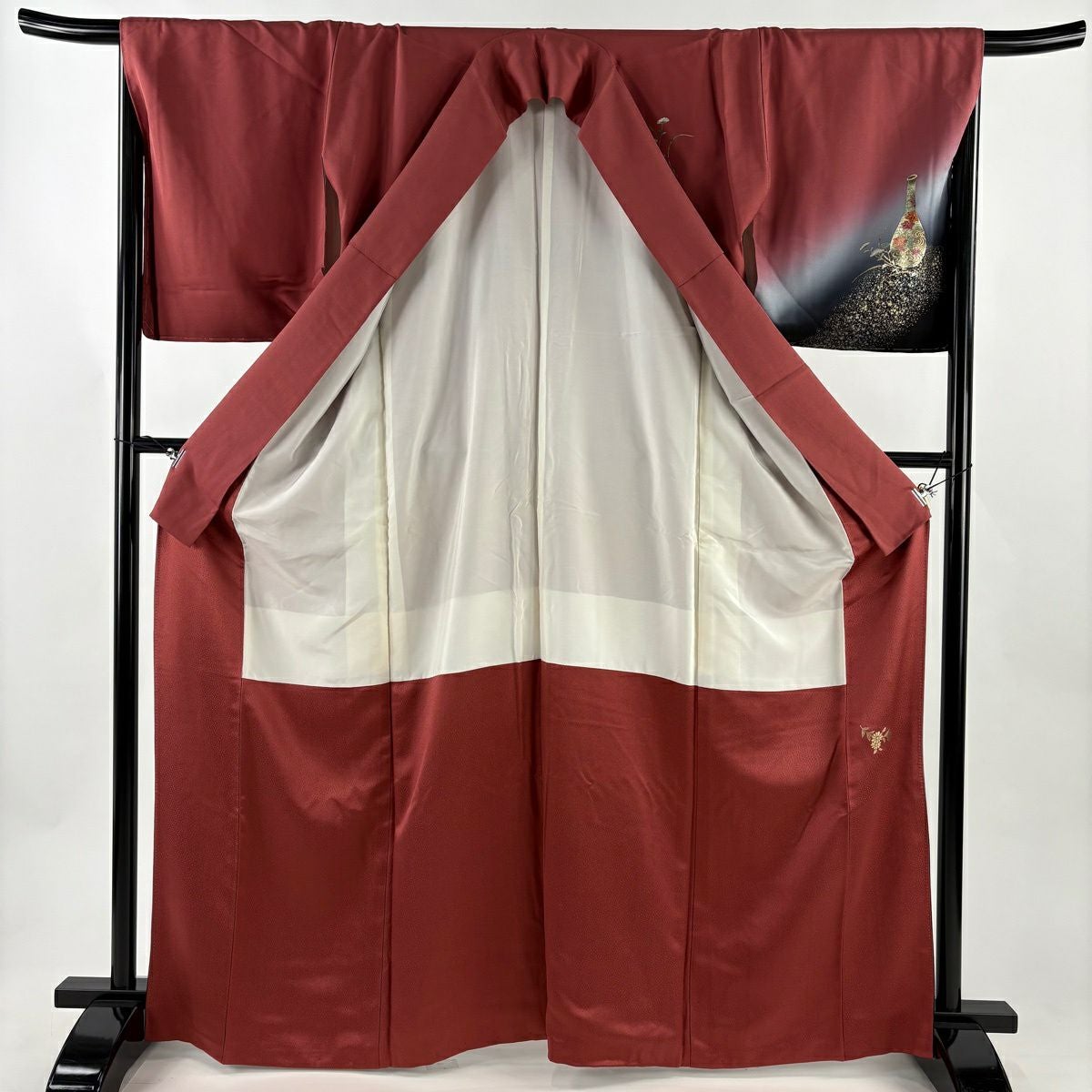50%OFF 付下げ 身丈166cm 裄丈67.5cm L 袷 器物 女郎花 金銀彩 ぼかし 茜色 正絹 秀品 K50