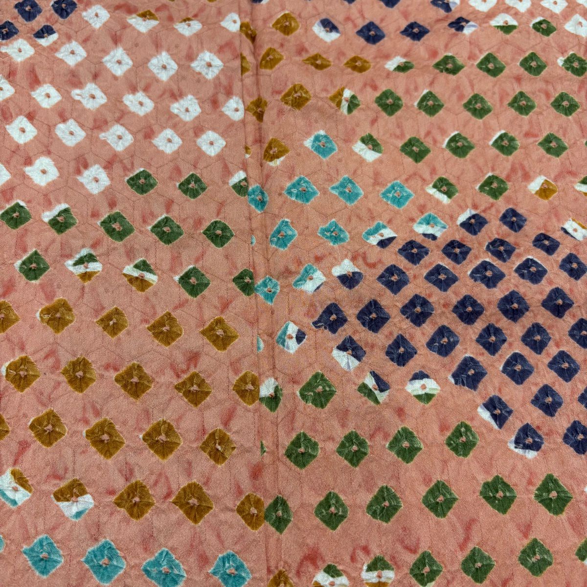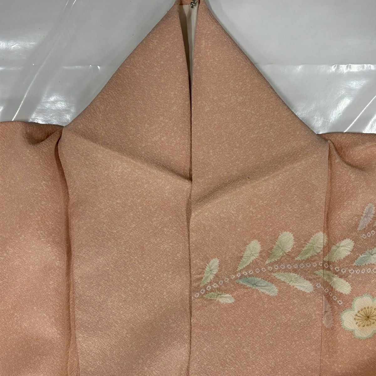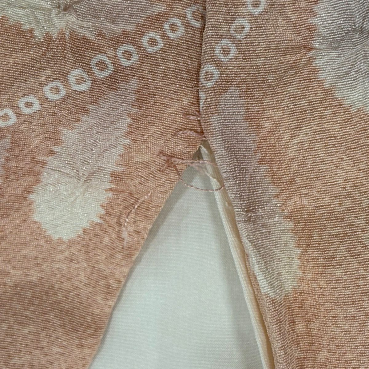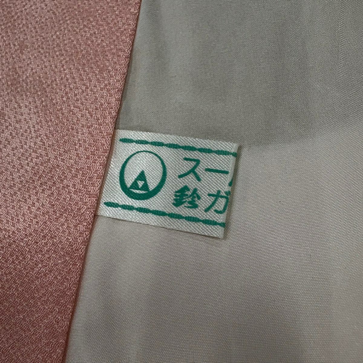 50%OFF 【美品】 小紋 身丈168cm 裄丈66cm M 袷 幾何学 絞り サーモンピンク 正絹 秀品 K50