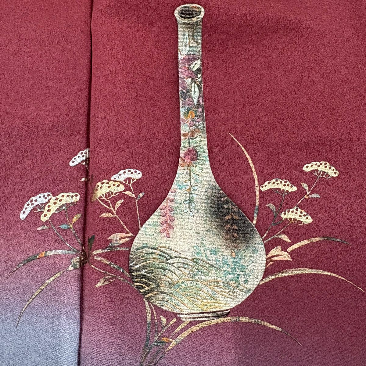 50%OFF 付下げ 身丈177cm 裄丈68cm 未仕立て 仮絵羽 秋草 雲文 ぼかし えんじ色 正絹 秀品 K50