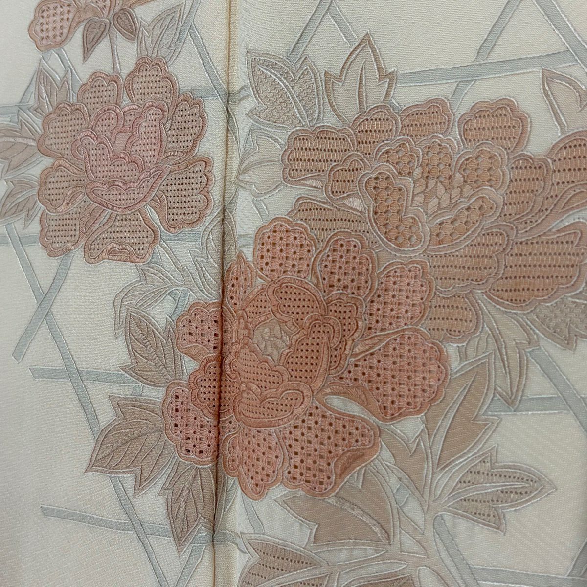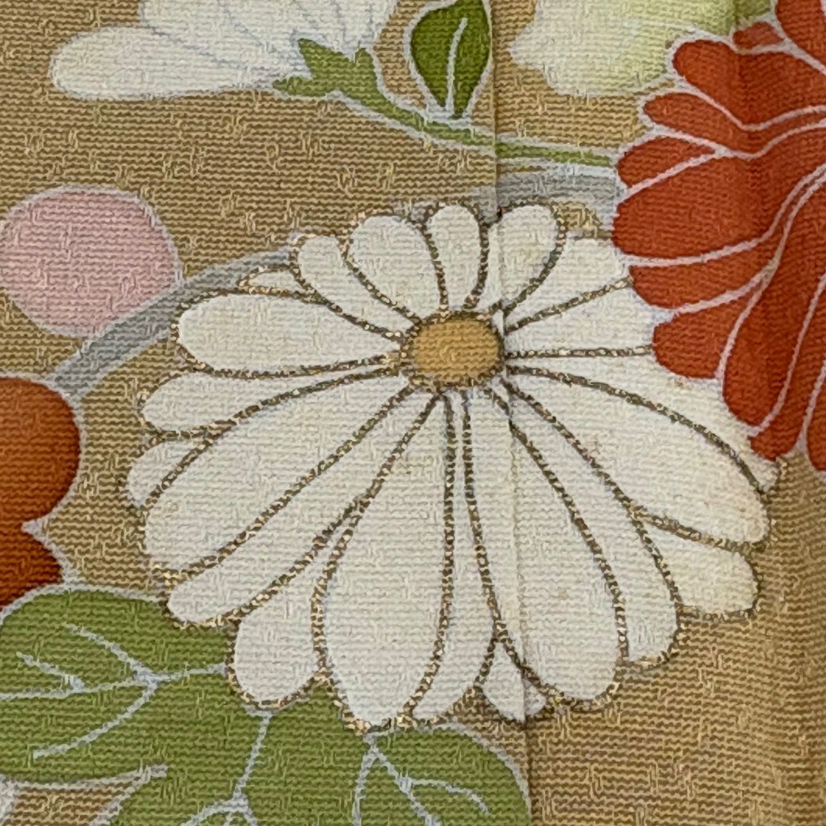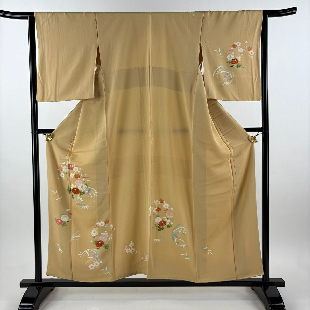 30%OFF 付下げ 身丈157cm 裄丈63.5cm S 袷 花丸文 菊 金糸 金彩 ベージュ 正絹 秀品 K30