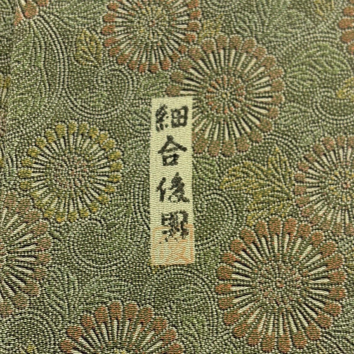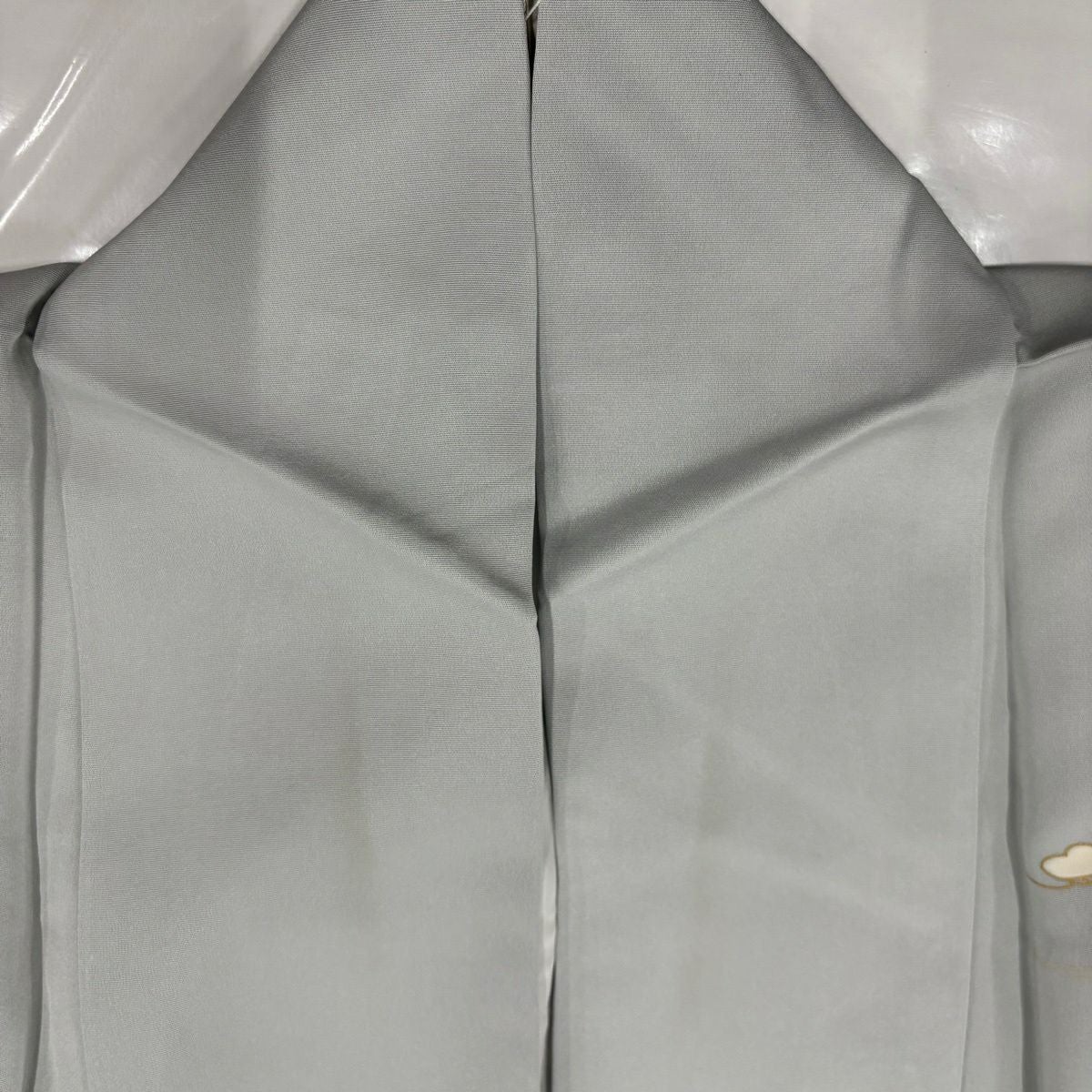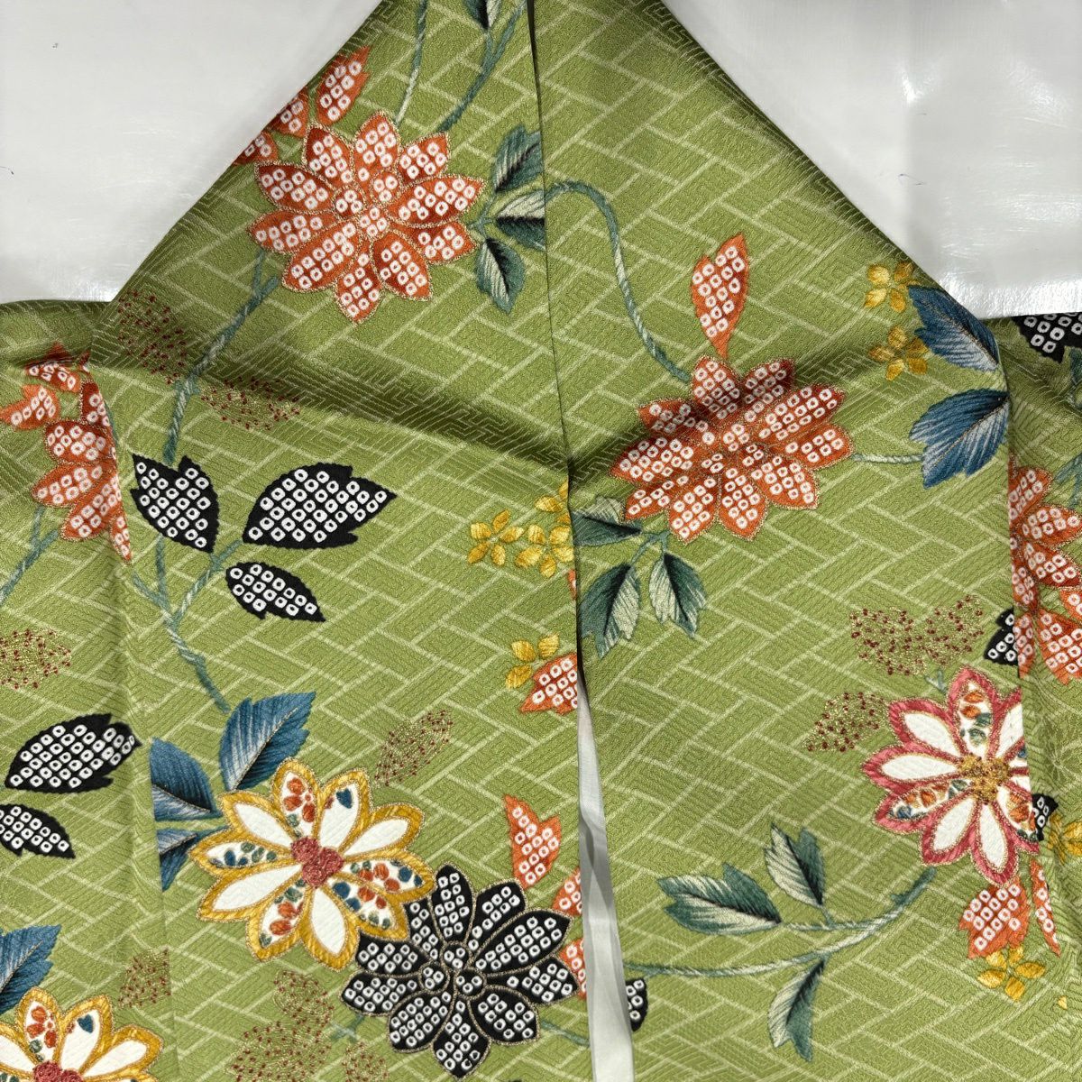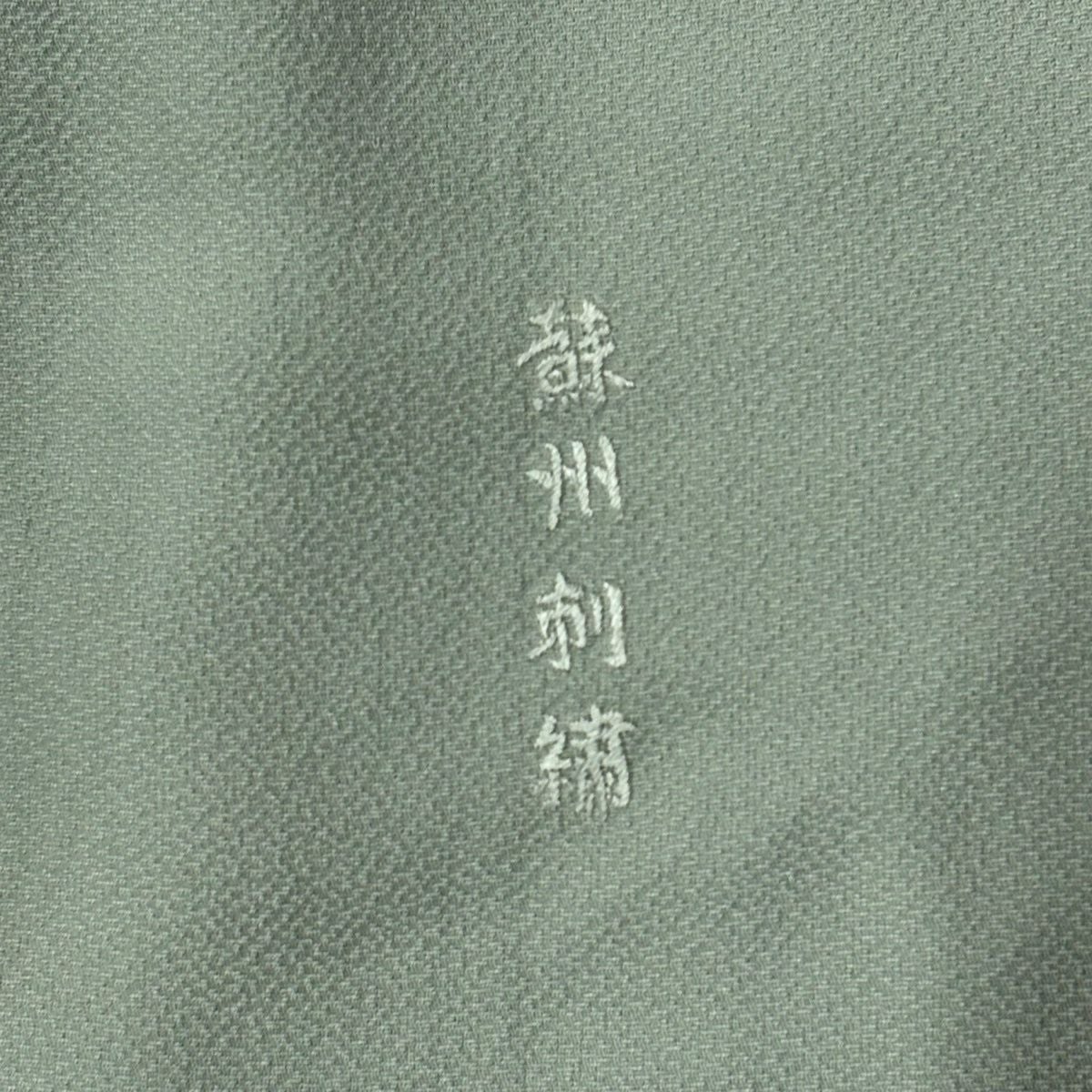 50%OFF 訪問着 身丈162.5cm 裄丈66cm M 袷 菊 短冊 刺繍 絞り 灰緑 正絹 秀品 一つ紋 K50