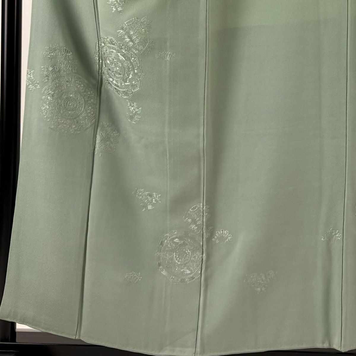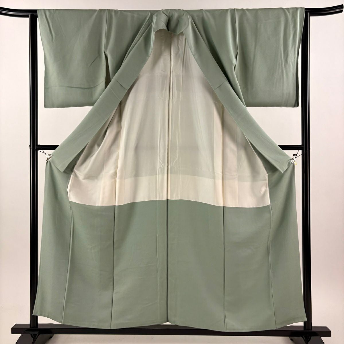 50%OFF 【美品】 付下げ 身丈160.5cm 裄丈64cm M 袷 霞取り 裂取り 金彩 薄緑 正絹 秀品 K50