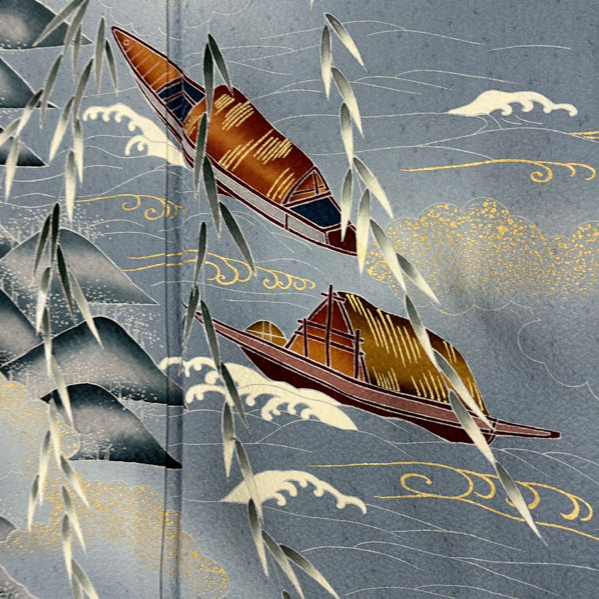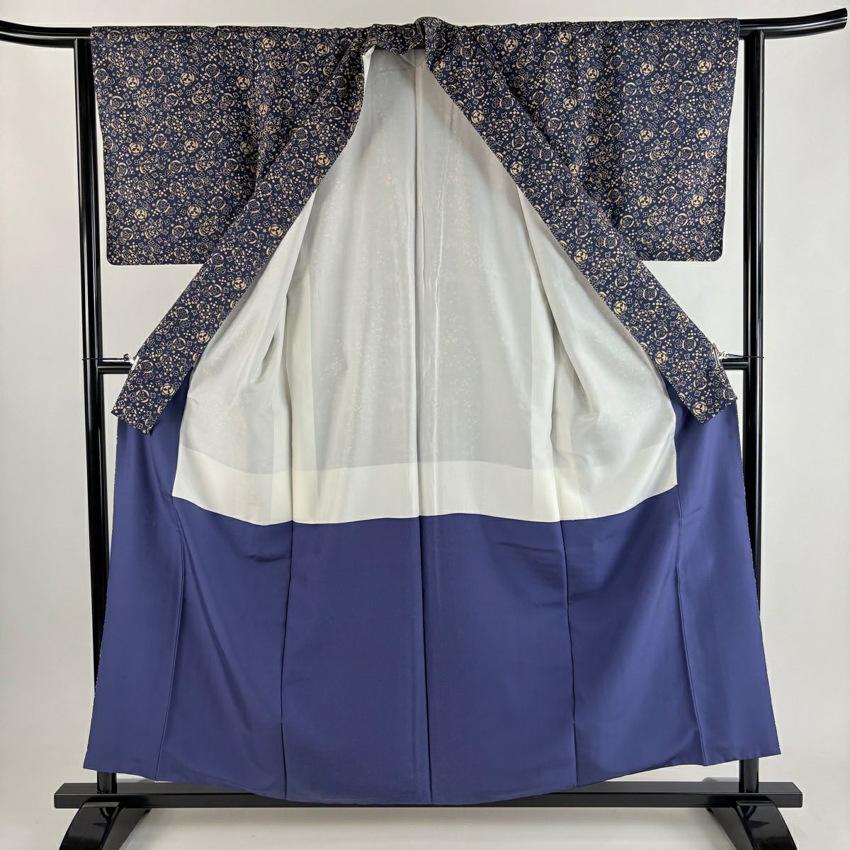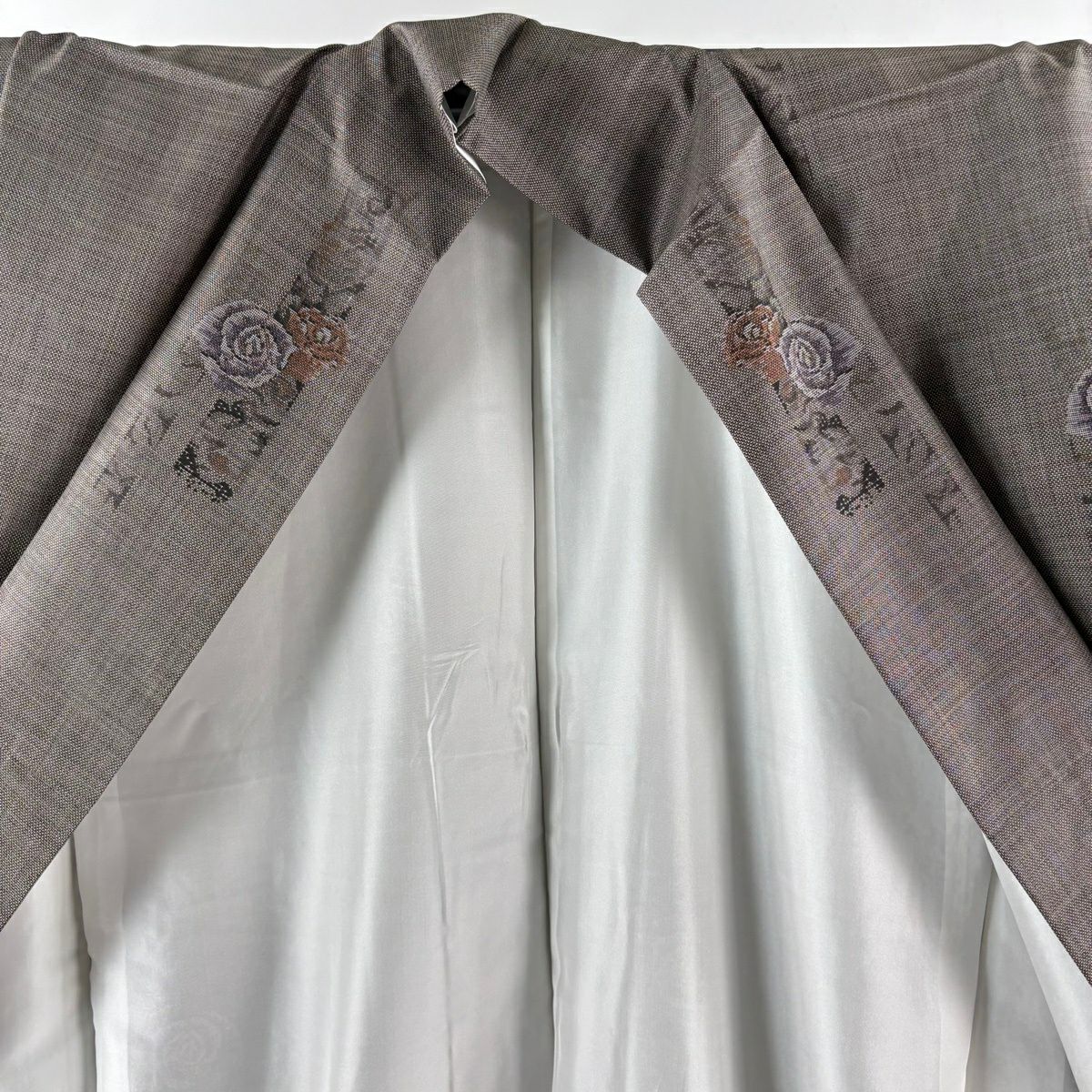 50%OFF 付下げ 身丈156cm 裄丈64.5cm M 袷 向かい鳥 草花 刺繍 金糸 青灰色 正絹 秀品 K50