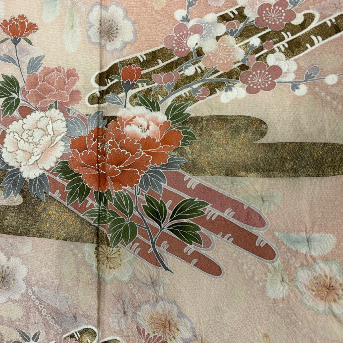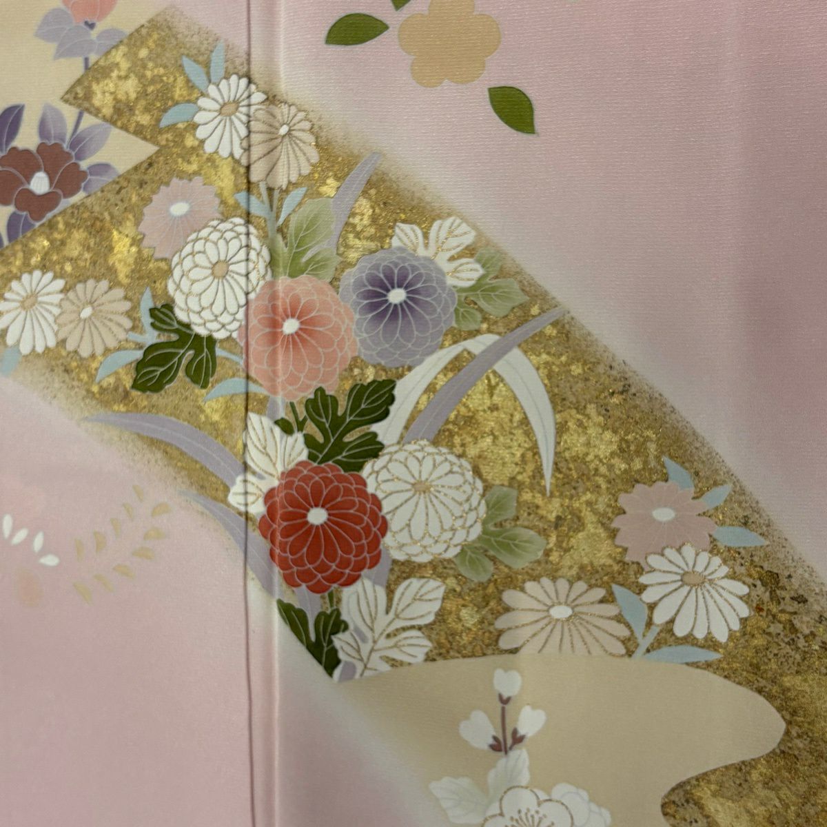 50%OFF 【美品】 振袖 身丈162cm 裄丈67cm M 袷 桜 花びら 箔 金彩 ピンク 正絹 秀品 K50