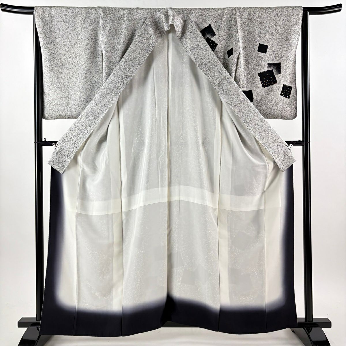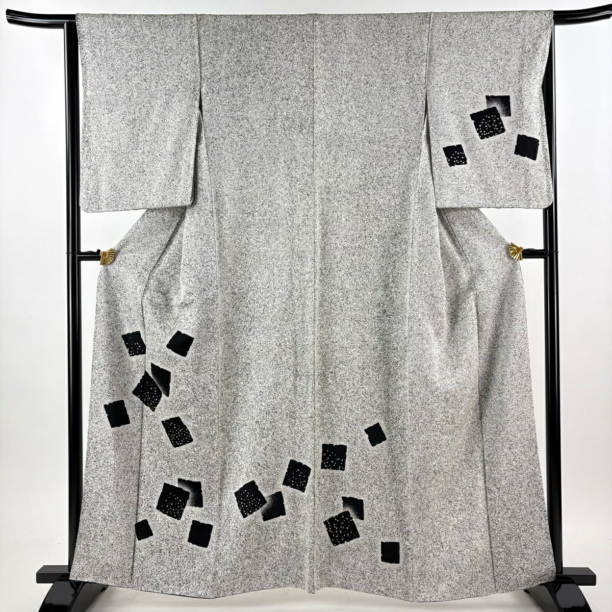 50%OFF 付下げ 身丈153.5cm 裄丈61.5cm S 袷 辻が花柄 霞 絞り 青灰色 正絹 秀品 一つ紋 K50