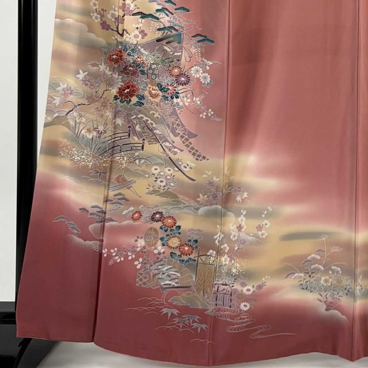 【在庫一掃】 付下げ 身丈169cm 裄丈68cm L 袷 山鉾 松 金銀彩 ぼかし ピンクベージュ 正絹 秀品