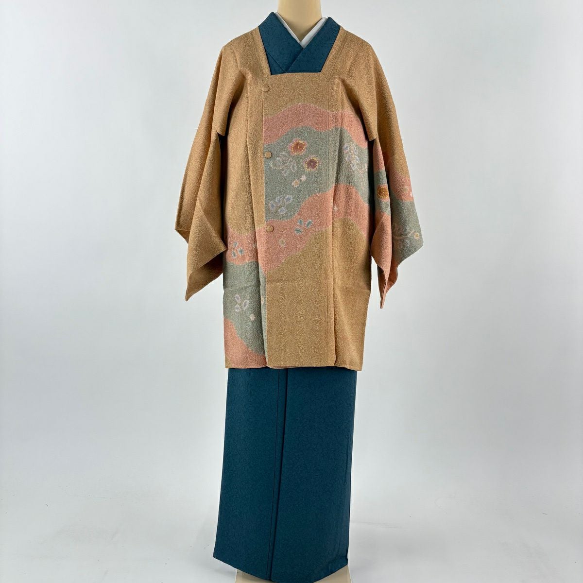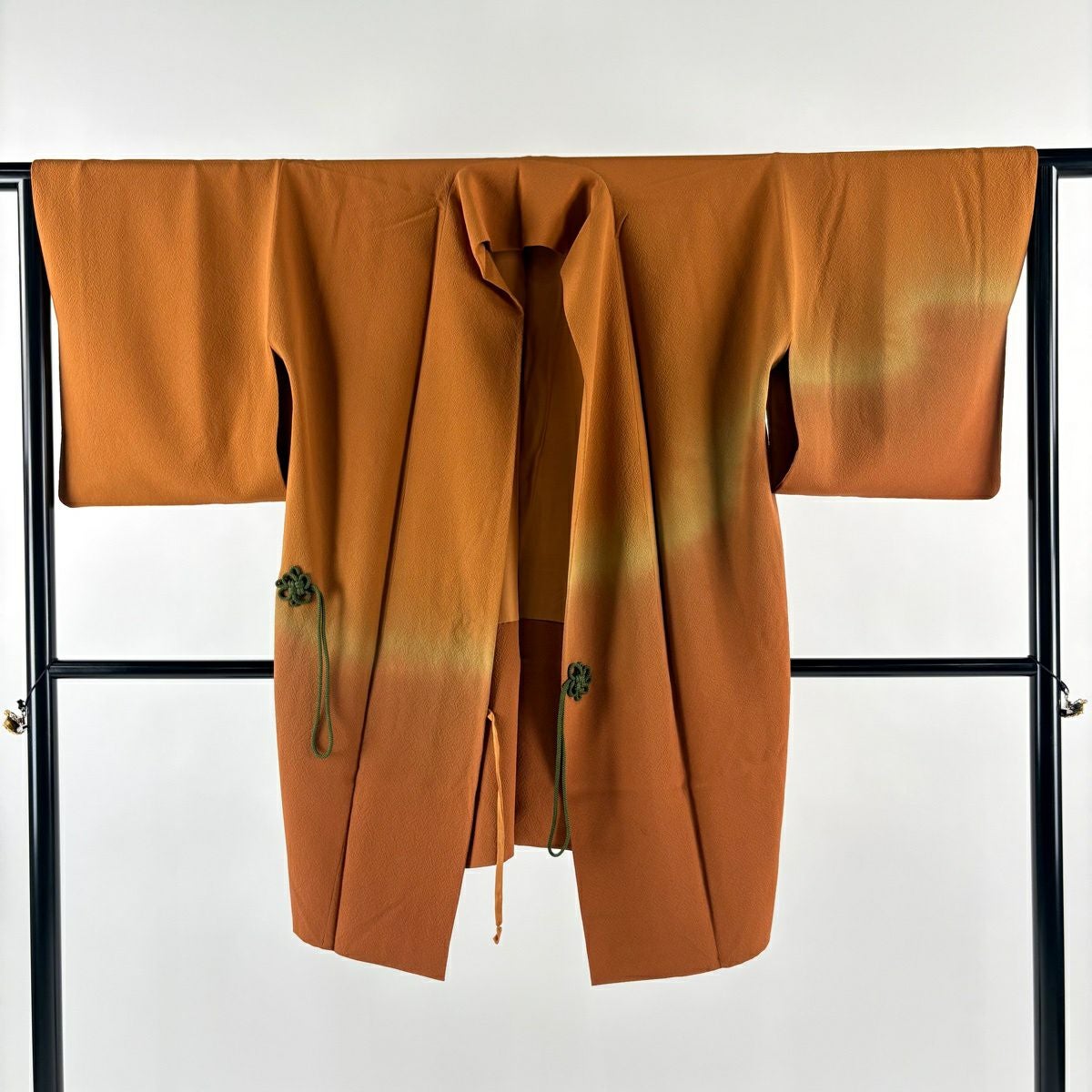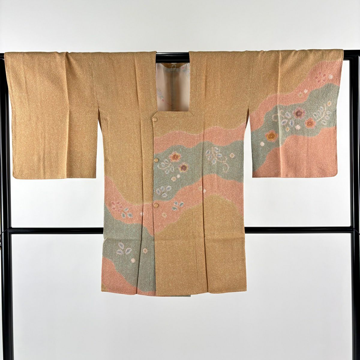 【在庫一掃】 【美品】 道行 身丈82.5cm 裄丈65cm M 和装コート 角衿 草花 刺繍 ぼかし 黄土色 正絹 秀品