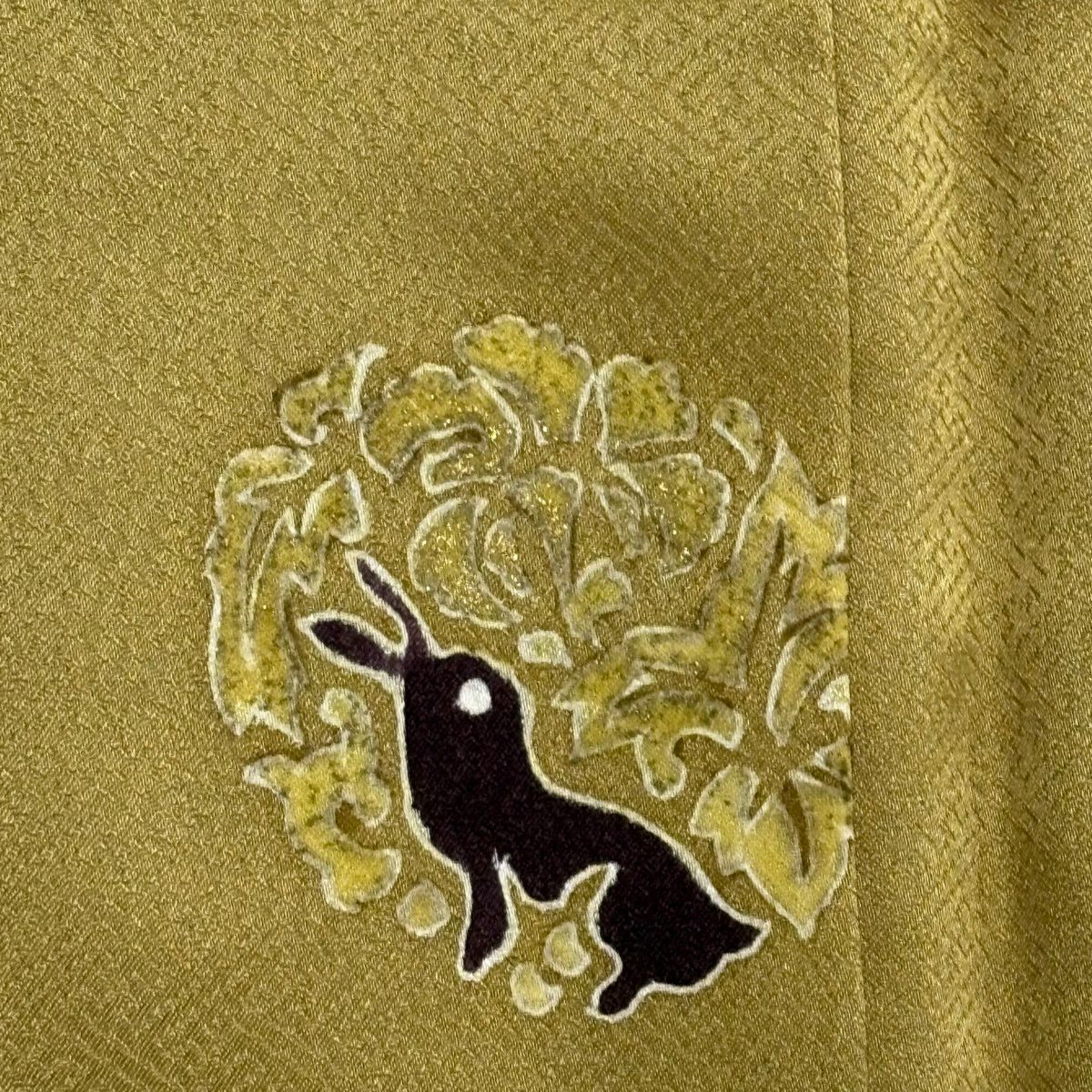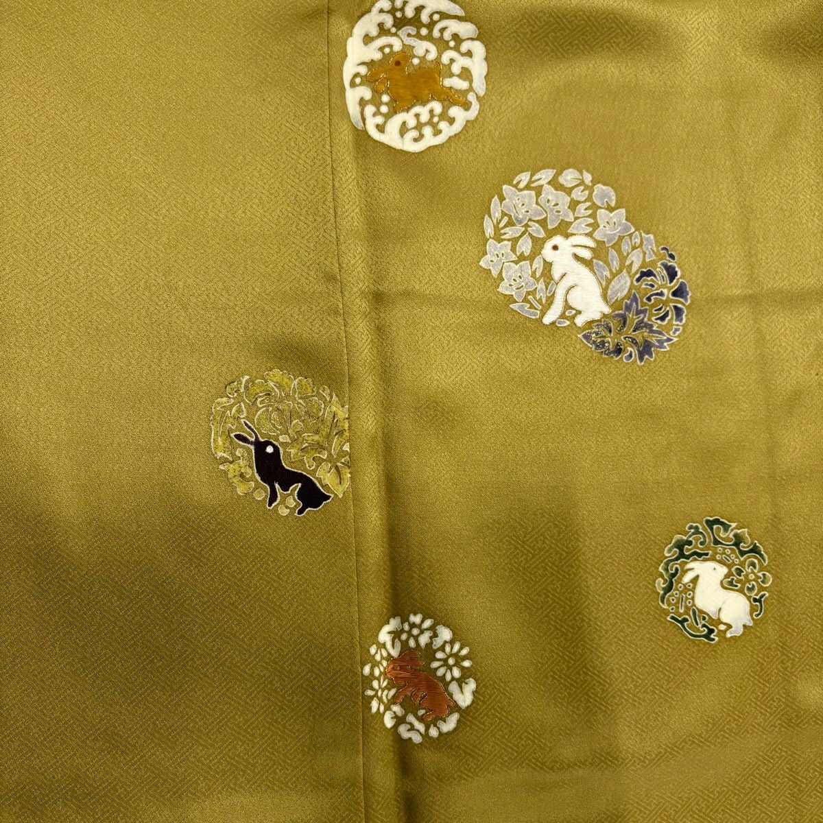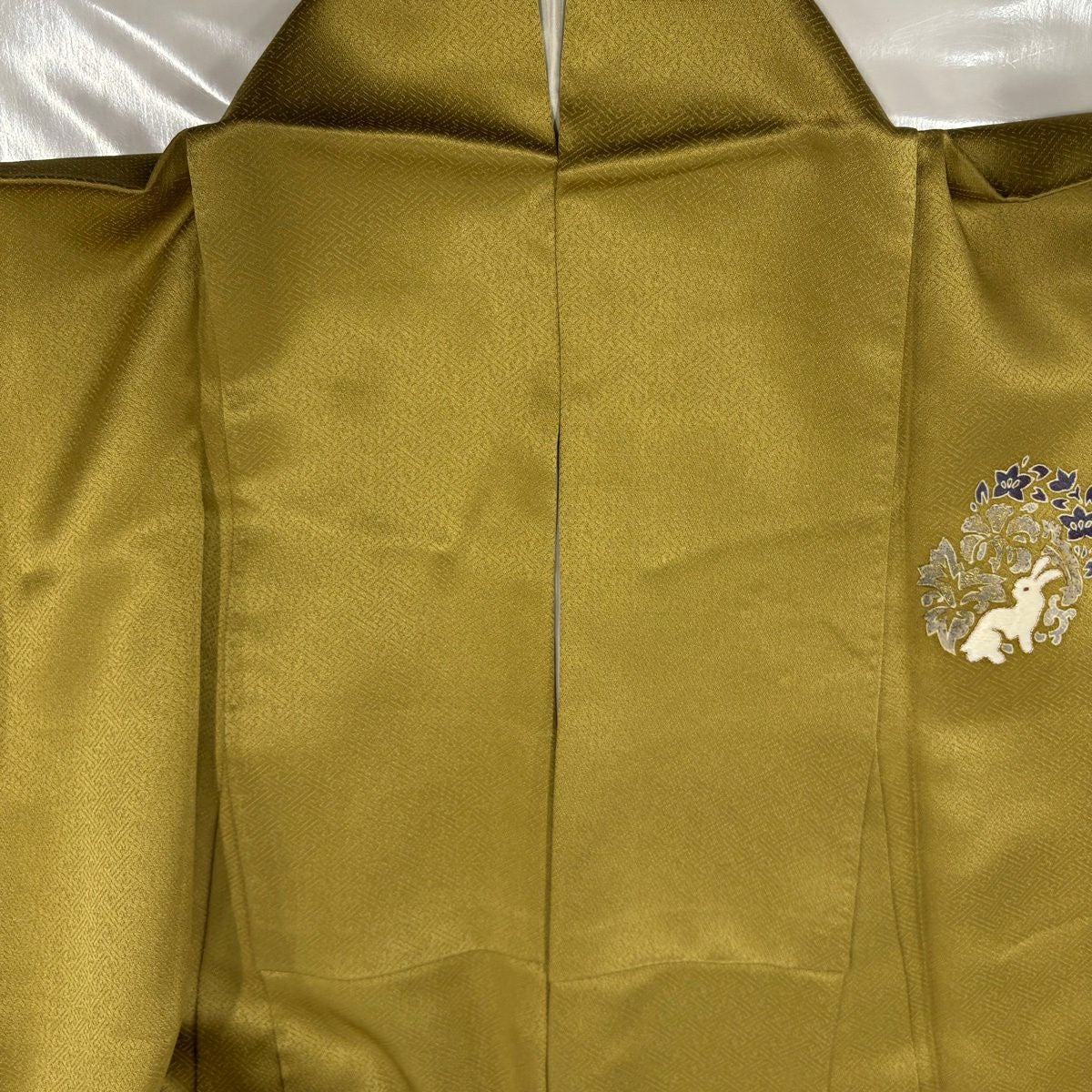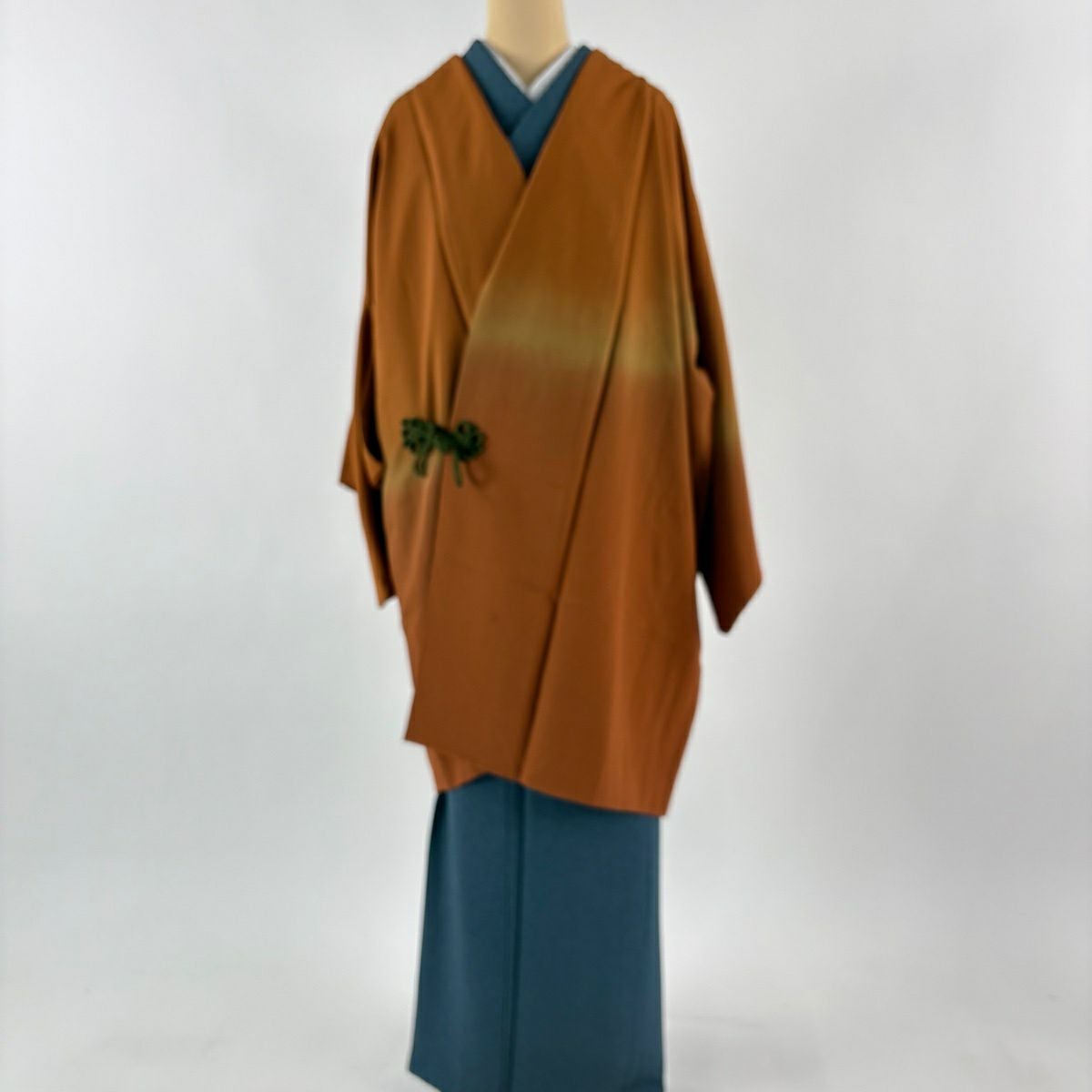 【在庫一掃】 【美品】 道行 身丈82.5cm 裄丈65cm M 和装コート 角衿 草花 刺繍 ぼかし 黄土色 正絹 秀品