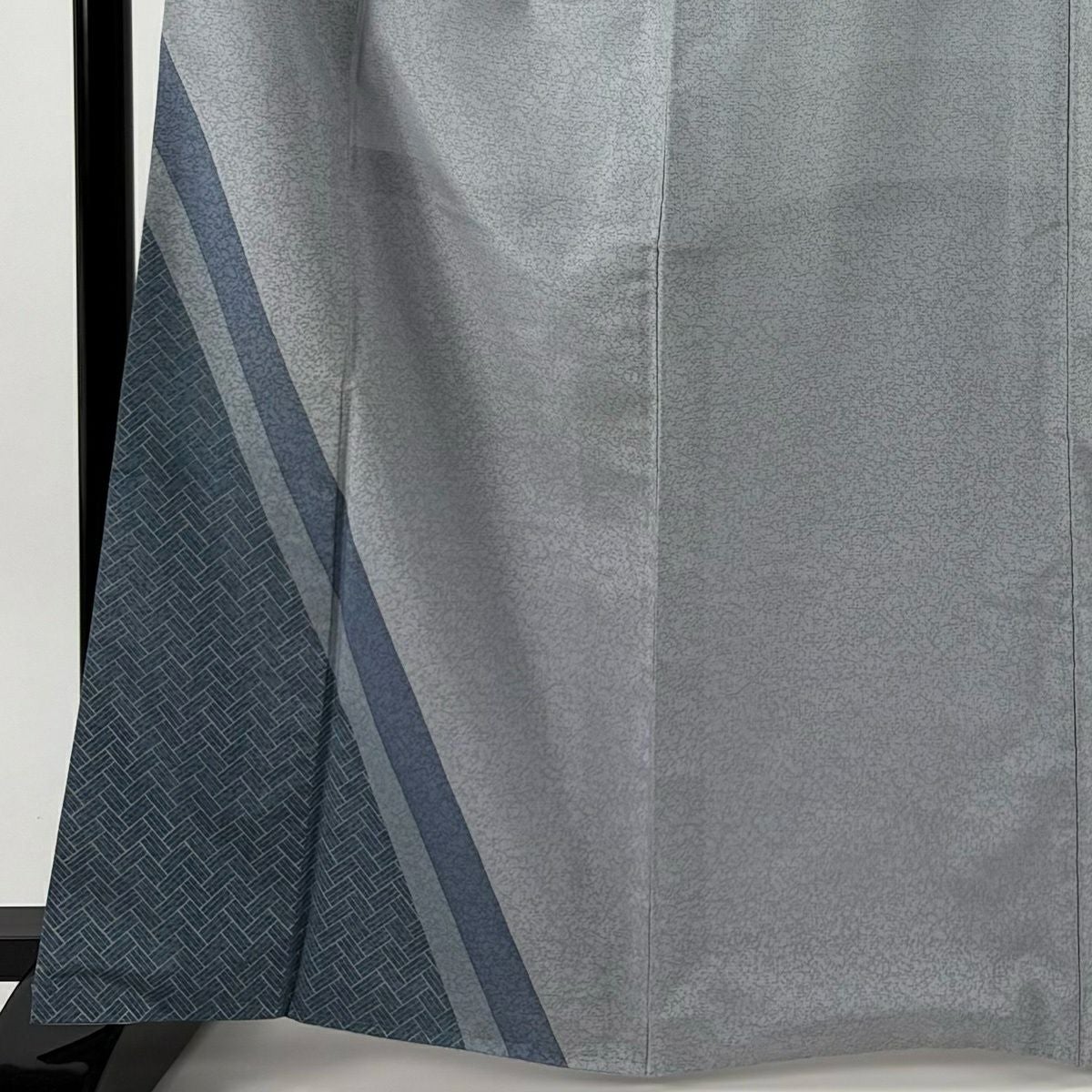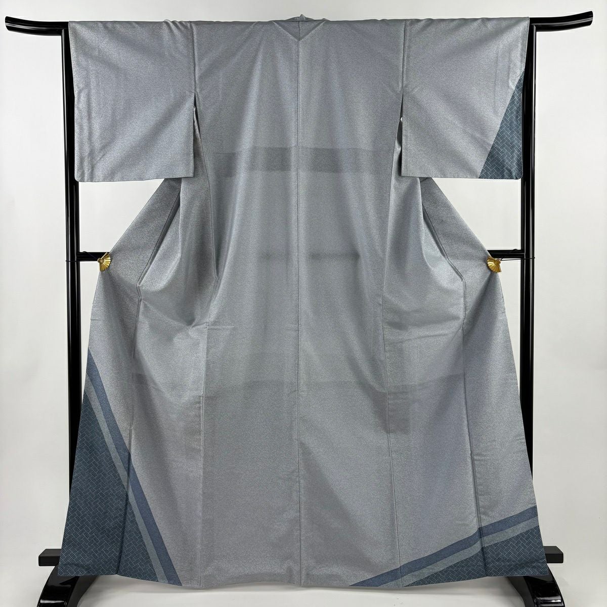 【最終値引き】 83%OFF 小紋 身丈154.5cm 裄丈65cm M 薄物 夏紬地 幾何学 灰色 正絹 秀品 K70