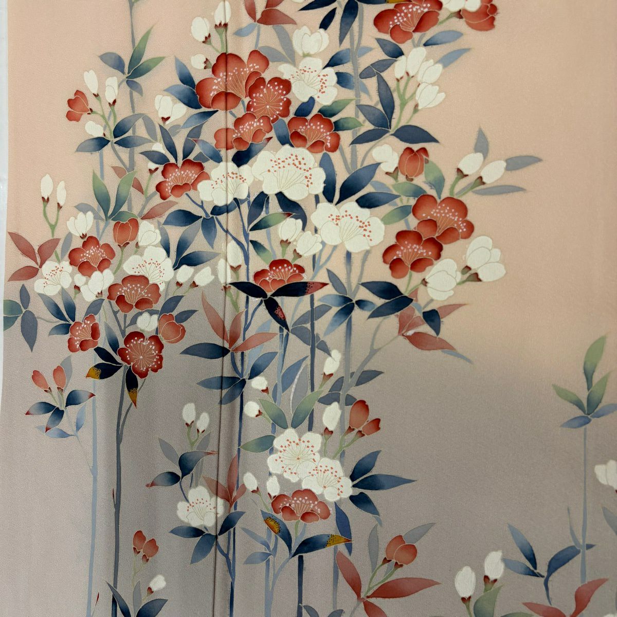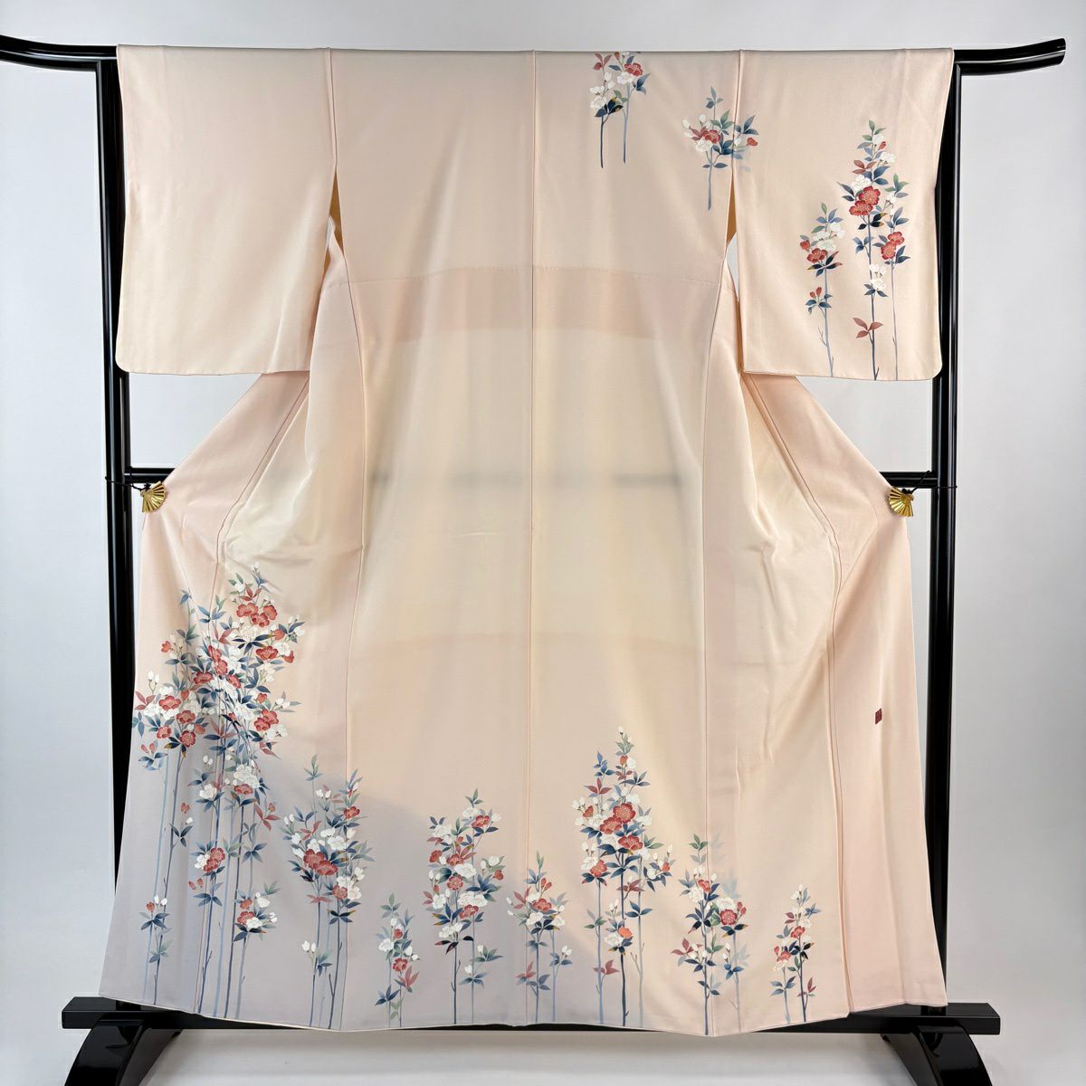 付下げ 身丈153cm 裄丈62cm S 袷 和田光正 落款あり 枝花 雪輪 金彩 ぼかし サーモンピンク 正絹 秀品