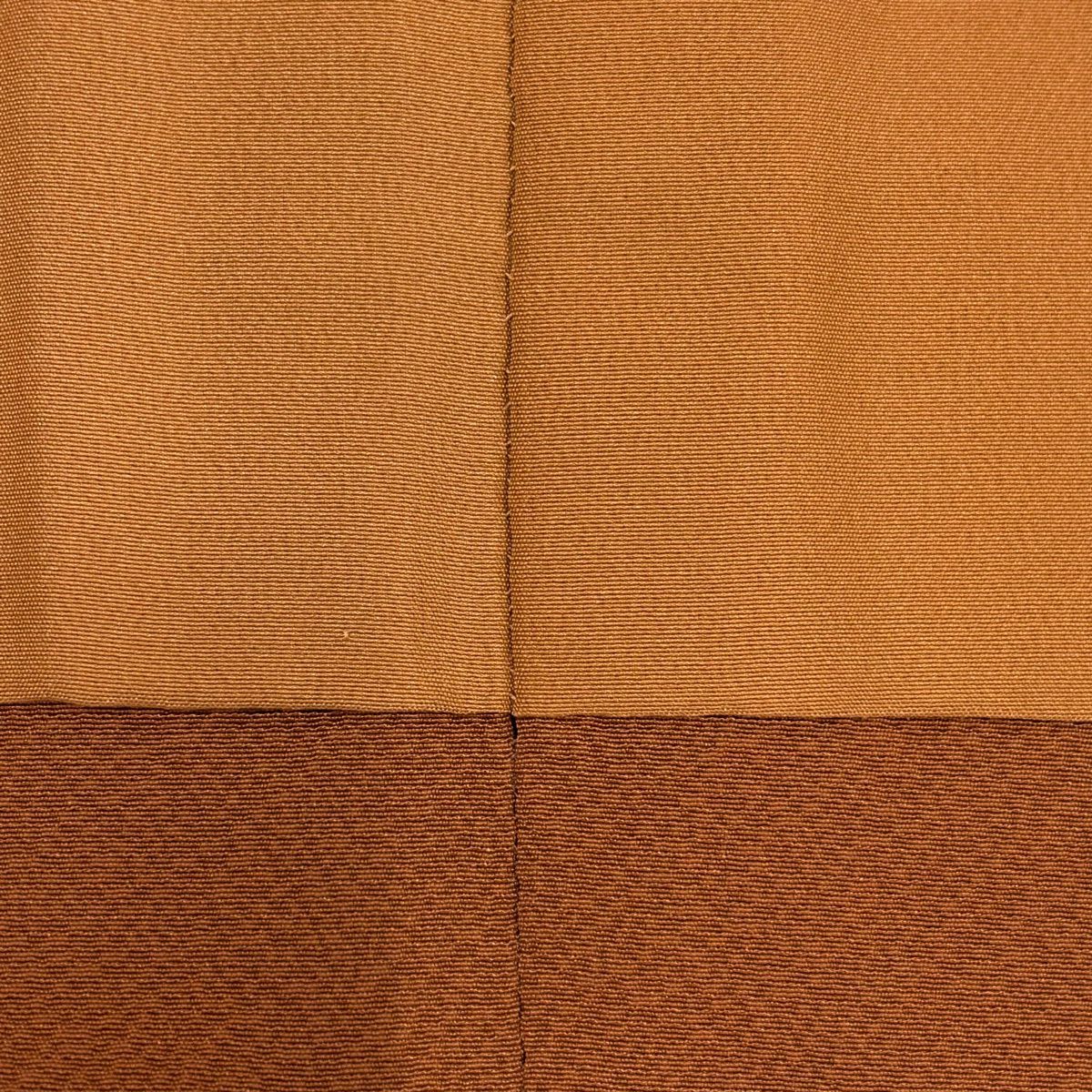【美品】 小紋 身丈156.5cm 裄丈62.5cm S 袷 斉藤三才 落款あり 幾何学模様 ぼかし オレンジ 正絹 秀品