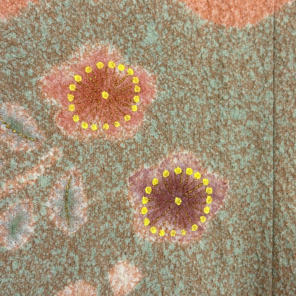 【在庫一掃】 【美品】 小紋 身丈158cm 裄丈65.5cm M 袷 草花 麻の葉 絞り サーモンピンク 正絹 秀品