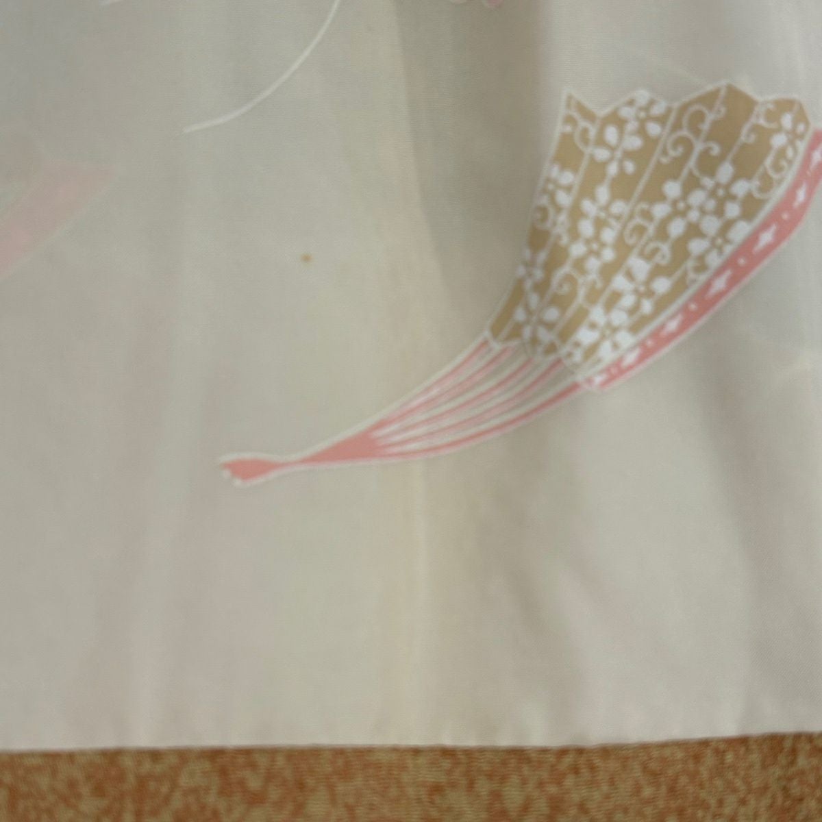 【在庫一掃】 訪問着 身丈168.5cm 裄丈66cm M 袷 扇面 枝垂れ桜 金糸 金彩 サーモンピンク 正絹 秀品