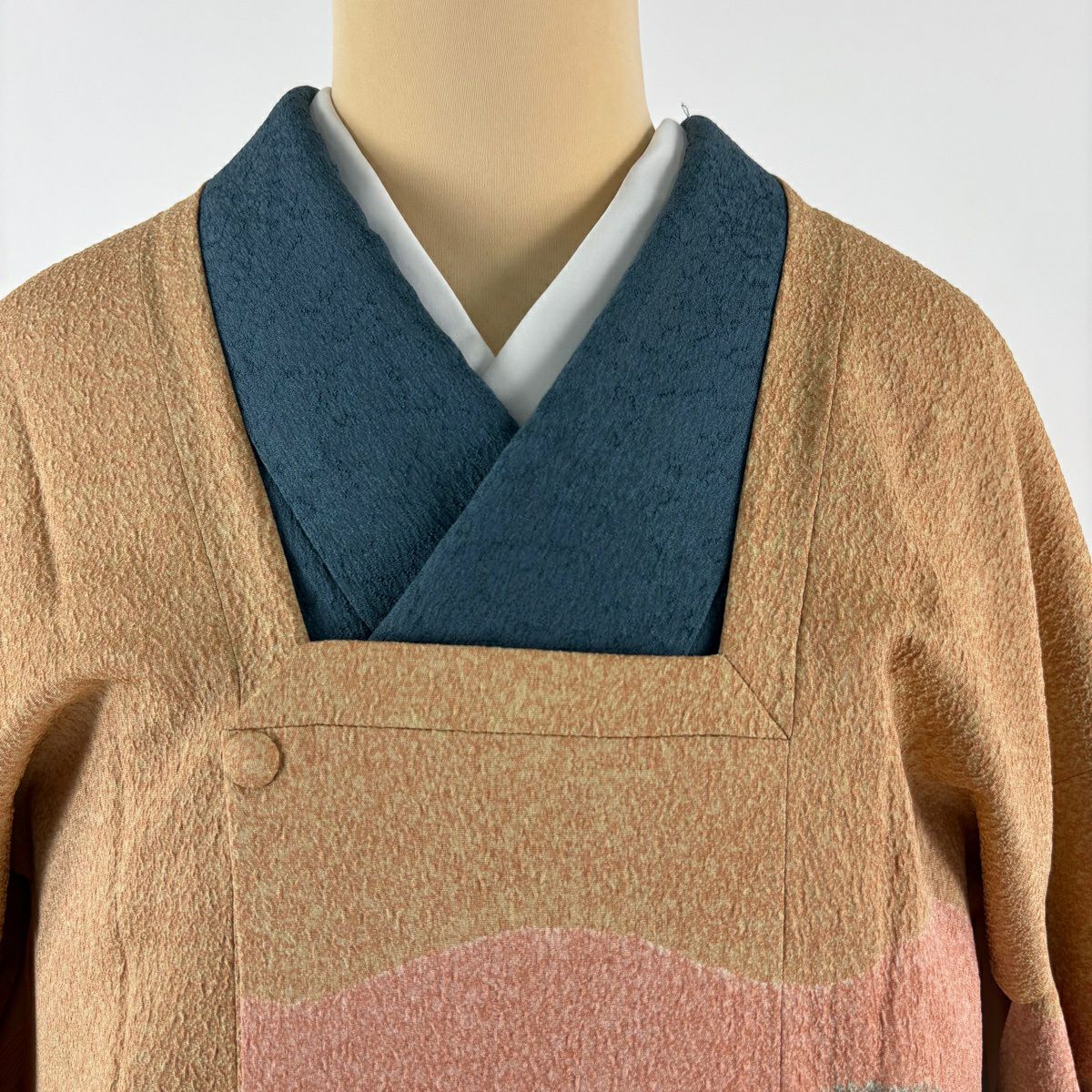 【在庫一掃】 訪問着 身丈154cm 裄丈62.5cm S 袷 落款あり 童 枝実 裾ぼかし 薄オレンジ 正絹 秀品
