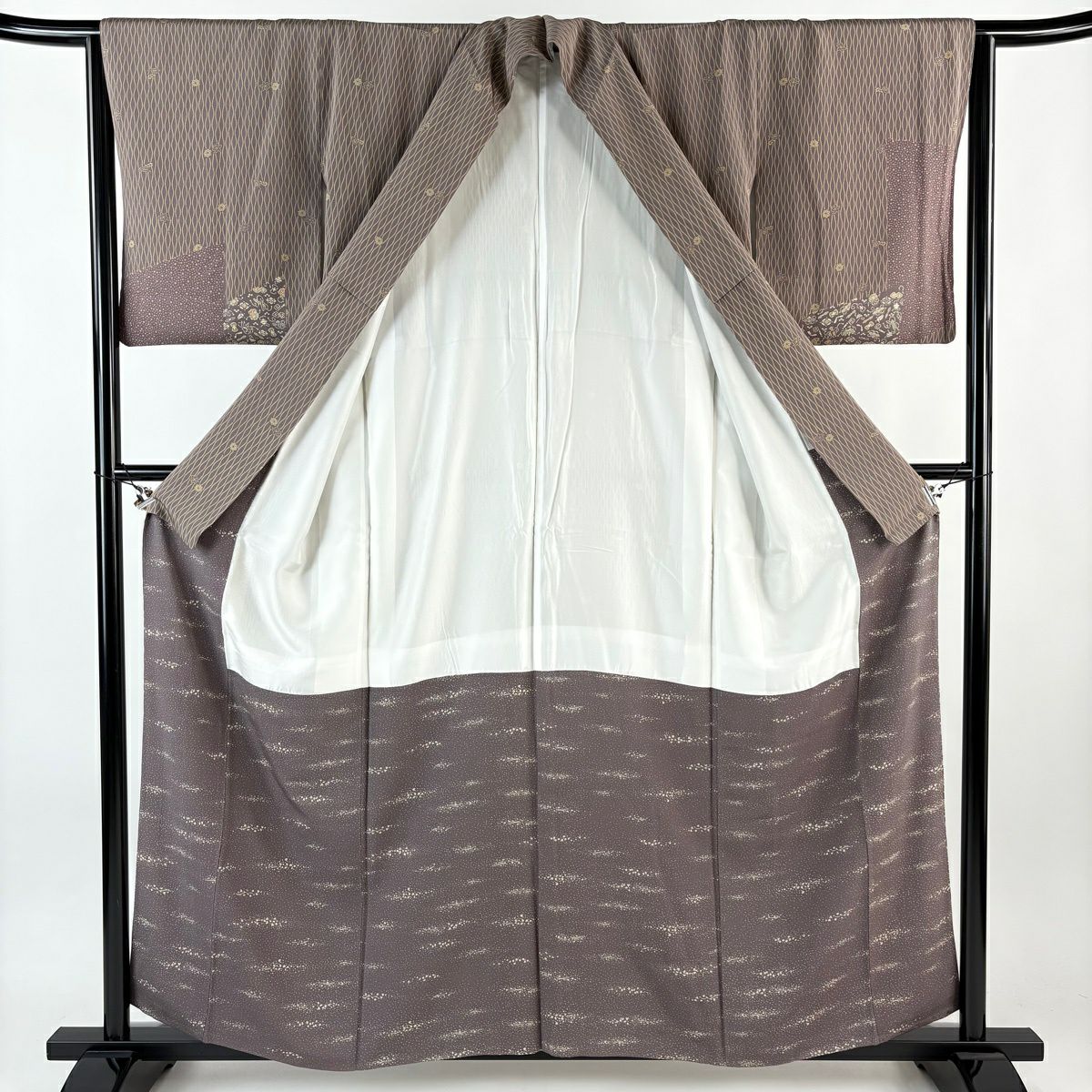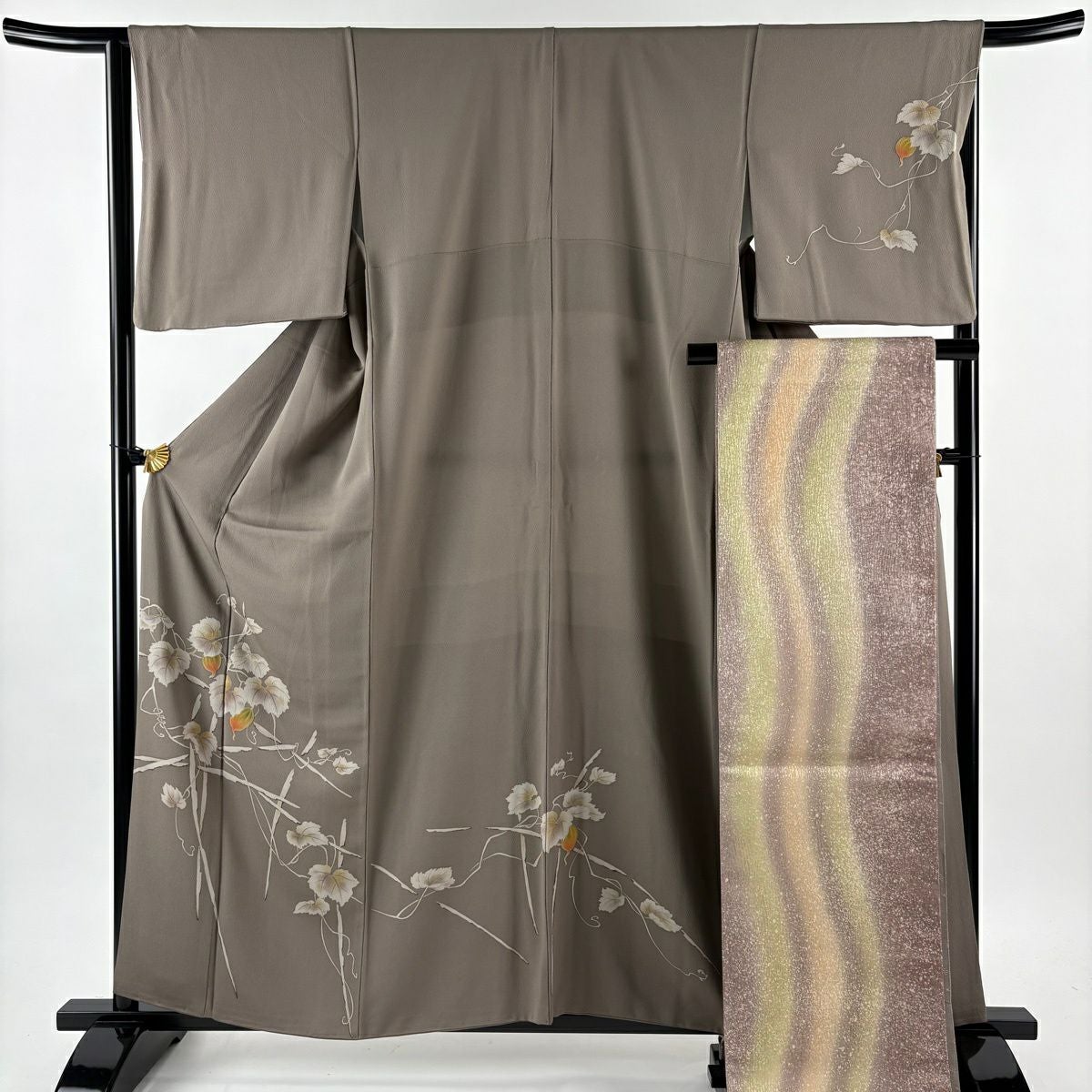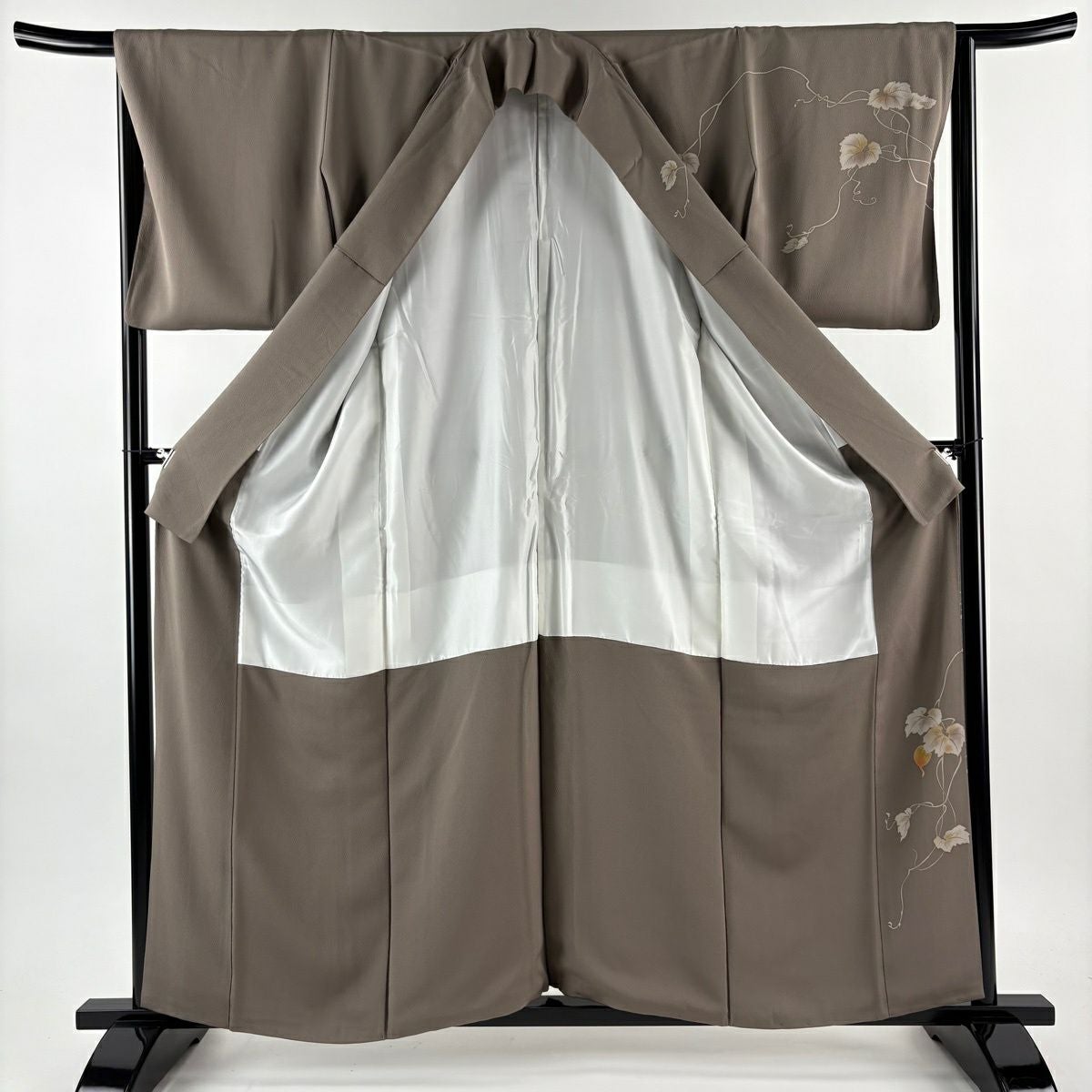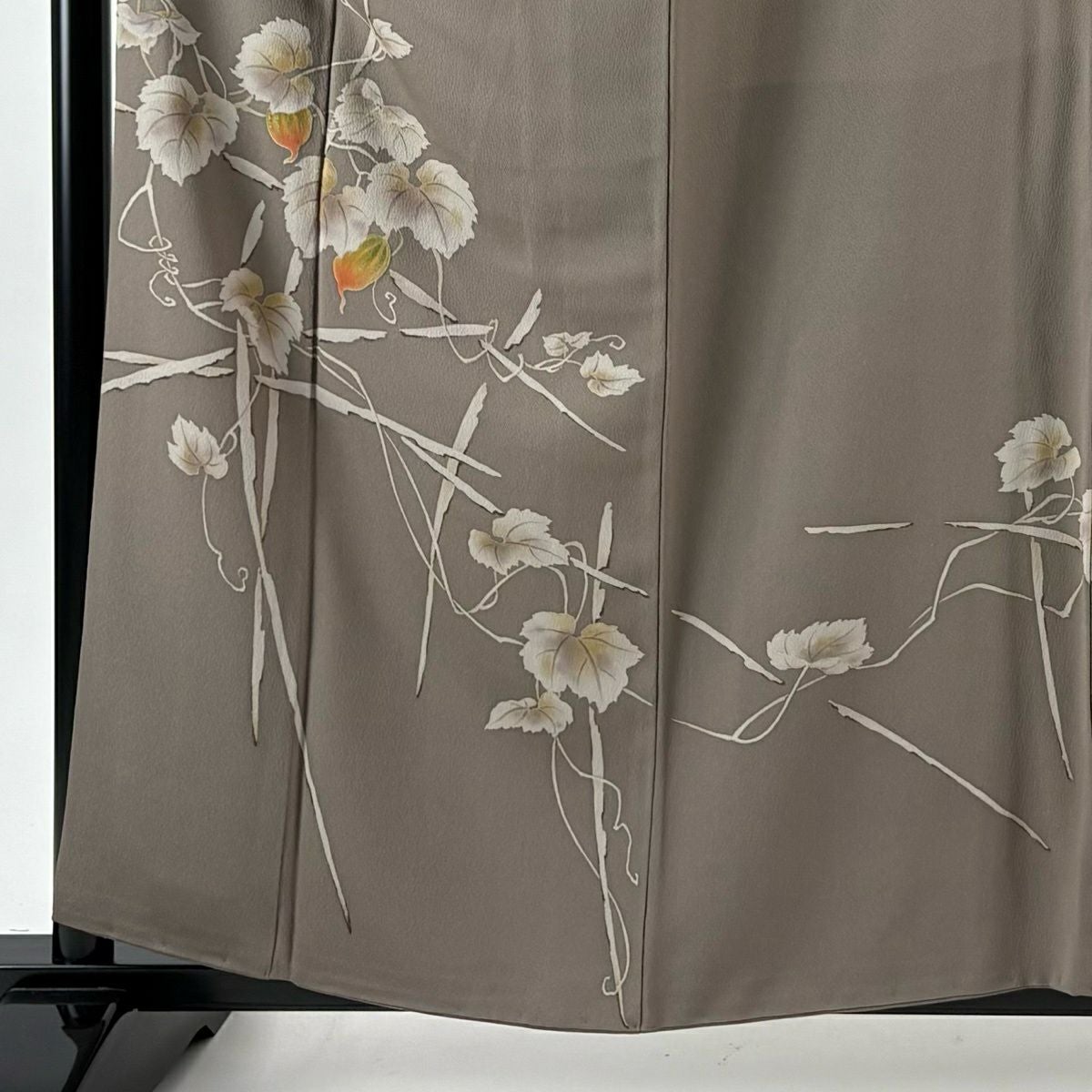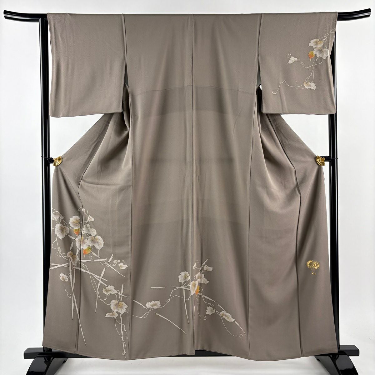 【在庫一掃】 訪問着 身丈160cm 裄丈63.5cm S 袷 紬地 落款あり 花唐草 金彩 ぼかし 灰茶 正絹 秀品