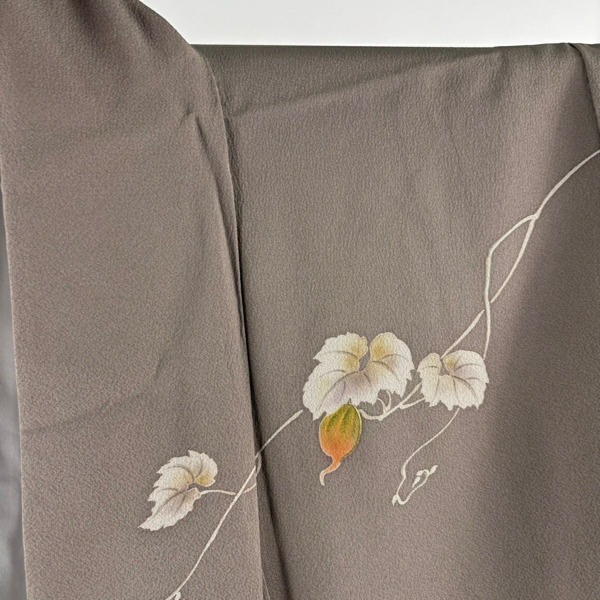 【最終値引き】 77%OFF 【美品】 紬 身丈159.5cm 裄丈63cm S 袷 草花 楓 灰茶 正絹 秀品 K70