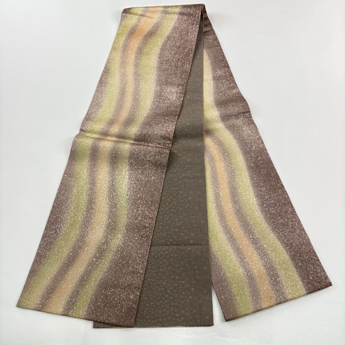 【最終値引き】 77%OFF 【美品】 袋帯 秀品 ハーブ染 花唐草 波 箔 金糸 ベージュ 六通 正絹 K70